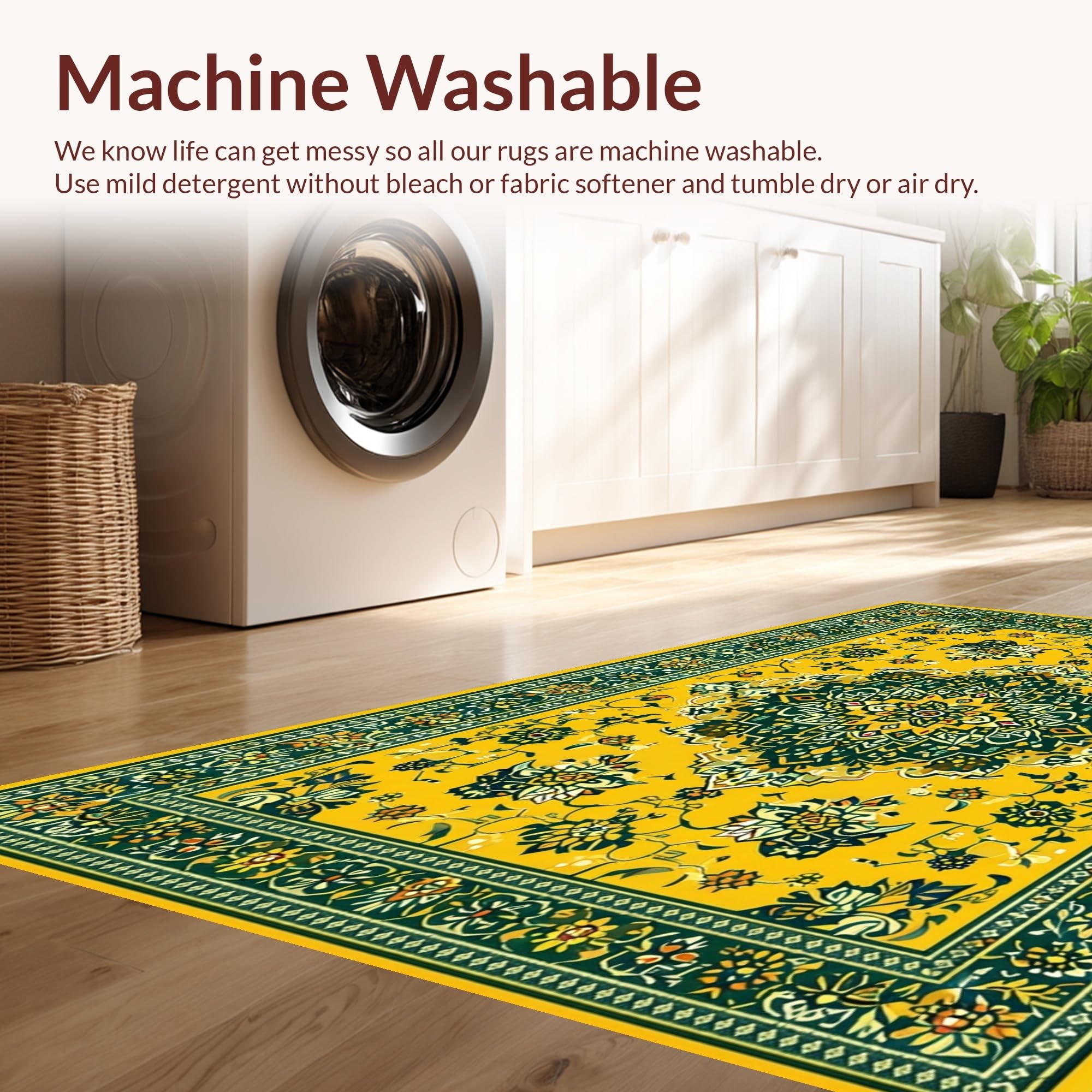 - Machine Washable: Our rugs can be easily thrown in the wash machine.