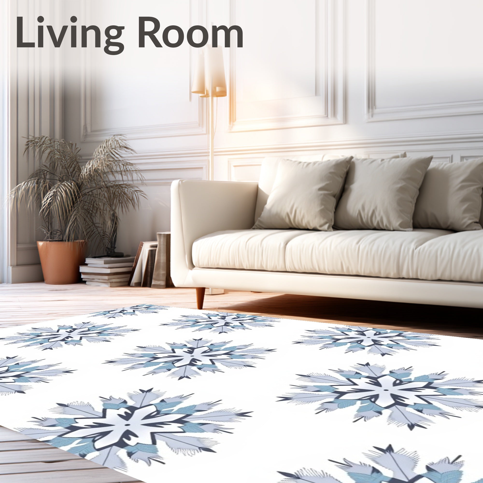 Ultra Soft Area Rug, Non Slip, Stain Resistant, Washable Area Rugs for Living Room, Bedroom, Whimsical Flurry Medallion Featuring Stylized Crystal(Blue) Overview: