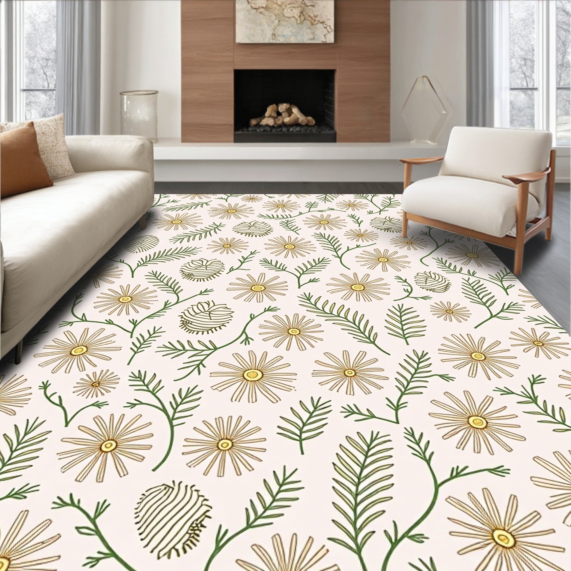 Flatwoven High Traffic Area Rug, Whimsical Forest Pinecone with Boho Starburst Details, Non Slip, Stain Resistant, Washable Area Rugs for Living Room, Bedroom (Beige) Overview: