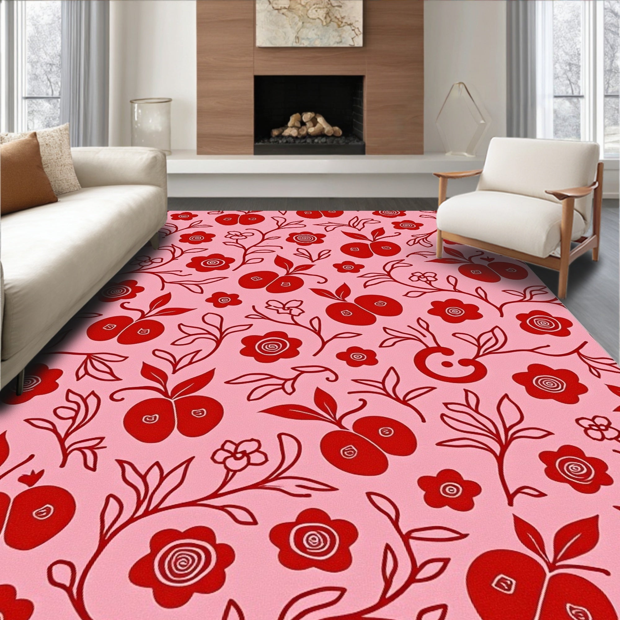 Flatwoven High Traffic Area Rug, Whimsical Fruit Branch Blossom Enchanted Garden Nostalgic, Non Slip, Stain Resistant, Washable Area Rugs for Living Room, Bedroom (Pink) Overview: