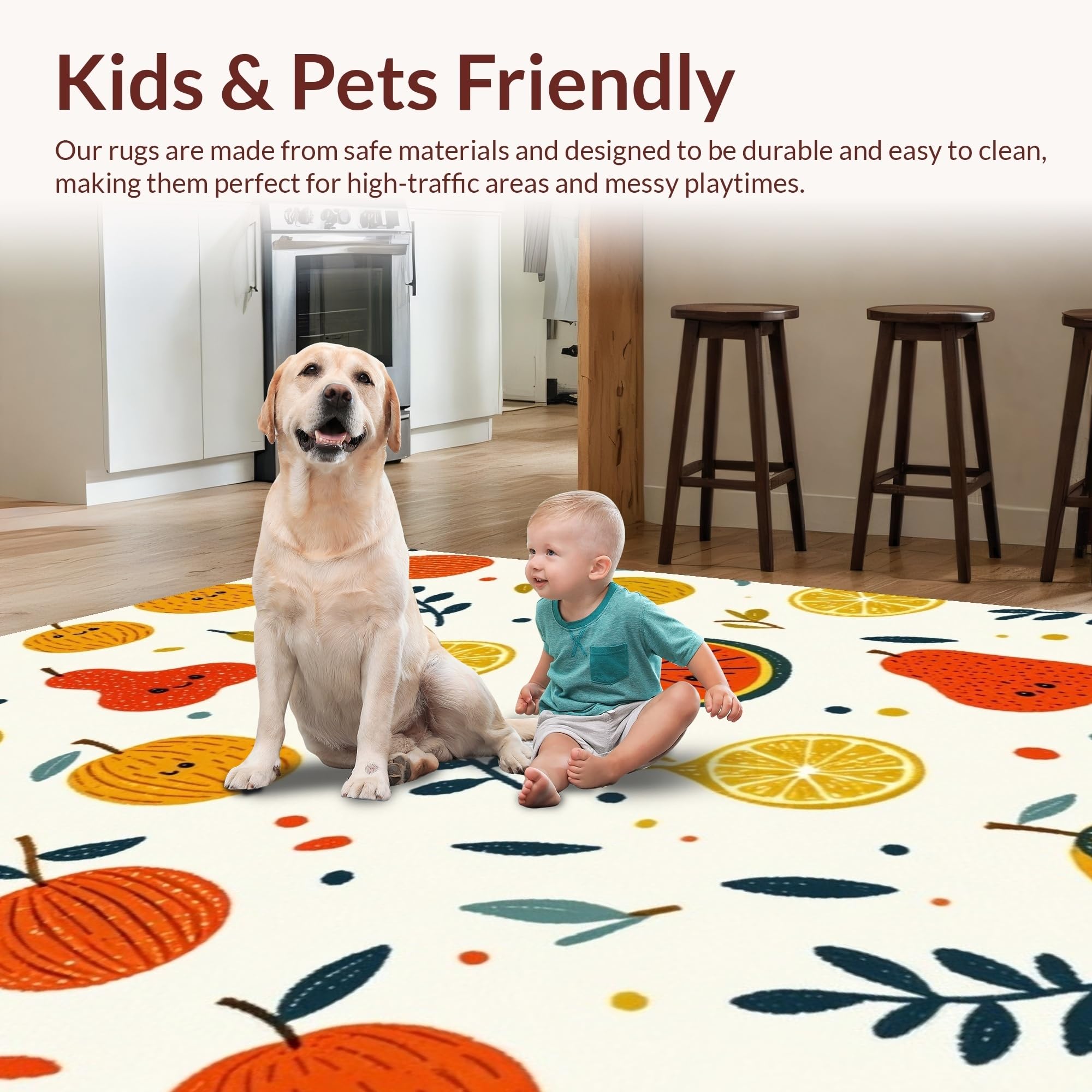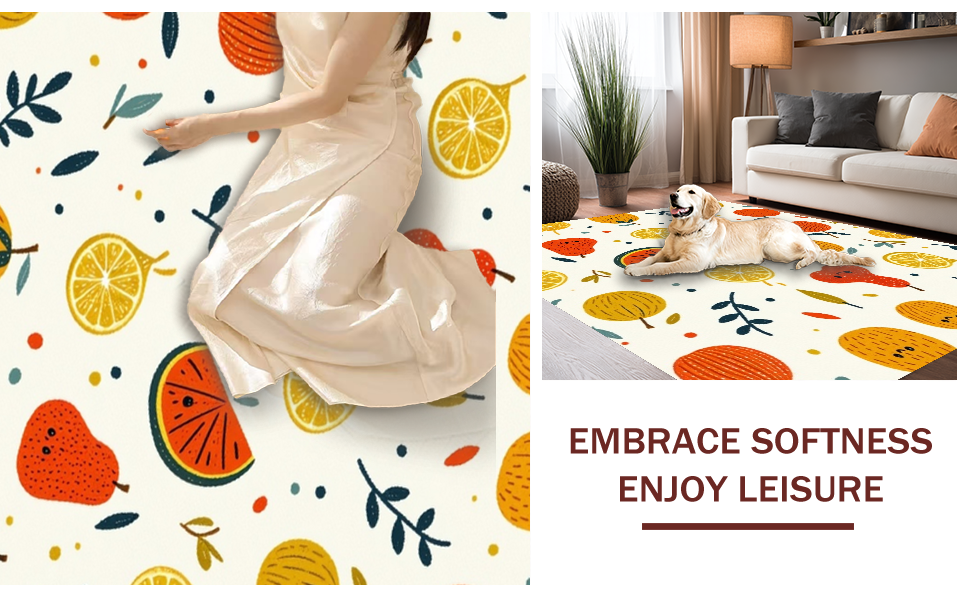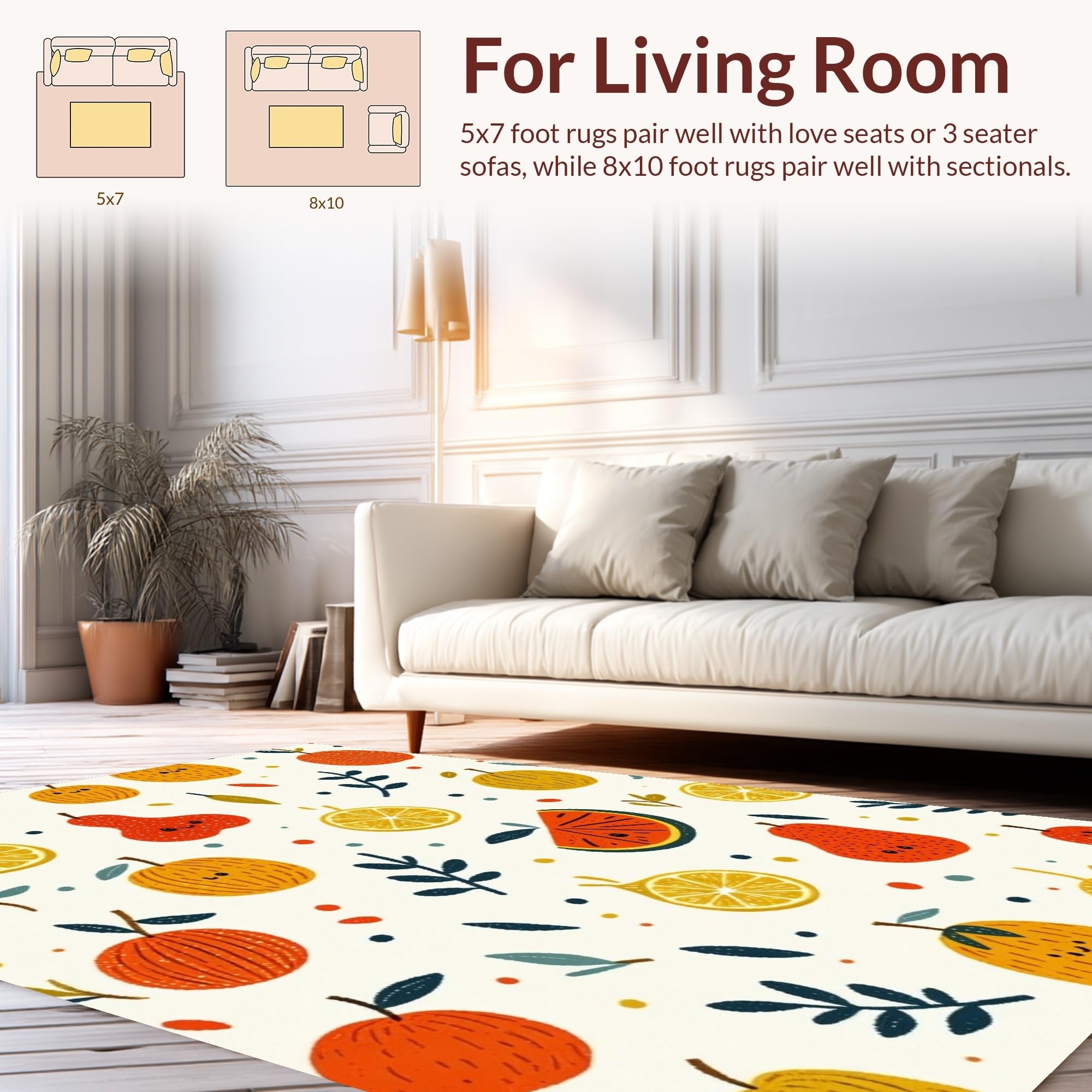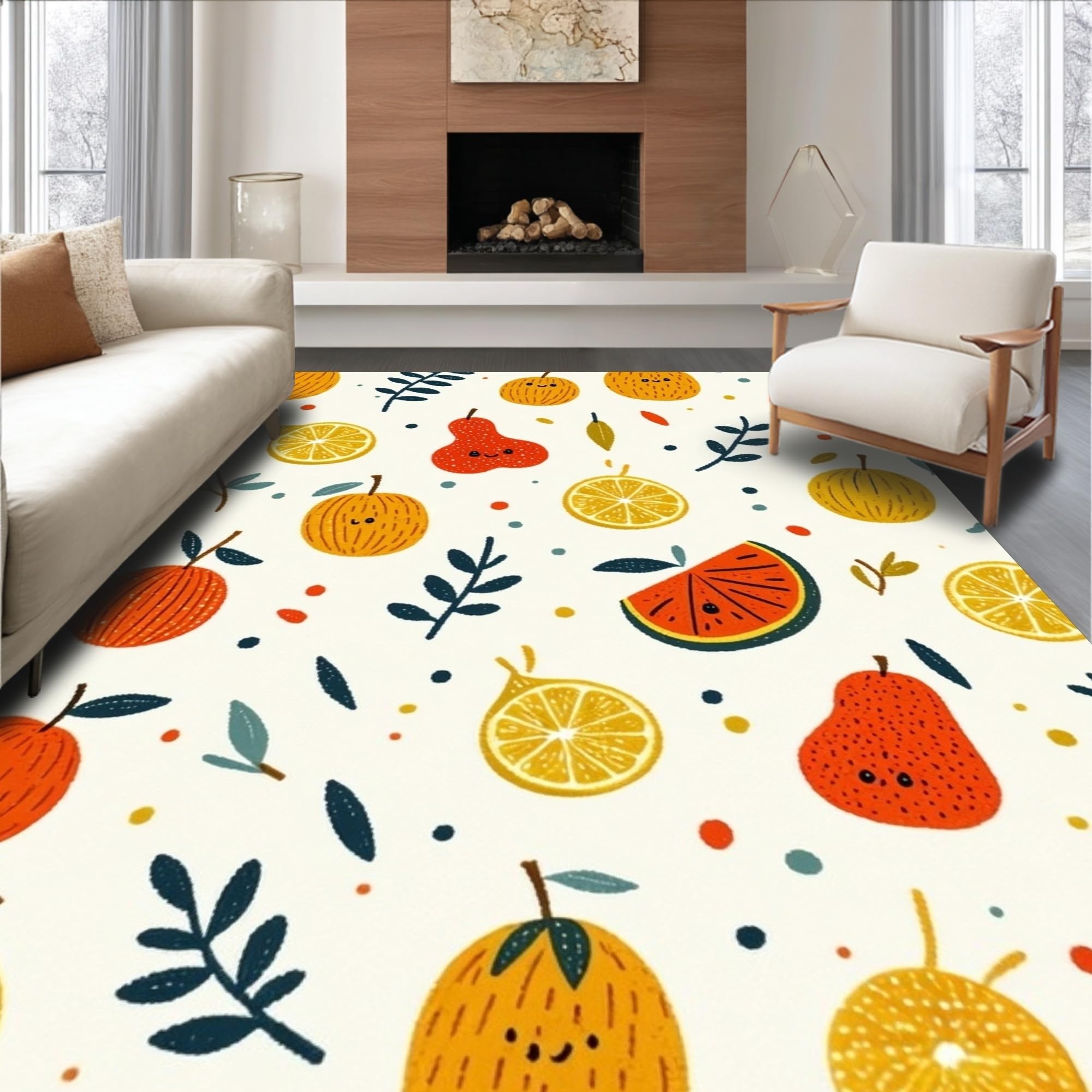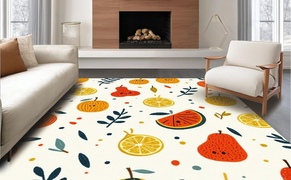 Ultra Soft Area Rug, Non Slip, Stain Resistant, Washable Area Rugs for Living Room, Bedroom, Whimsical Fruit Character Aesthetic(Yellow) Overview: