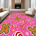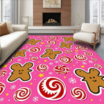 Ultra Soft Area Rug, Non Slip, Stain Resistant, Washable Area Rugs for Living Room, Bedroom, Whimsical Gingerbread Wonderland with Peppermint Swirls and Motifs(Pink) Overview: