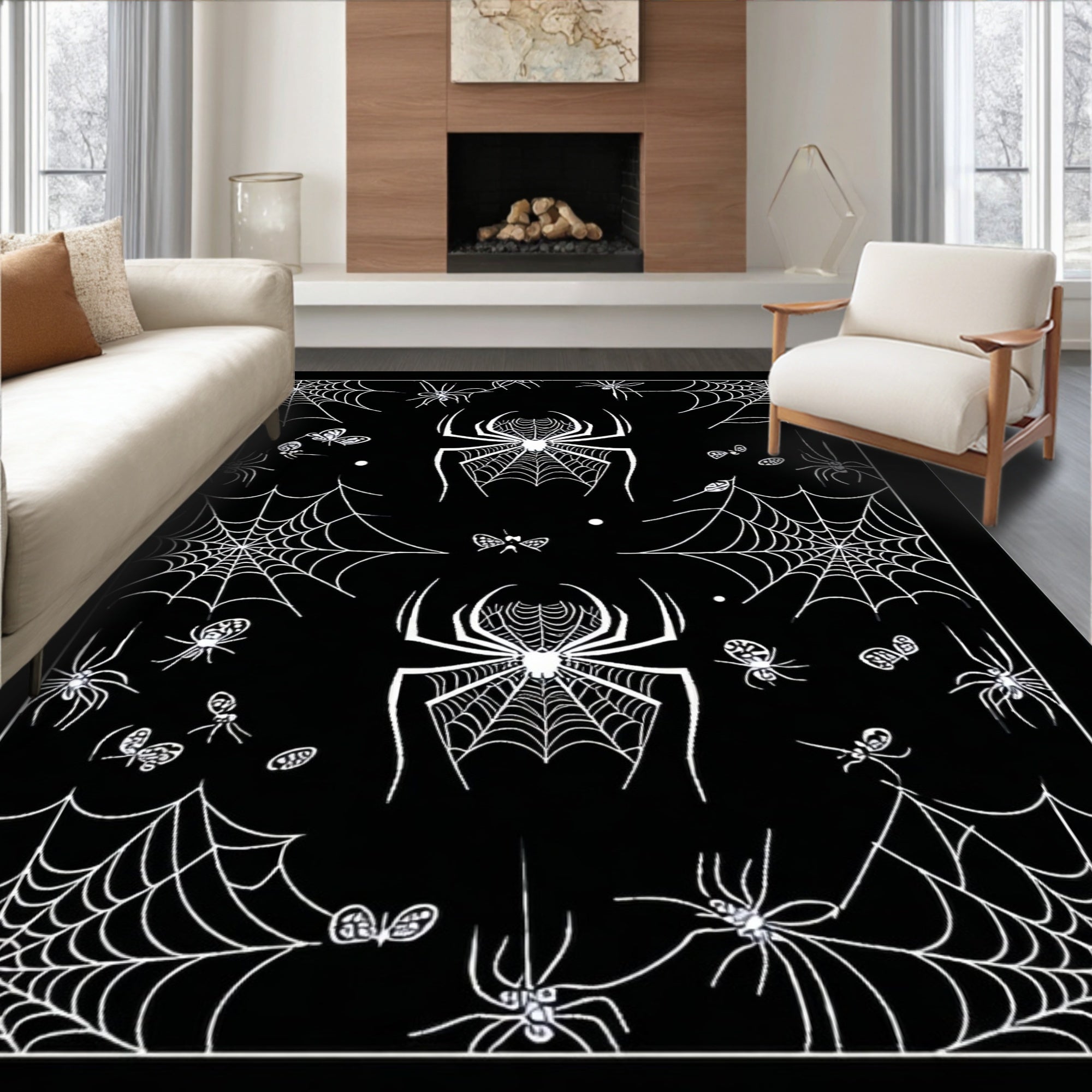 Flatwoven High Traffic Area Rug, Whimsical Gothic Lace, Non Slip, Stain Resistant, Washable Area Rugs for Living Room, Bedroom (White) Overview: