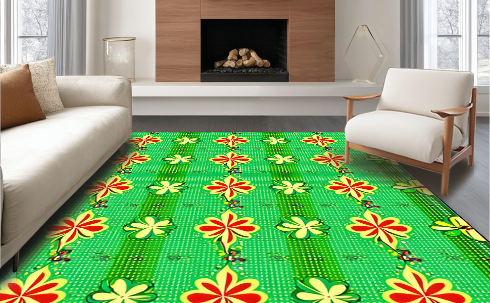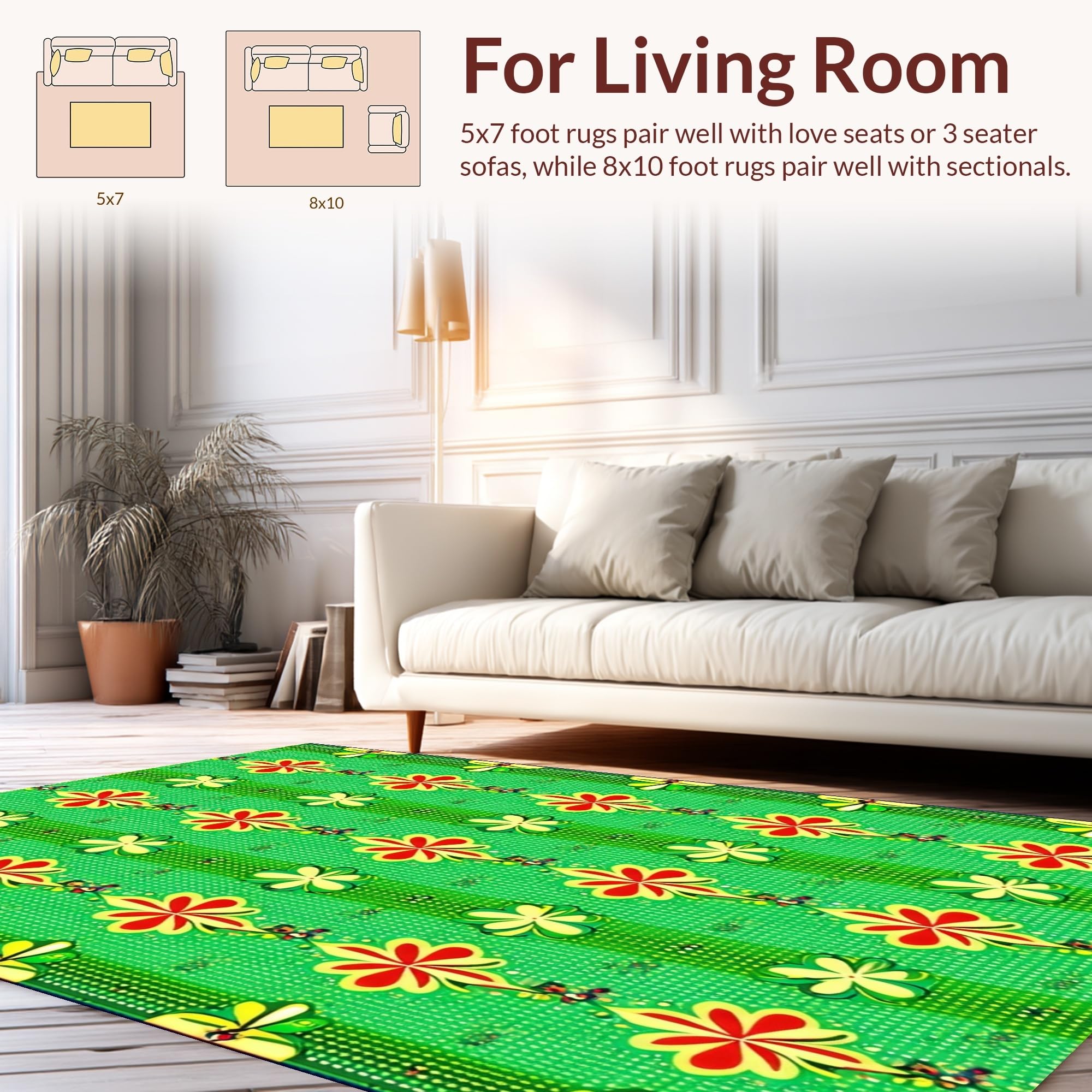 Ultra Soft Area Rug, Non Slip, Stain Resistant, Washable Area Rugs for Living Room, Bedroom, Whimsical Green Botanical Charm(Green) Overview: