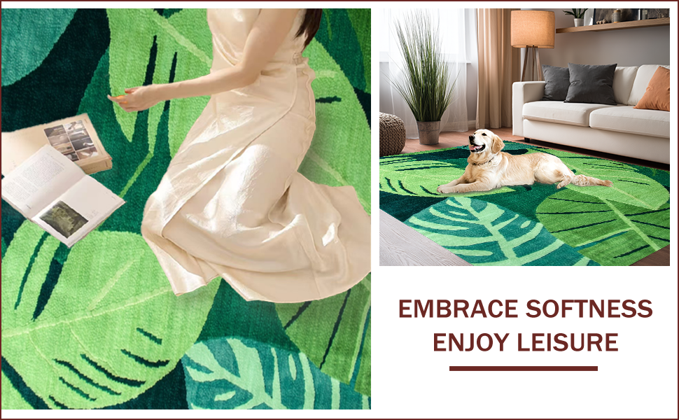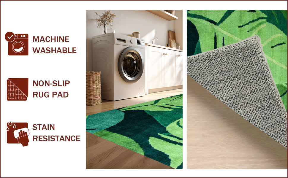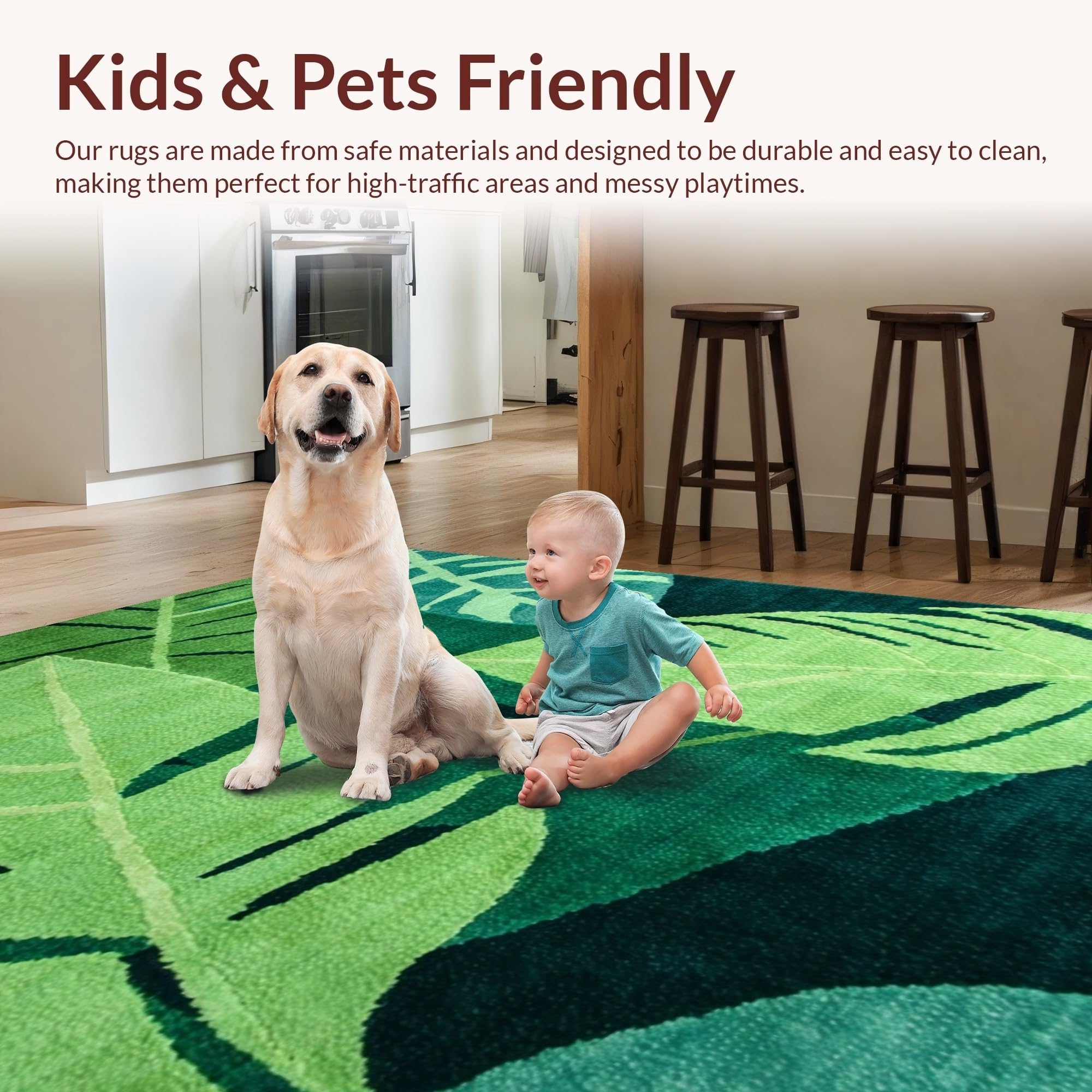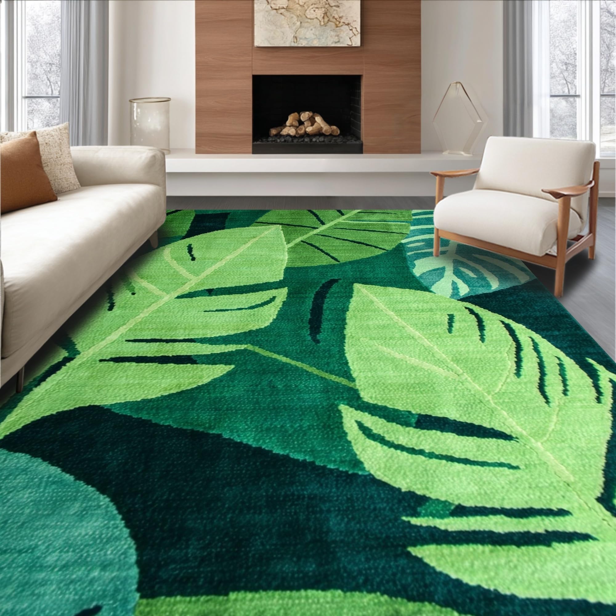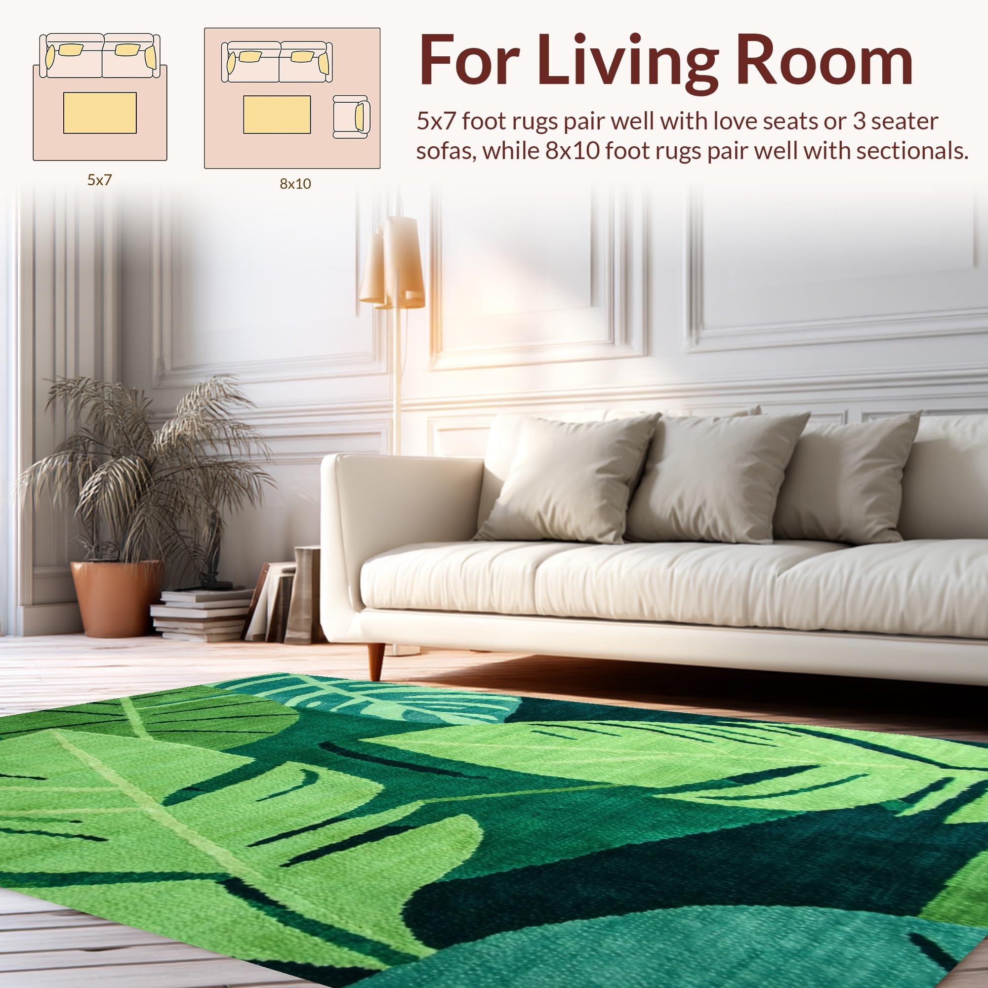 Ultra Soft Area Rug, Non Slip, Stain Resistant, Washable Area Rugs for Living Room, Bedroom, Whimsical Green Plant Aesthetic(Green) Overview: