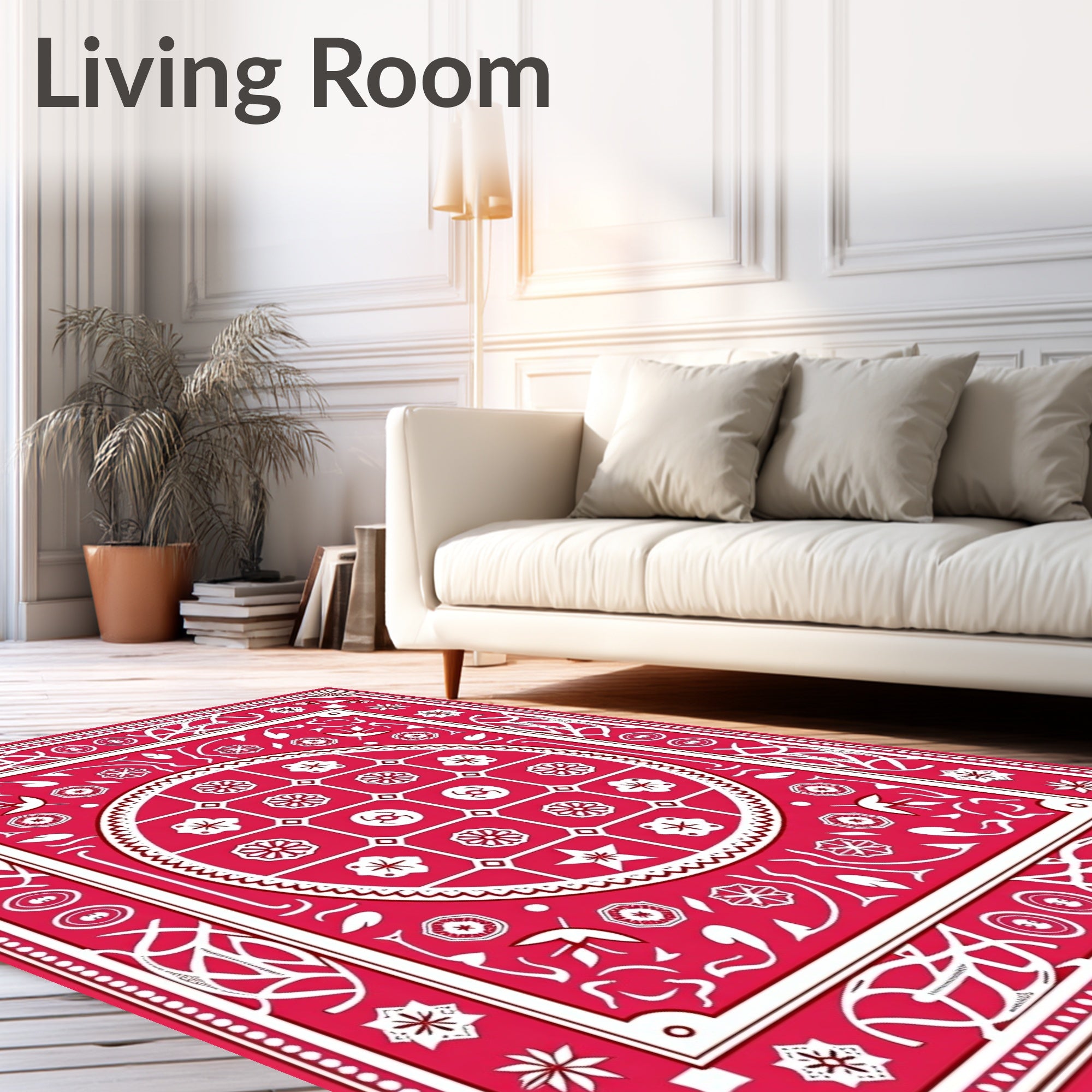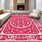 Ultra Soft Area Rug, Non Slip, Stain Resistant, Washable Area Rugs for Living Room, Bedroom, Whimsical Joyful Celebration Medallion Heritage Treasure Collection(Red) Overview: