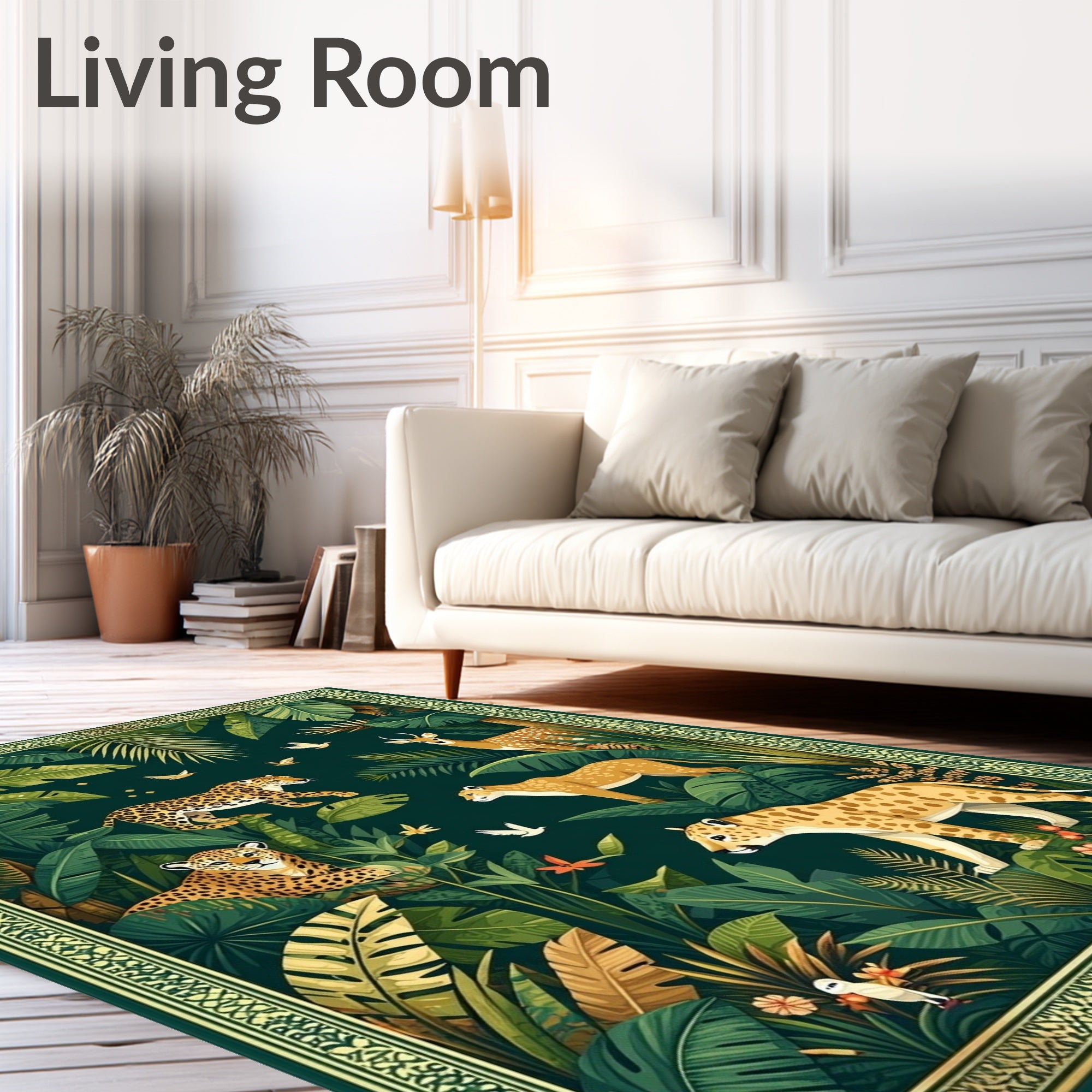 Flatwoven High Traffic Area Rug, Whimsical Jungle Safari for Boys, Non Slip, Stain Resistant, Washable Area Rugs for Living Room, Bedroom (Green) Overview: