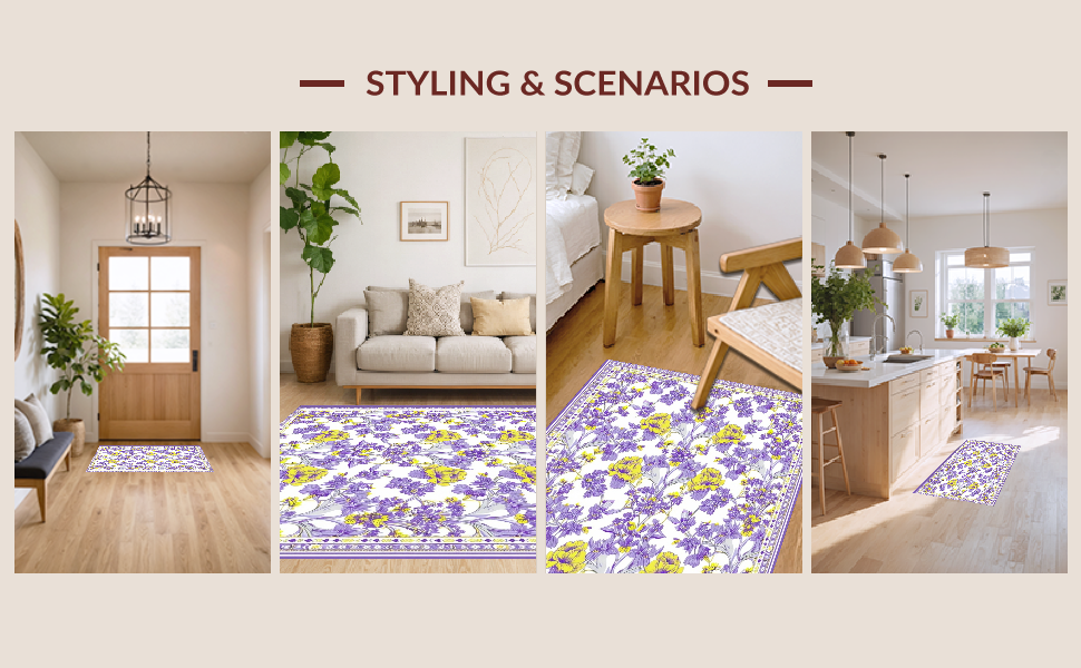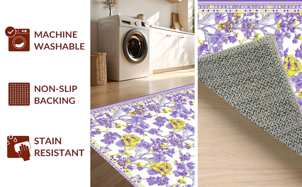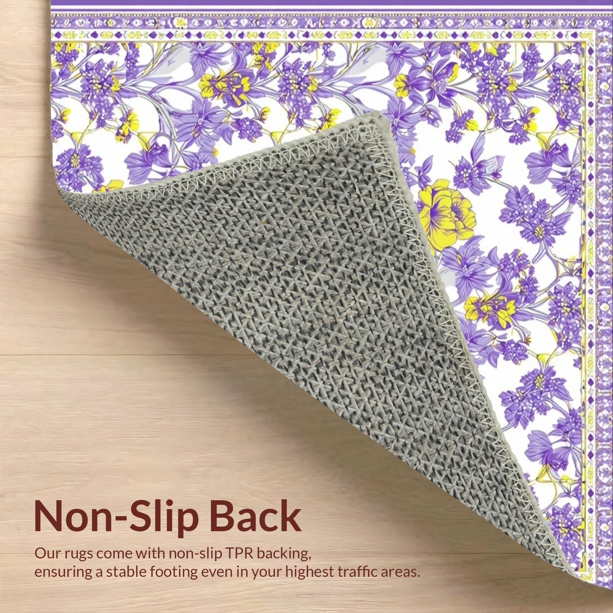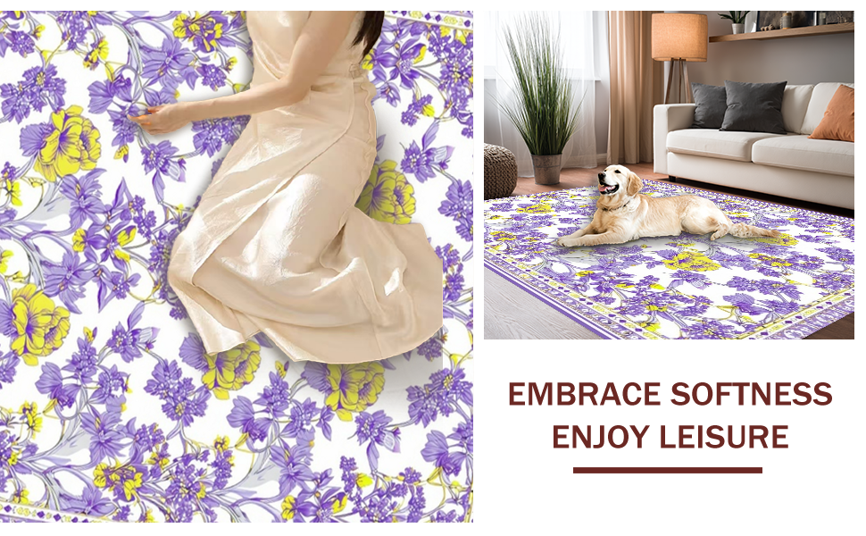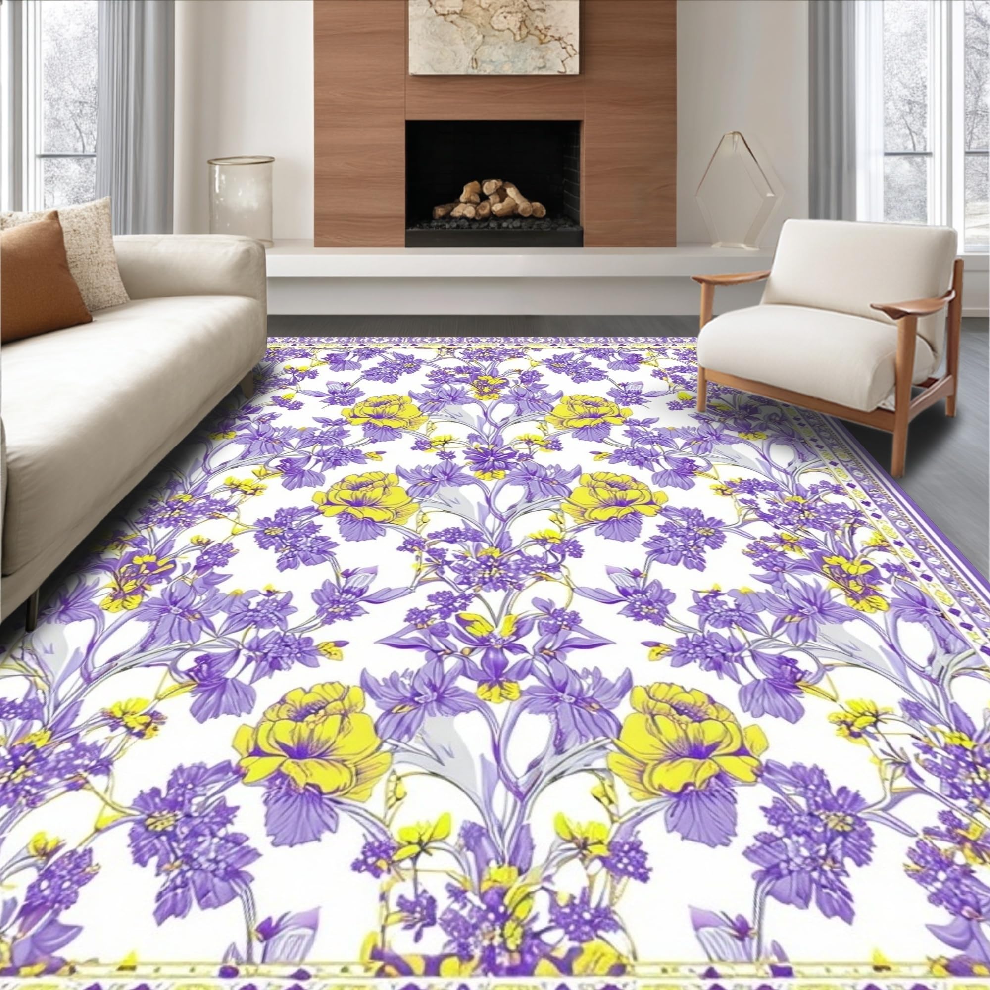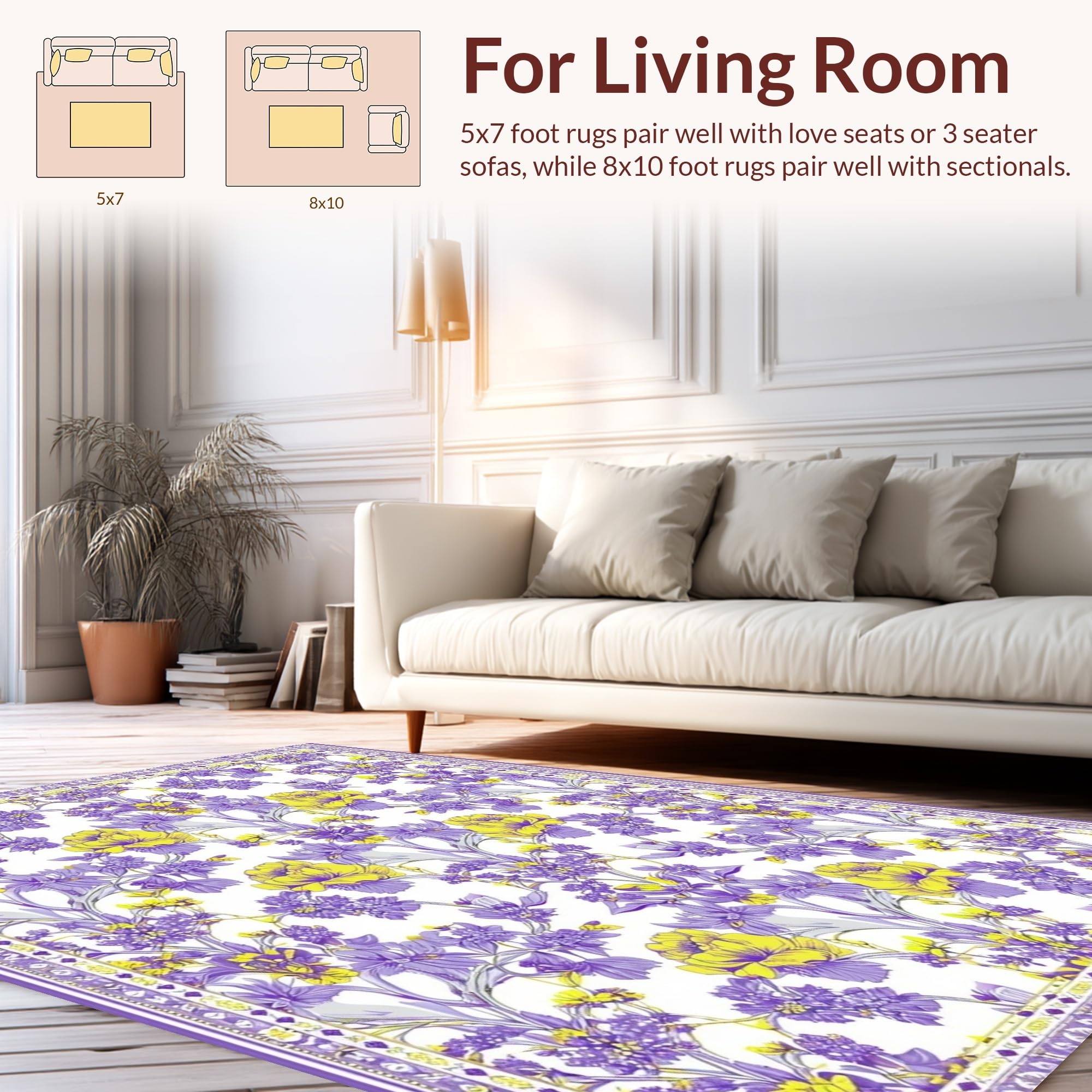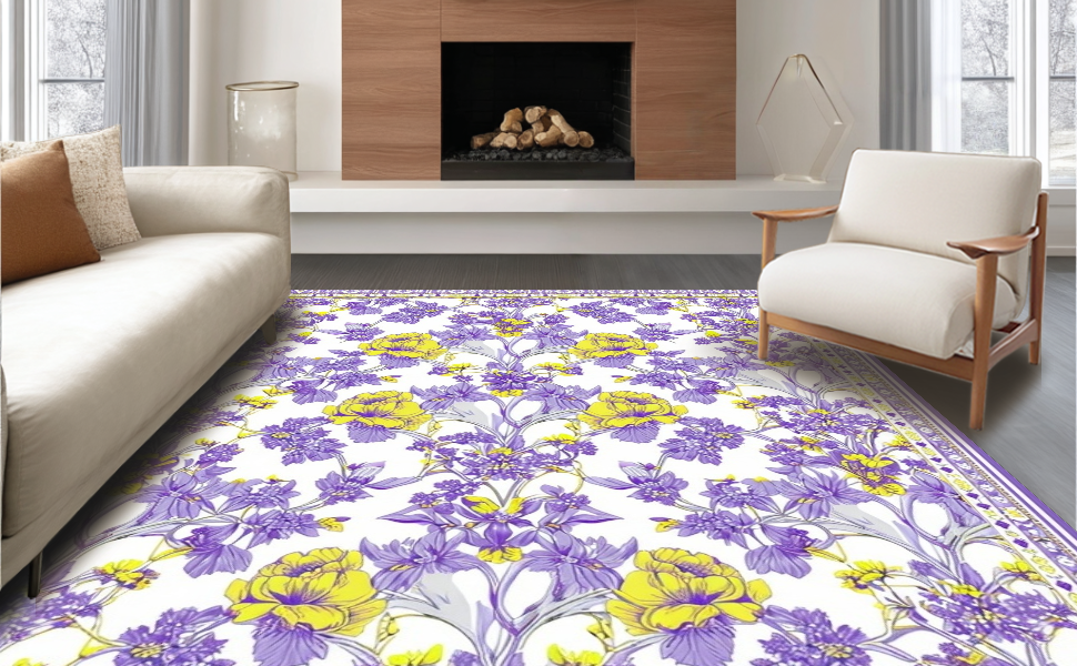 Ultra Soft Area Rug, Non Slip, Stain Resistant, Washable Area Rugs for Living Room, Bedroom, Whimsical Lavender Blooming Style(Purple) Overview: