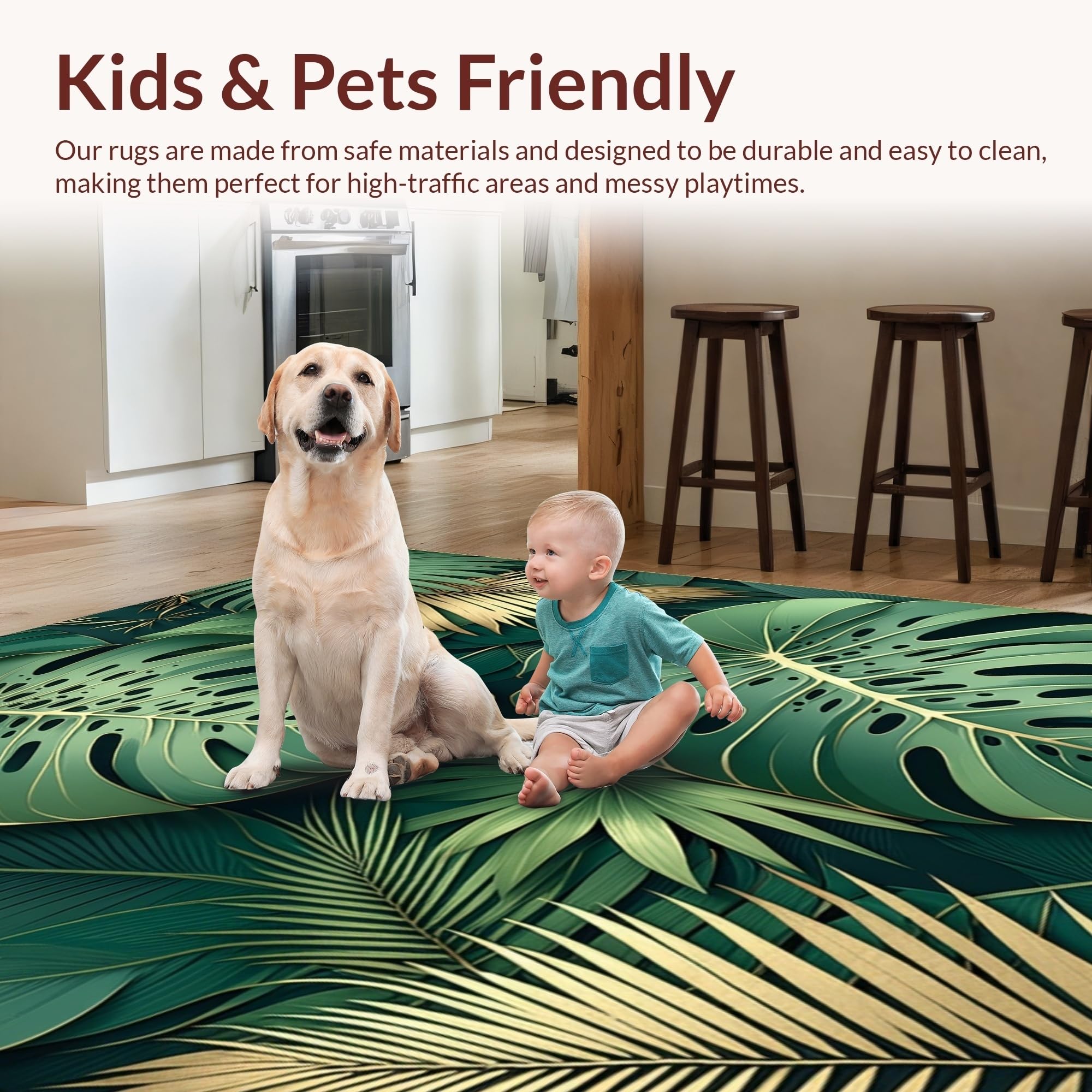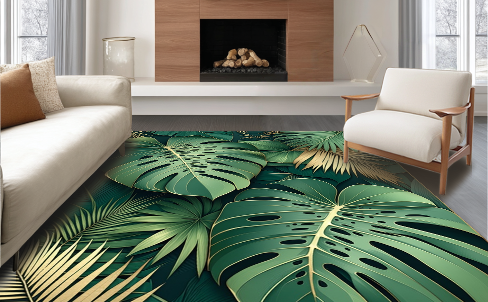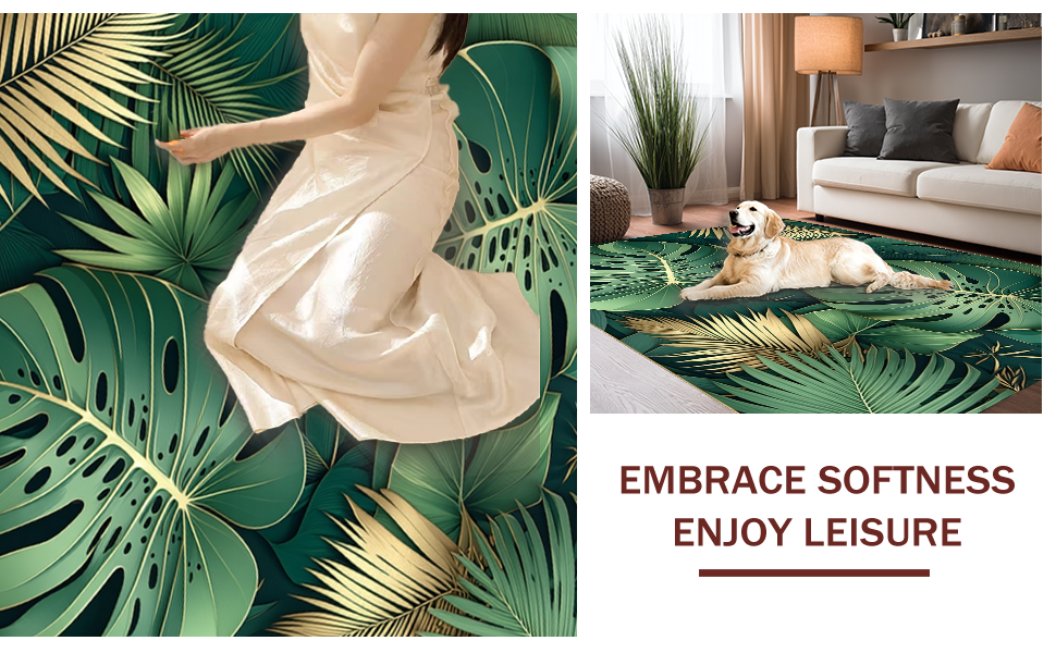 Ultra Soft Area Rug, Non Slip, Stain Resistant, Washable Area Rugs for Living Room, Bedroom, Whimsical Leafy Elegance(Green) Overview: