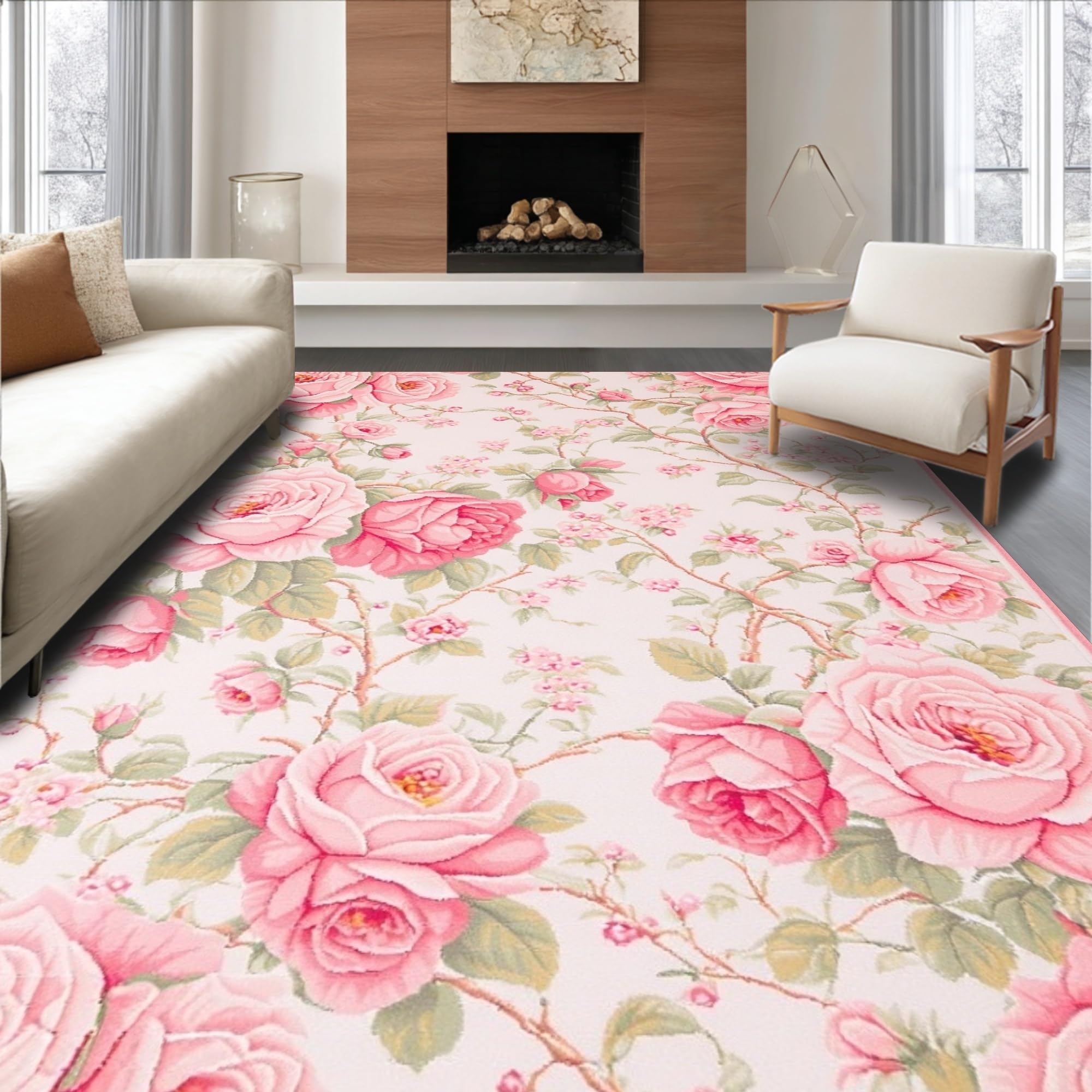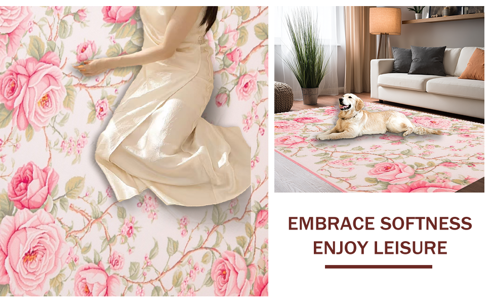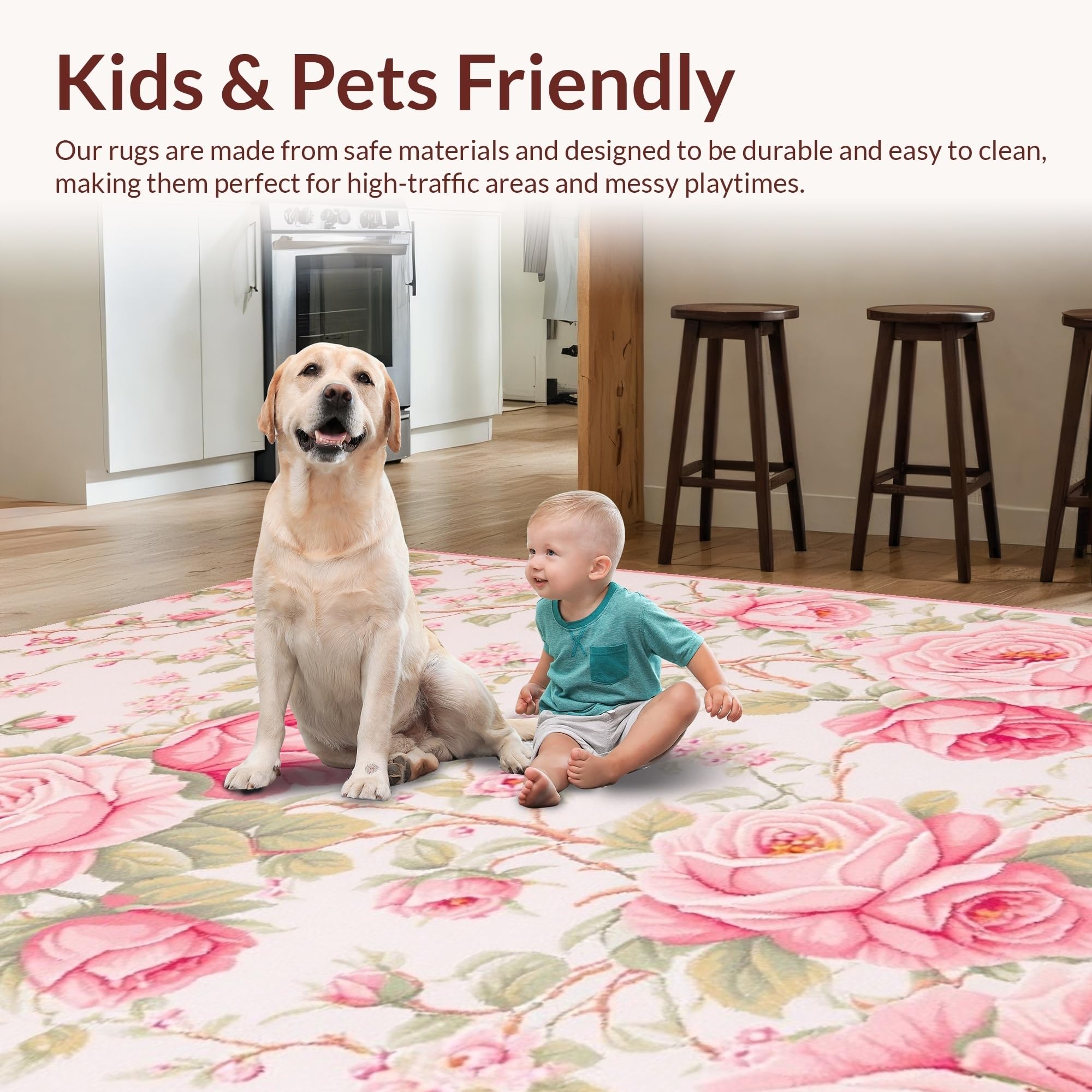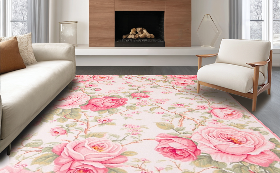 Ultra Soft Area Rug, Non Slip, Stain Resistant, Washable Area Rugs for Living Room, Bedroom, Whimsical Light Pink Floral Fantasy(Pink) Overview: