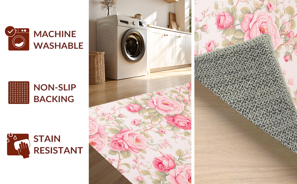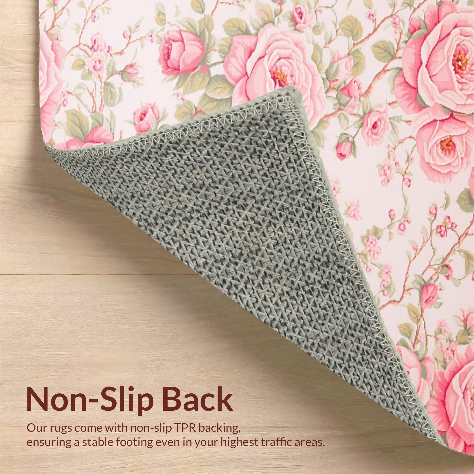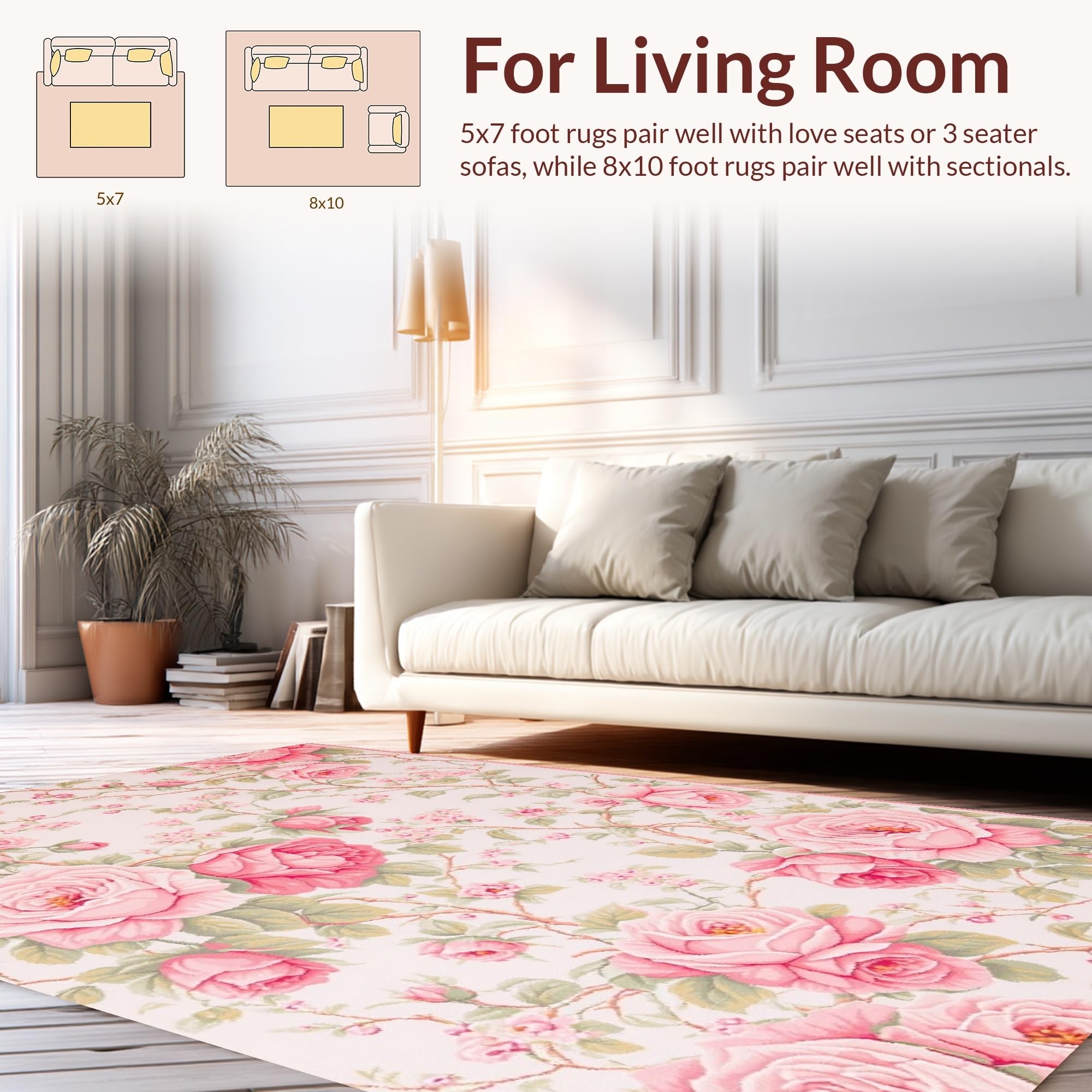 Ultra Soft Area Rug, Non Slip, Stain Resistant, Washable Area Rugs for Living Room, Bedroom, Whimsical Light Pink Floral Fantasy(Pink) Overview:
