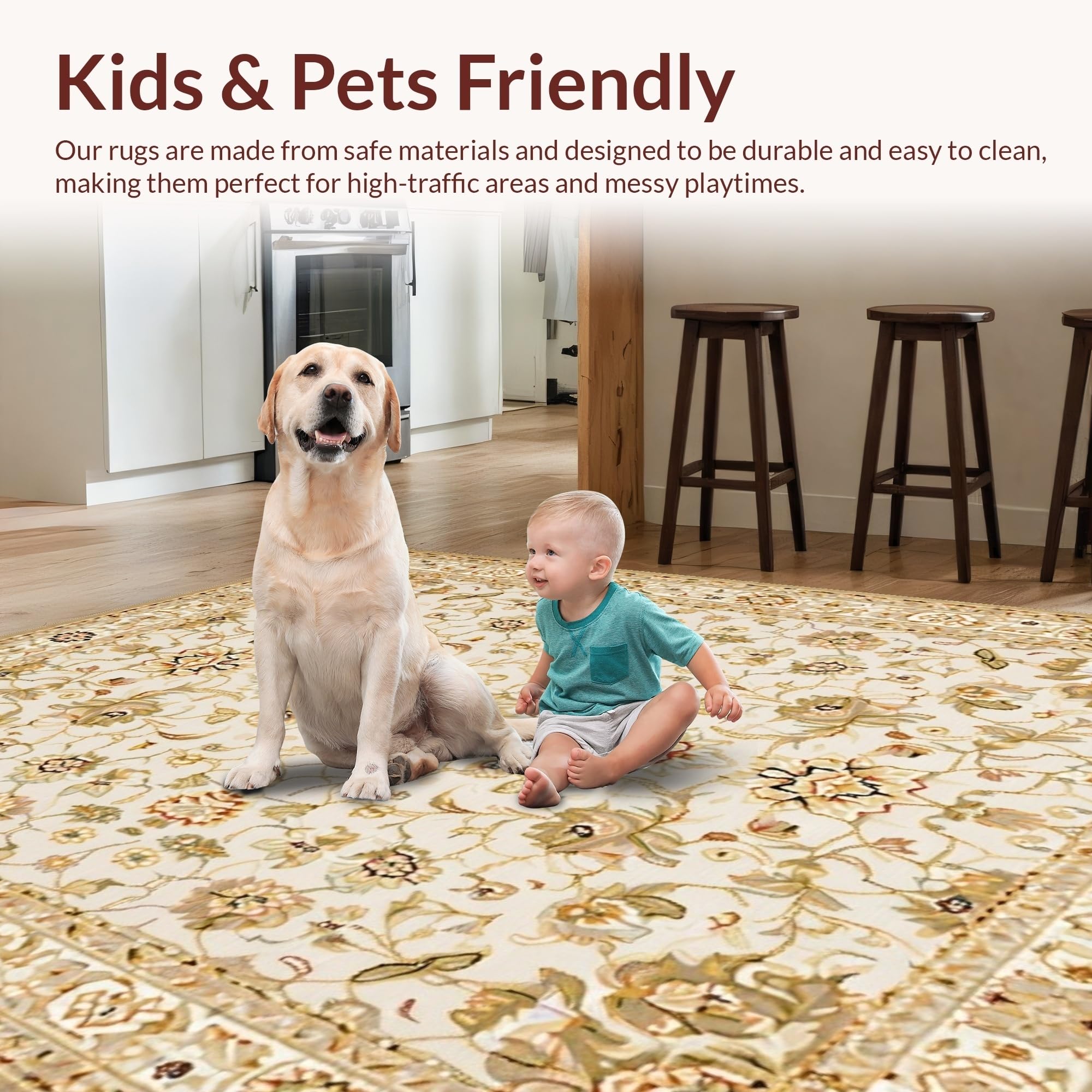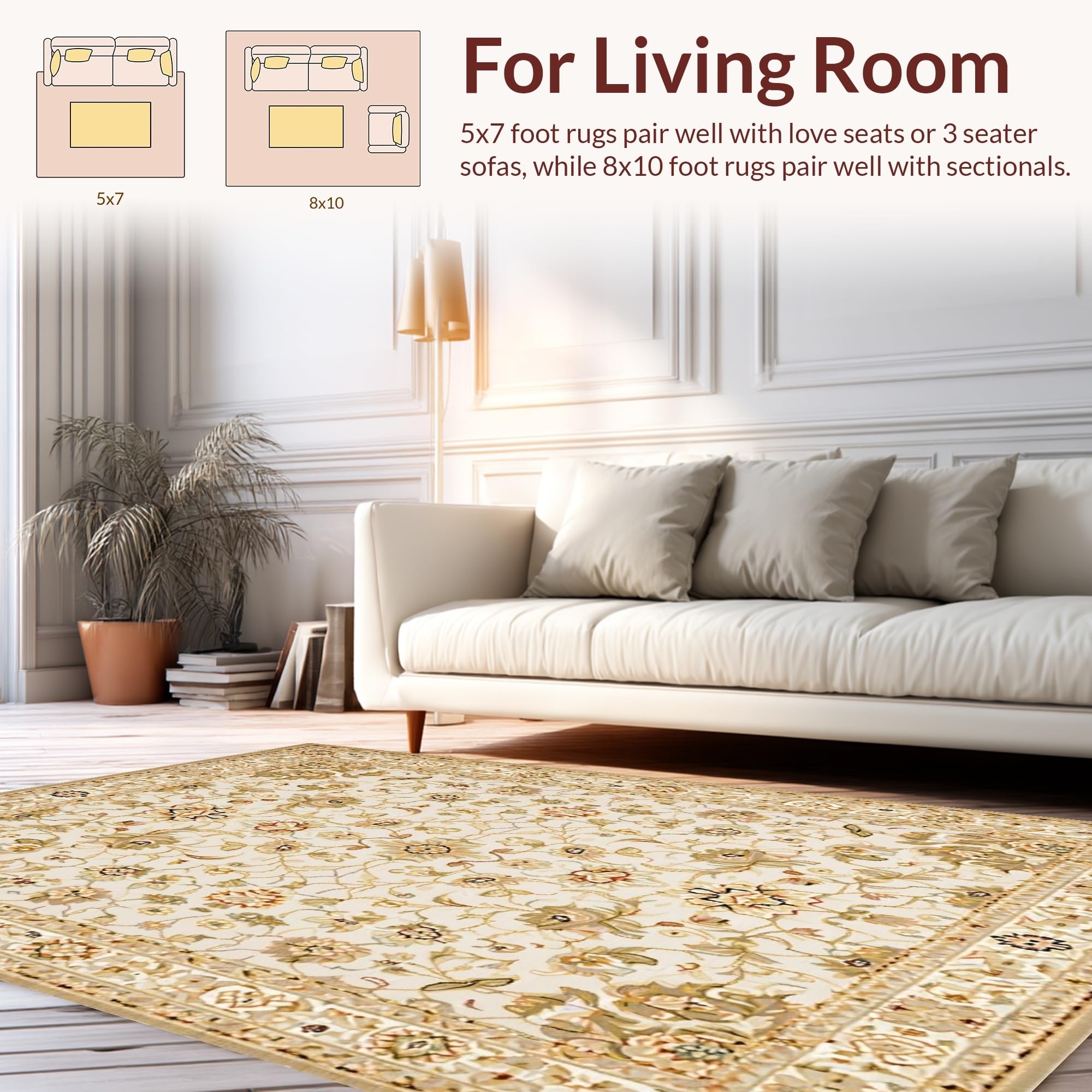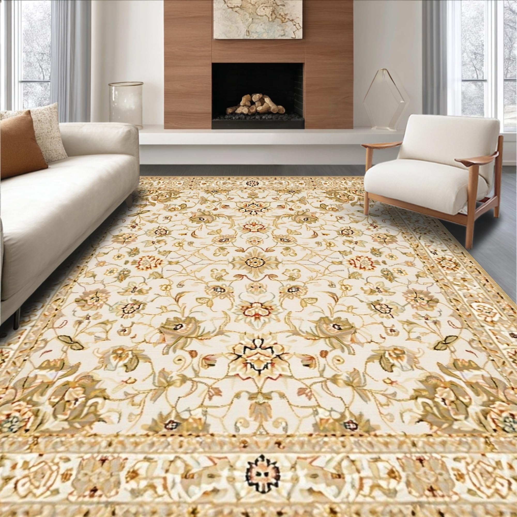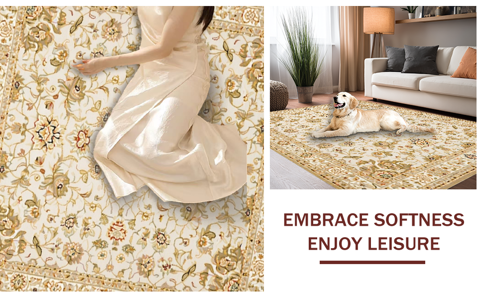 Ultra Soft Area Rug, Non Slip, Stain Resistant, Washable Area Rugs for Living Room, Bedroom, Whimsical Light-Toned Floral Elegance(Beige) Overview: