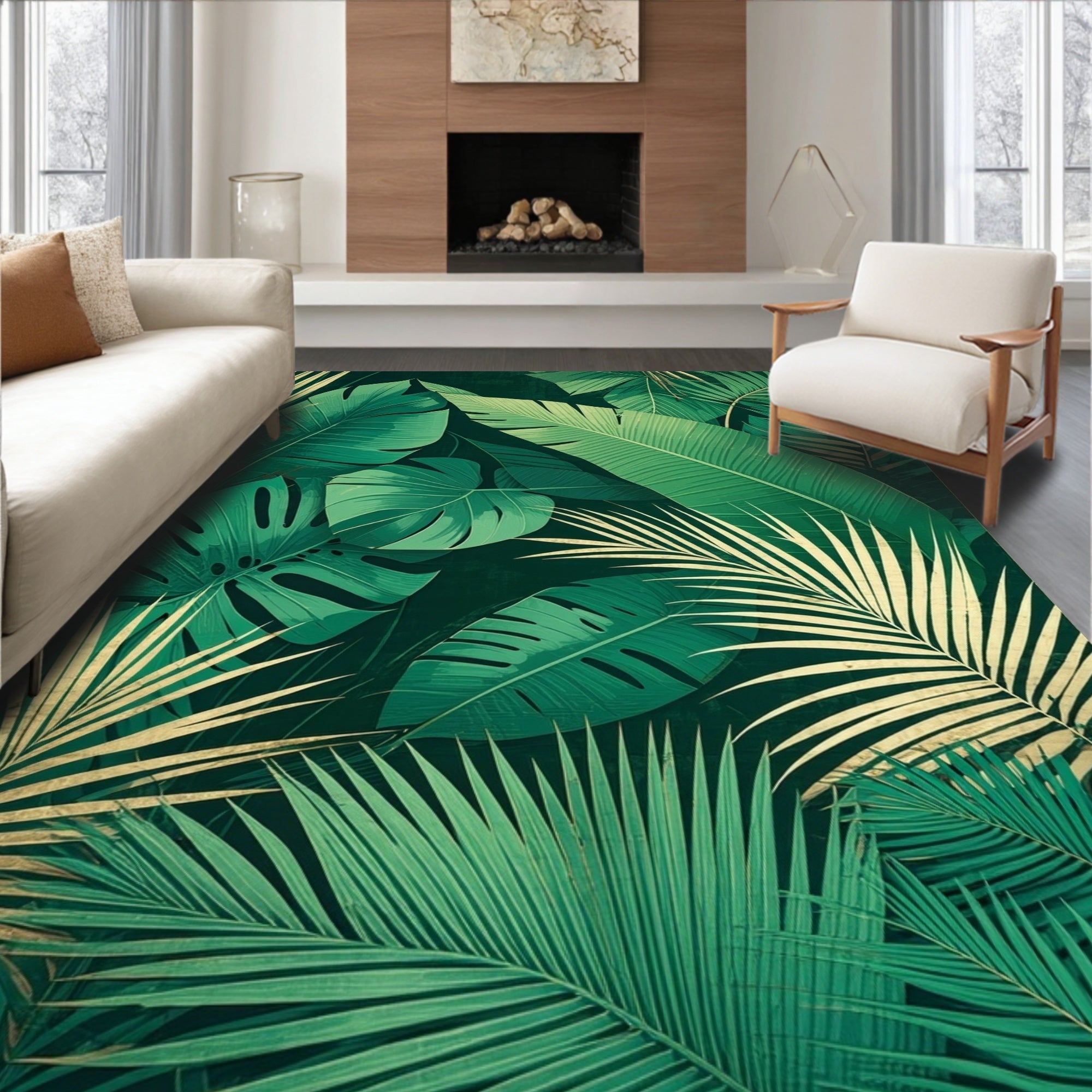 Flatwoven High Traffic Area Rug, Whimsical Lush Green Palette, Non Slip, Stain Resistant, Washable Area Rugs for Living Room, Bedroom (Green) Overview: