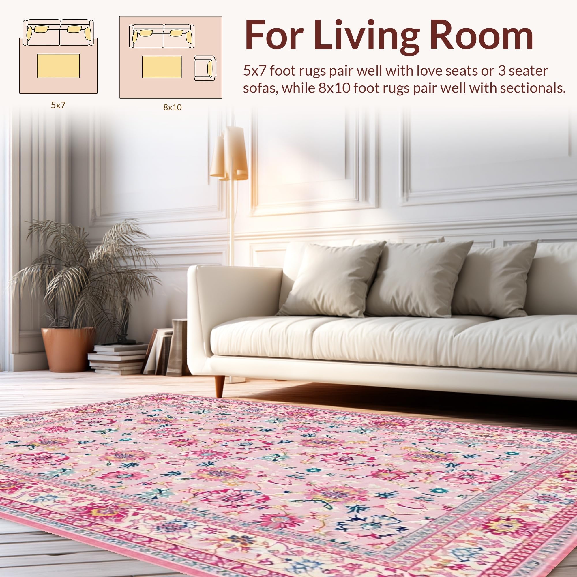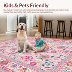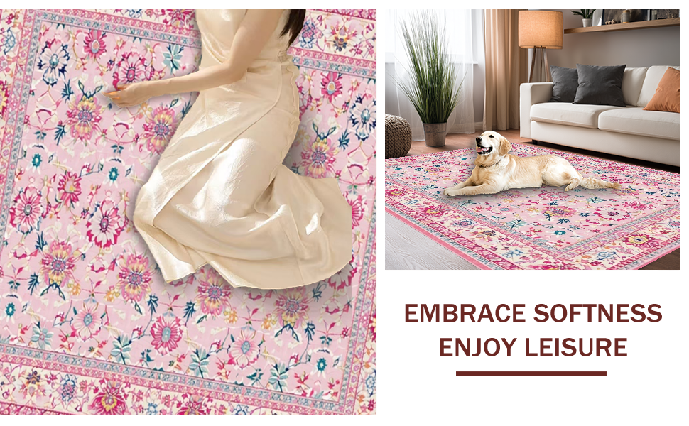 Ultra Soft Area Rug, Non Slip, Stain Resistant, Washable Area Rugs for Living Room, Bedroom, Whimsical Modern Floral Touch(Pink) Overview: