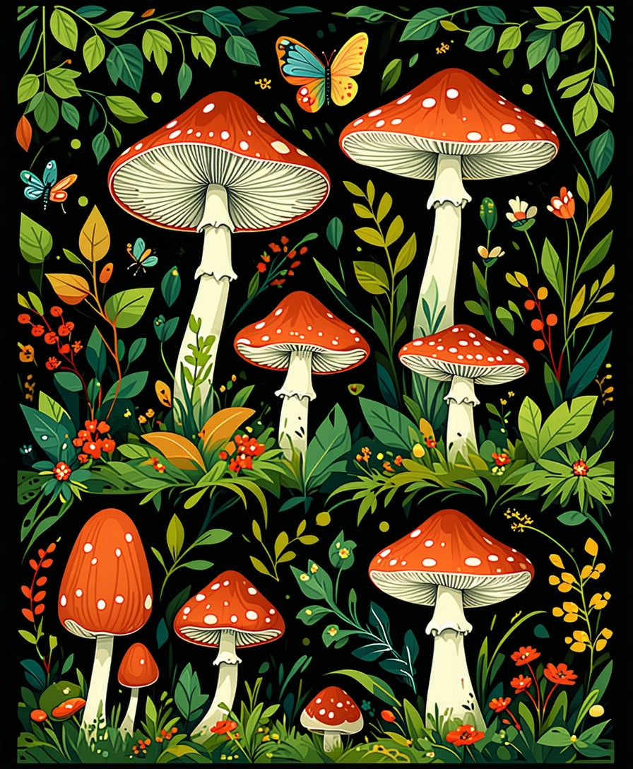 Whimsical Moth and Mushroom Art(Red)