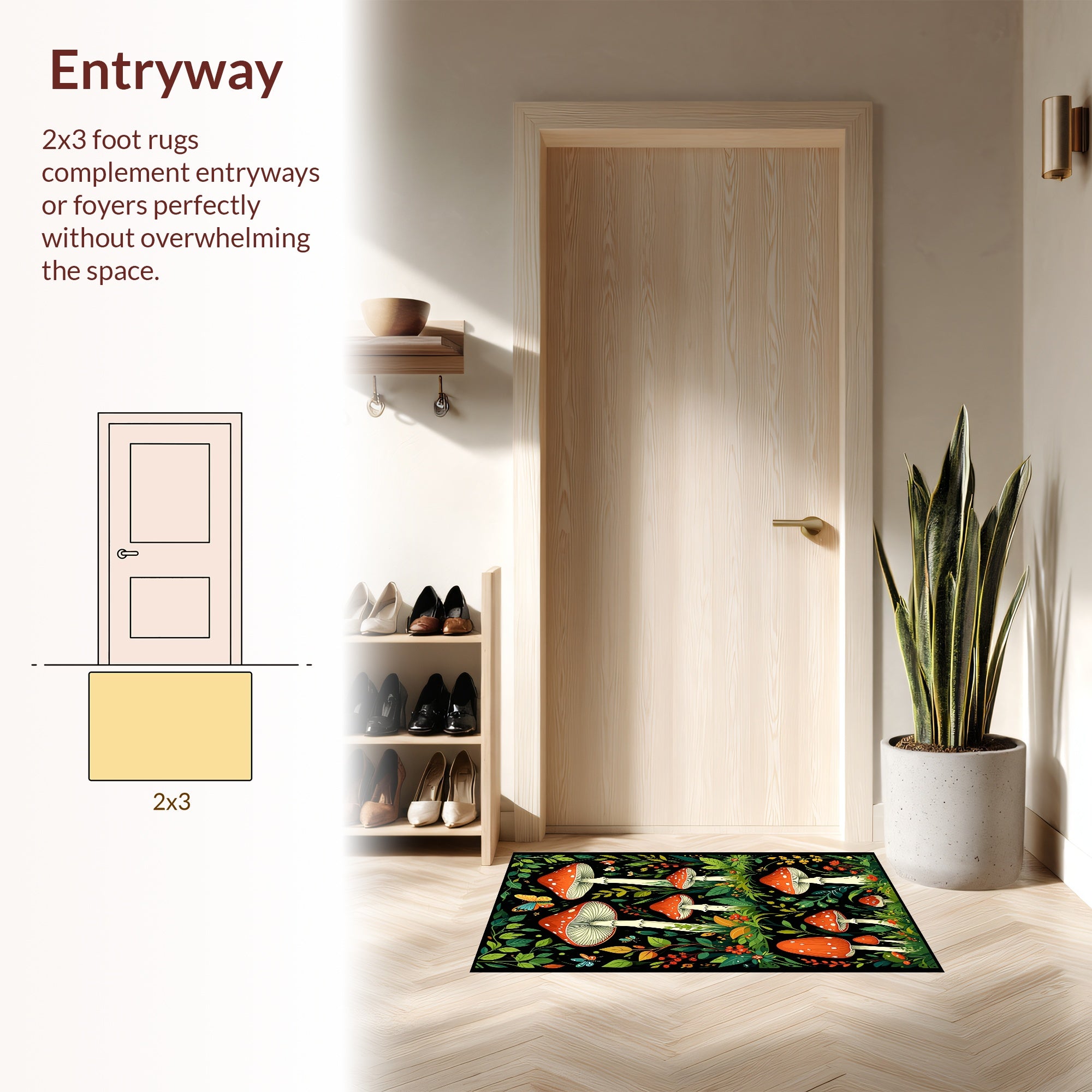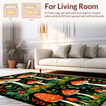 Flatwoven High Traffic Area Rug, Whimsical Moth and Mushroom Art, Non Slip, Stain Resistant, Washable Area Rugs for Living Room, Bedroom (Red) Overview: