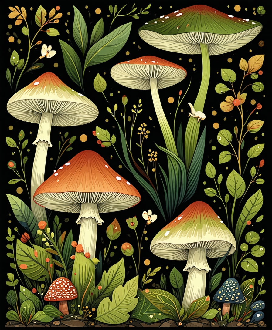 Whimsical Moth and Mushroom(Green)