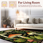 Flatwoven High Traffic Area Rug, Whimsical Moth and Mushroom, Non Slip, Stain Resistant, Washable Area Rugs for Living Room, Bedroom (Green) Overview: