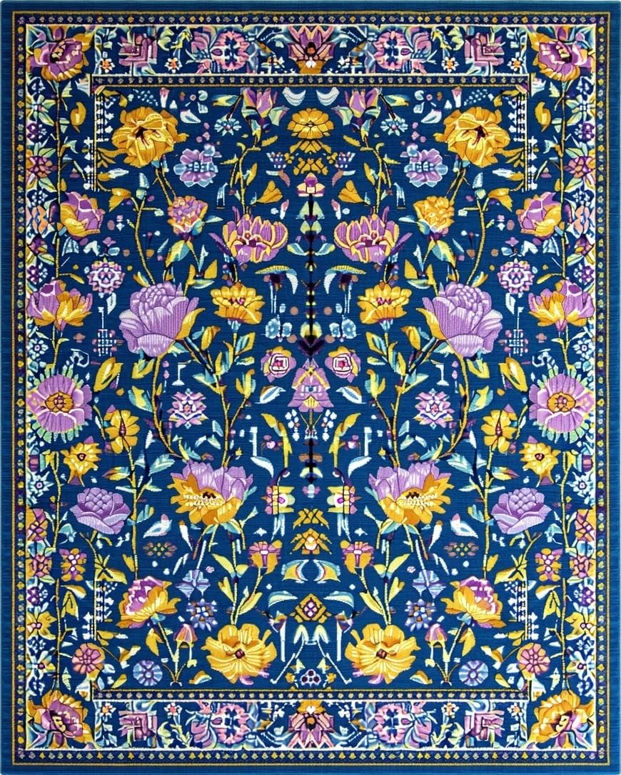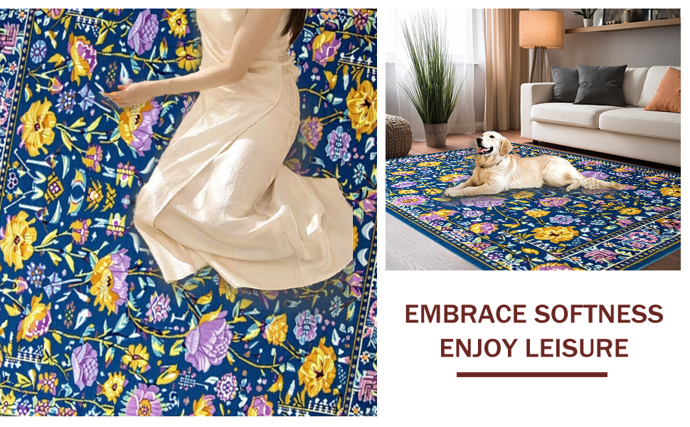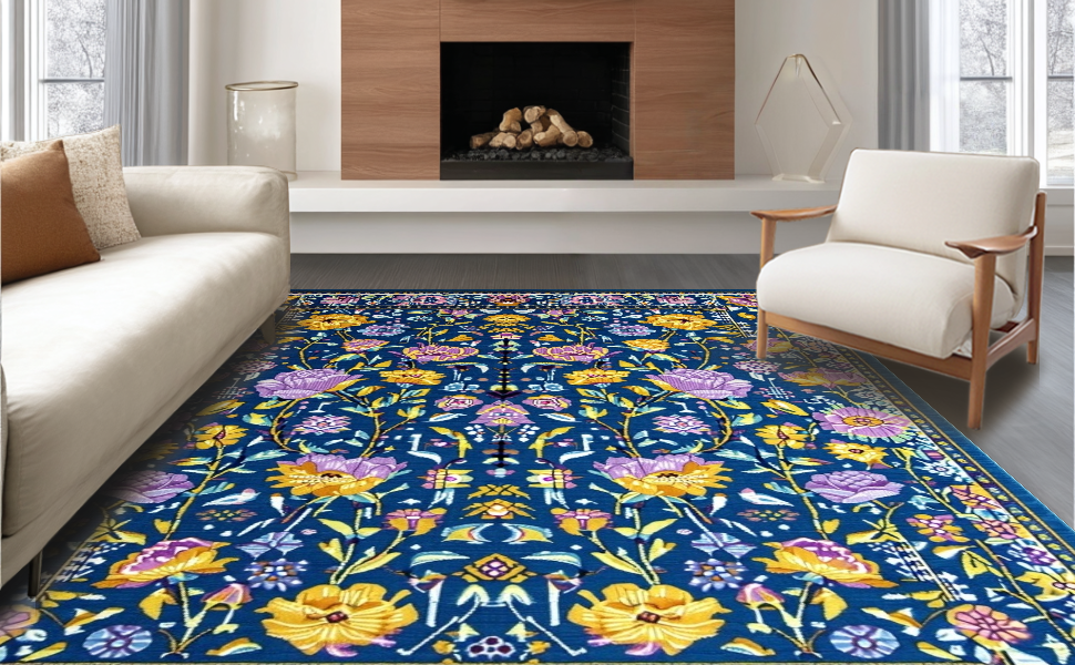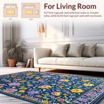 Ultra Soft Area Rug, Non Slip, Stain Resistant, Washable Area Rugs for Living Room, Bedroom, Whimsical Multicolor Petal Arrangement(Blue) Overview: