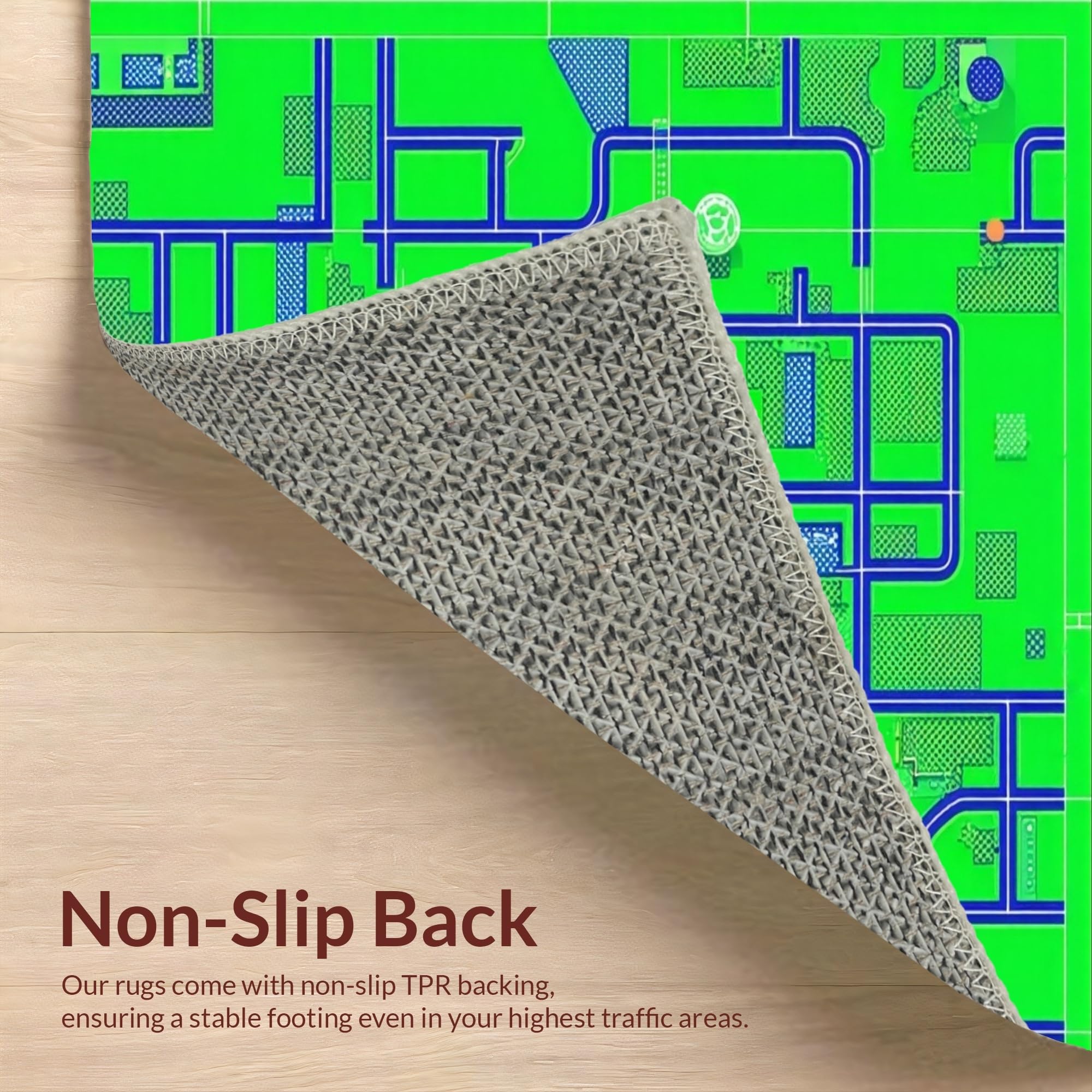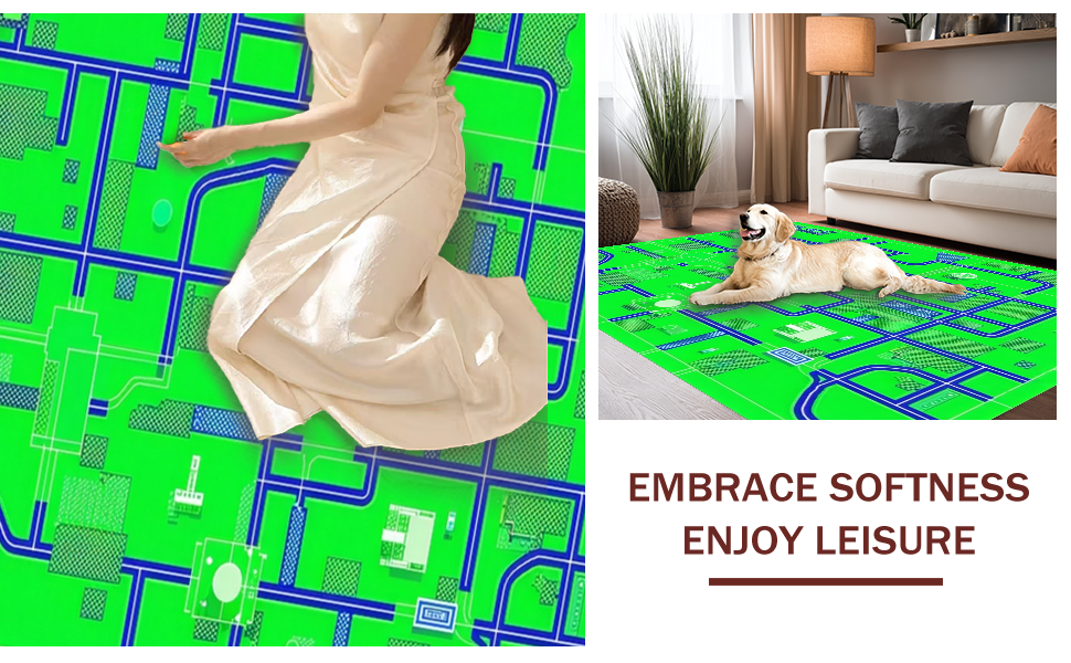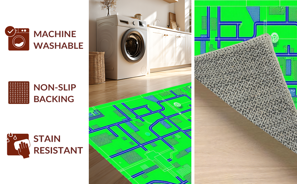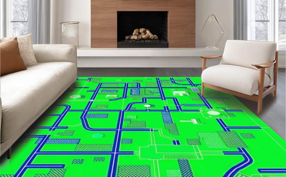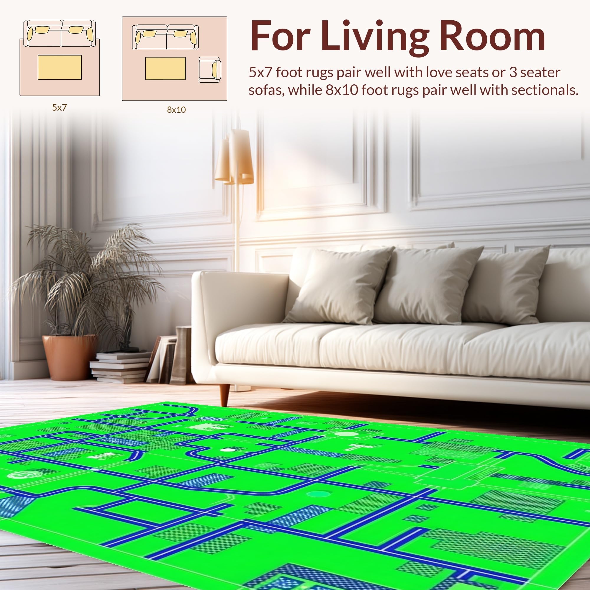 Ultra Soft Area Rug, Non Slip, Stain Resistant, Washable Area Rugs for Living Room, Bedroom, Whimsical Multicolor Transportation Theme(Green) Overview: