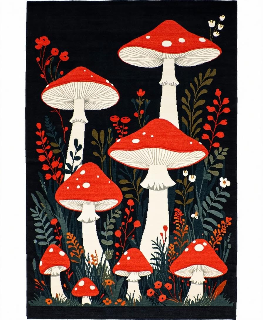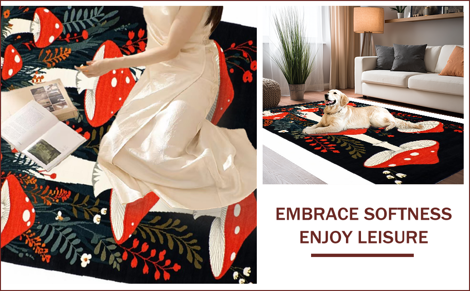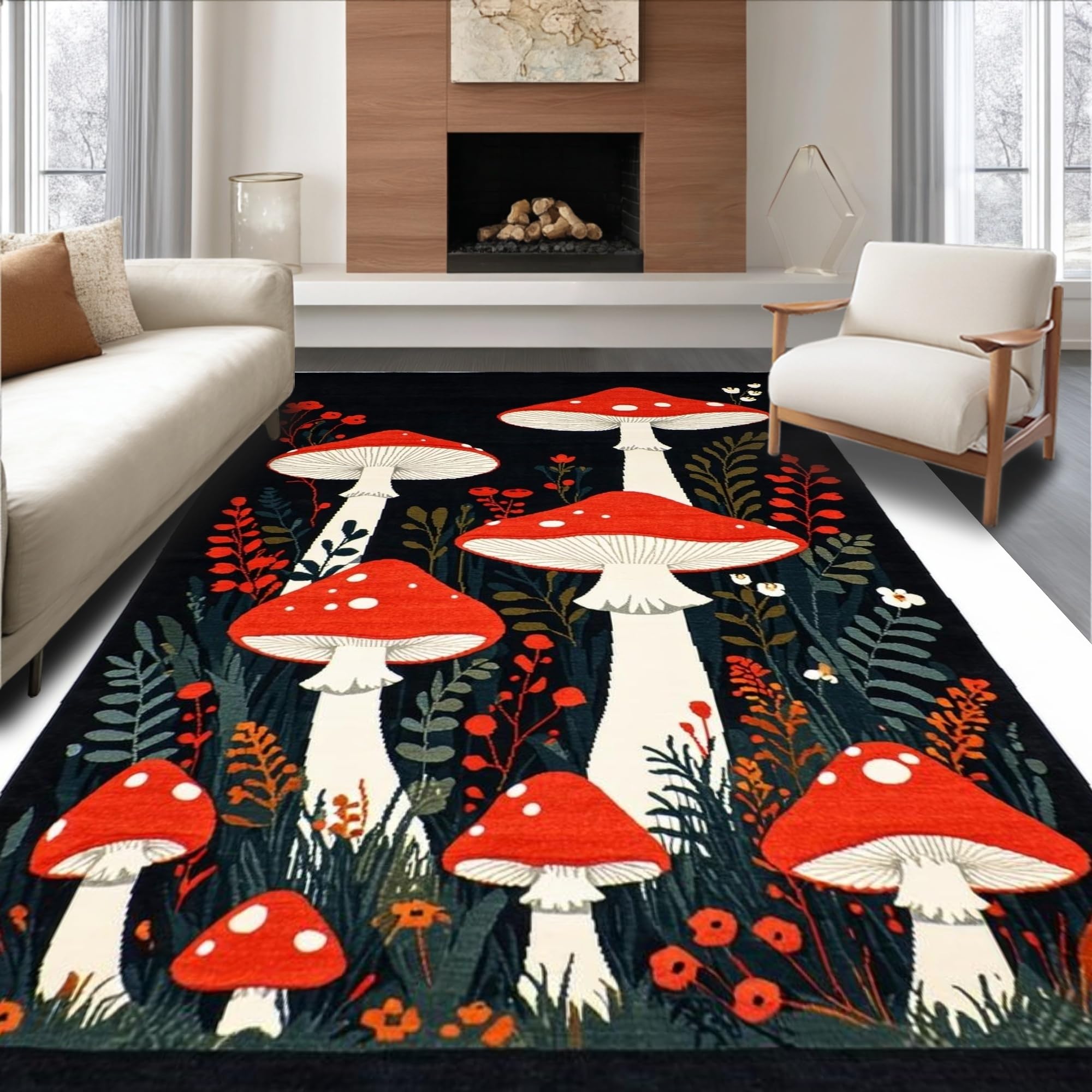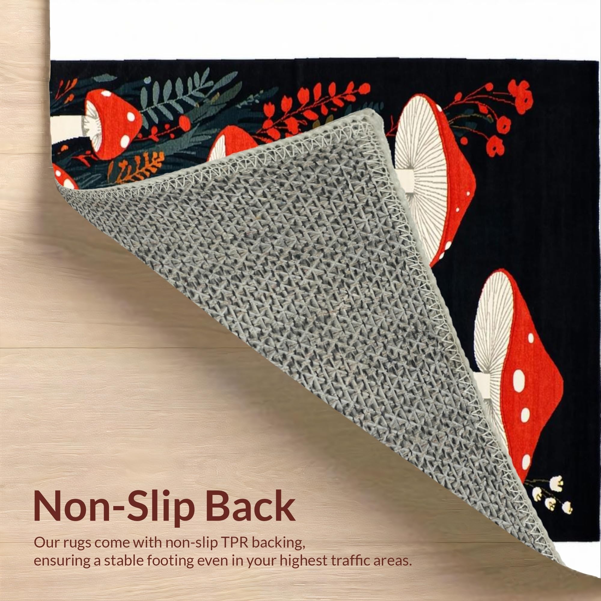 Ultra Soft Area Rug, Non Slip, Stain Resistant, Washable Area Rugs for Living Room, Bedroom, Whimsical Mushroom Motif Delight(Red) Overview: