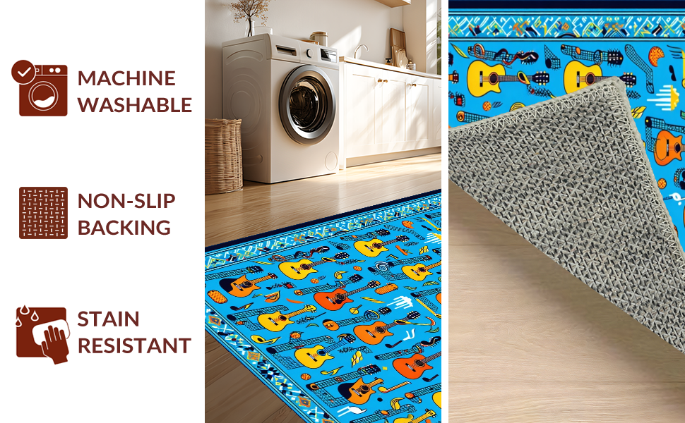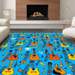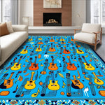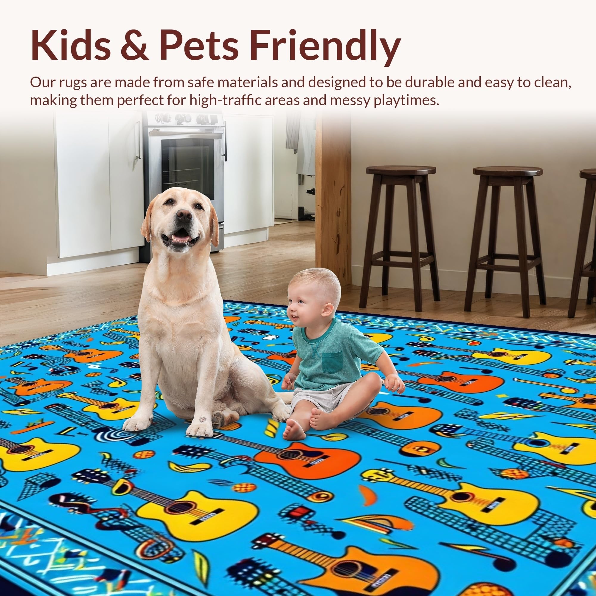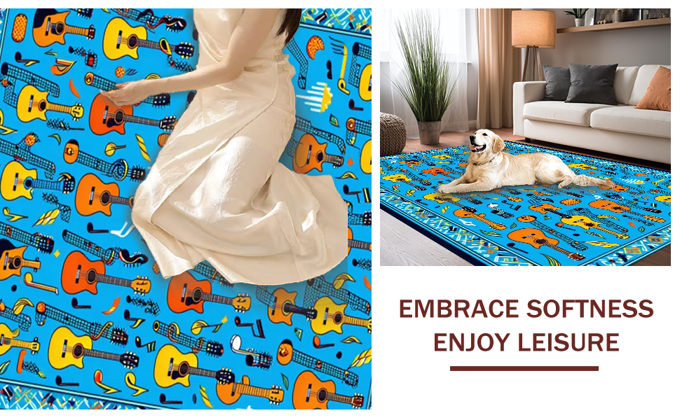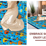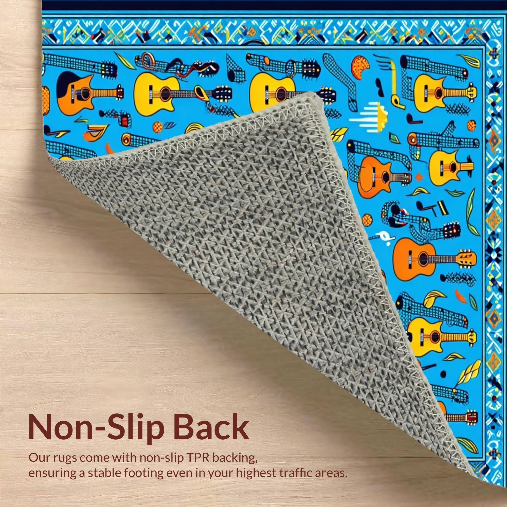 Ultra Soft Area Rug, Non Slip, Stain Resistant, Washable Area Rugs for Living Room, Bedroom, Whimsical Musical Montage Aesthetic(Blue) Overview: