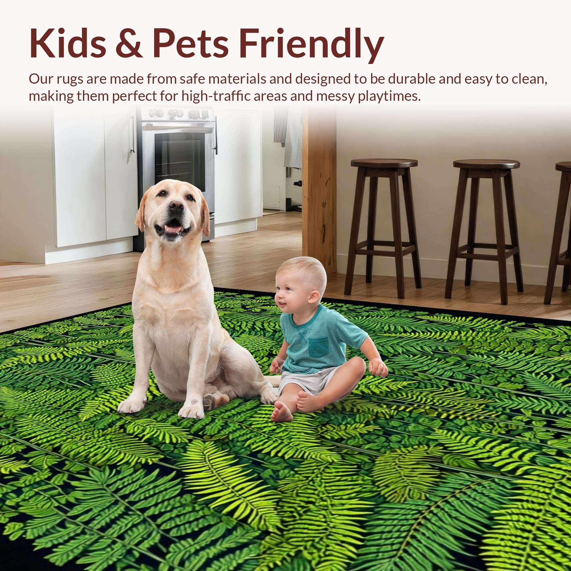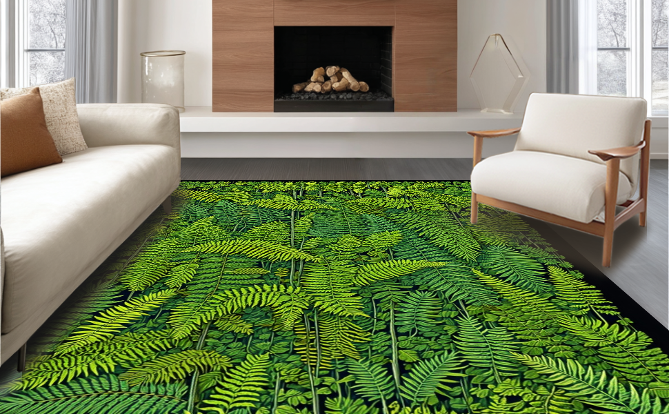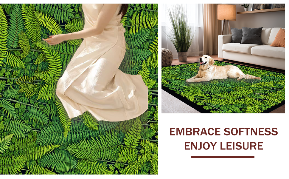 Ultra Soft Area Rug, Non Slip, Stain Resistant, Washable Area Rugs for Living Room, Bedroom, Whimsical Nature-Inspired Leaf Patterns(Green) Overview: