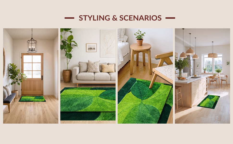 Ultra Soft Area Rug, Non Slip, Stain Resistant, Washable Area Rugs for Living Room, Bedroom, Whimsical Nature-Themed Decor(Green) Overview:
