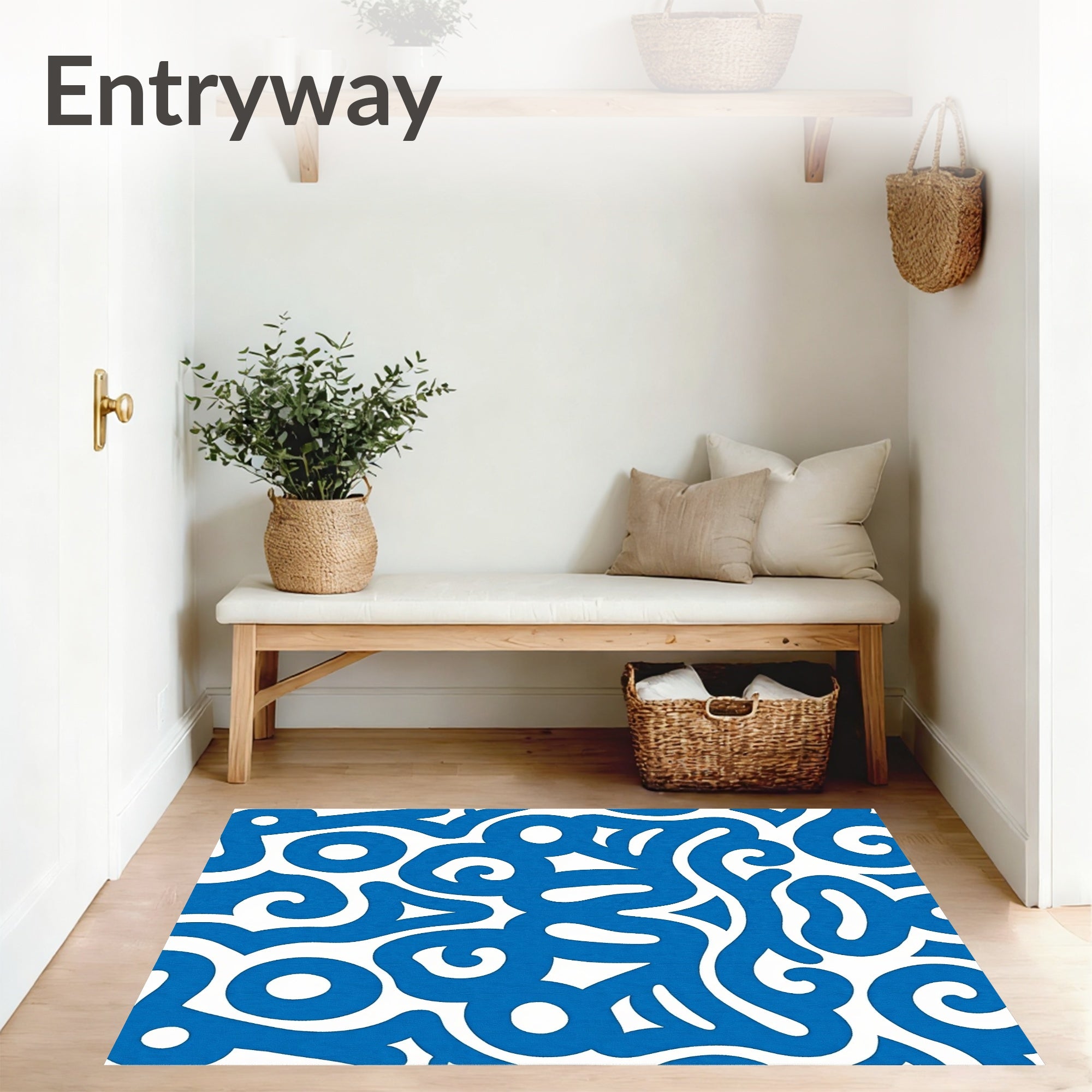Ultra Soft Area Rug, Non Slip, Stain Resistant, Washable Area Rugs for Living Room, Bedroom, Whimsical Nimbus Rippled Dot Formation Modern Art Look(Blue) Overview: