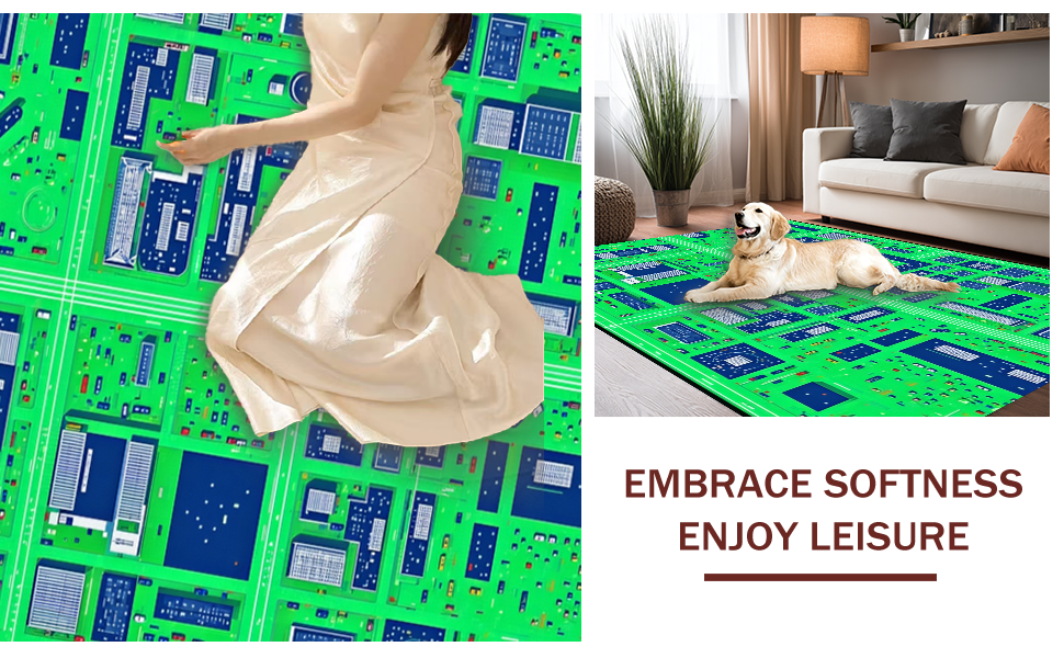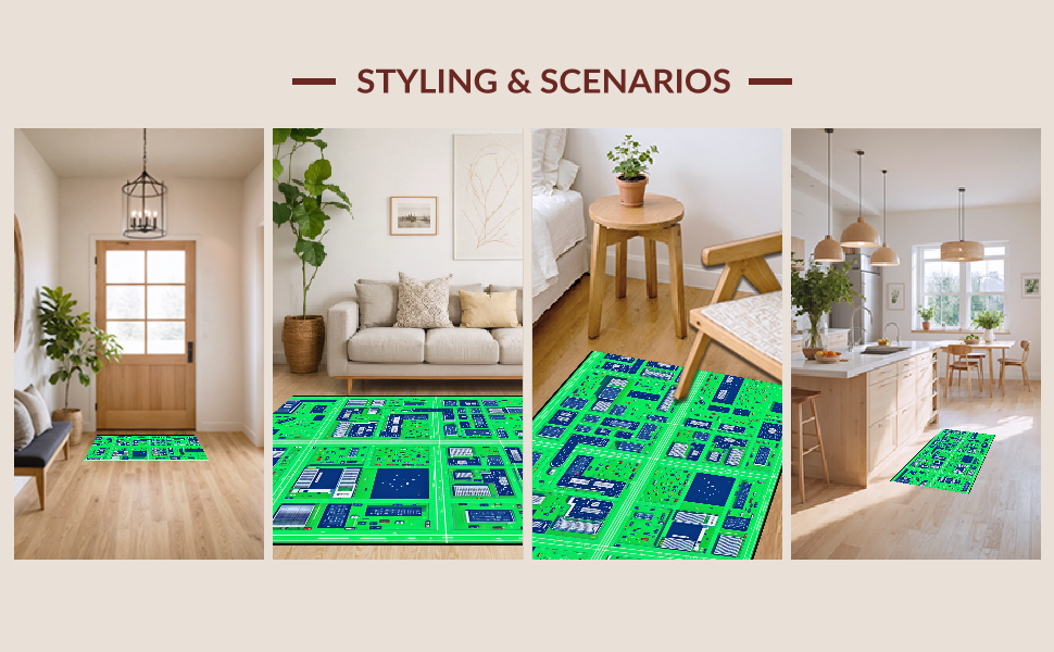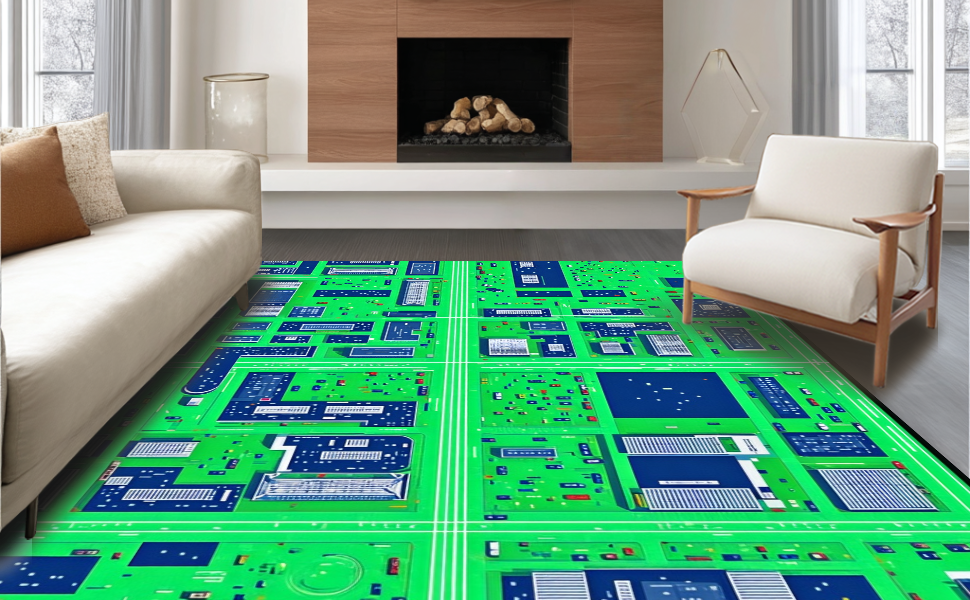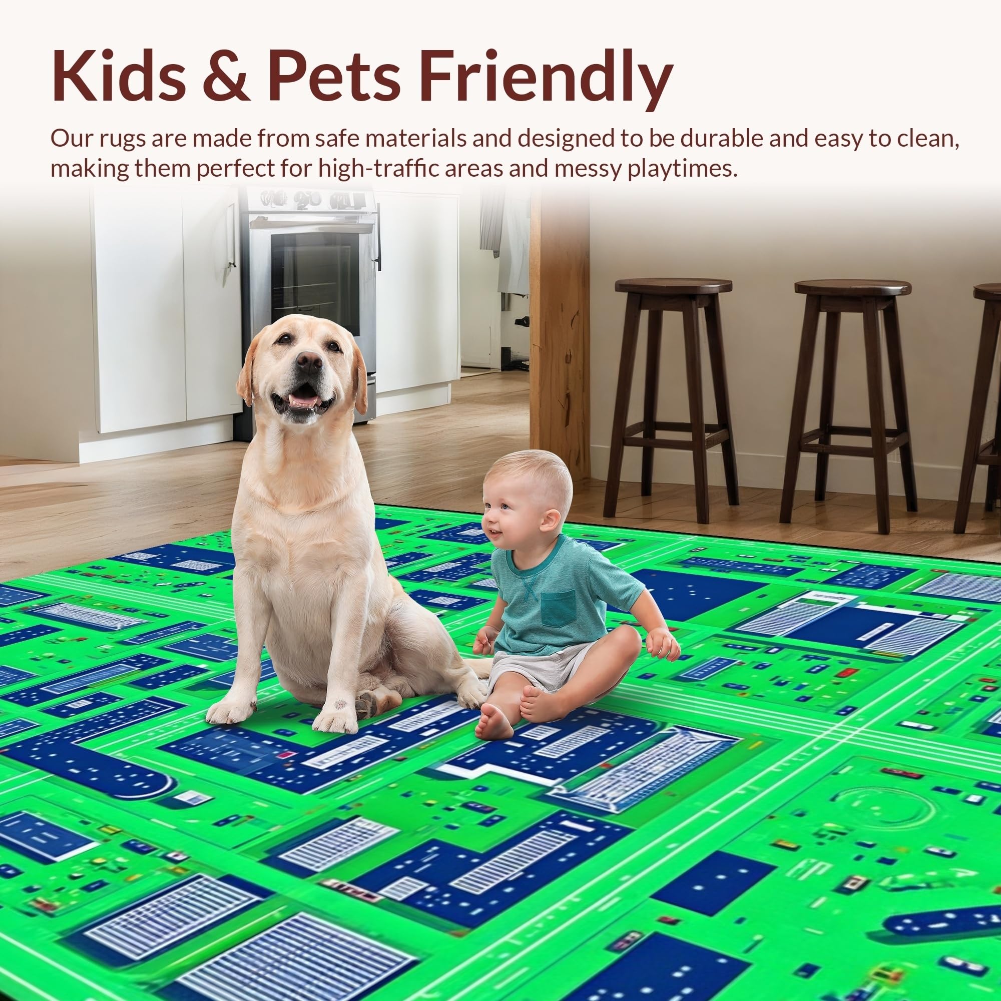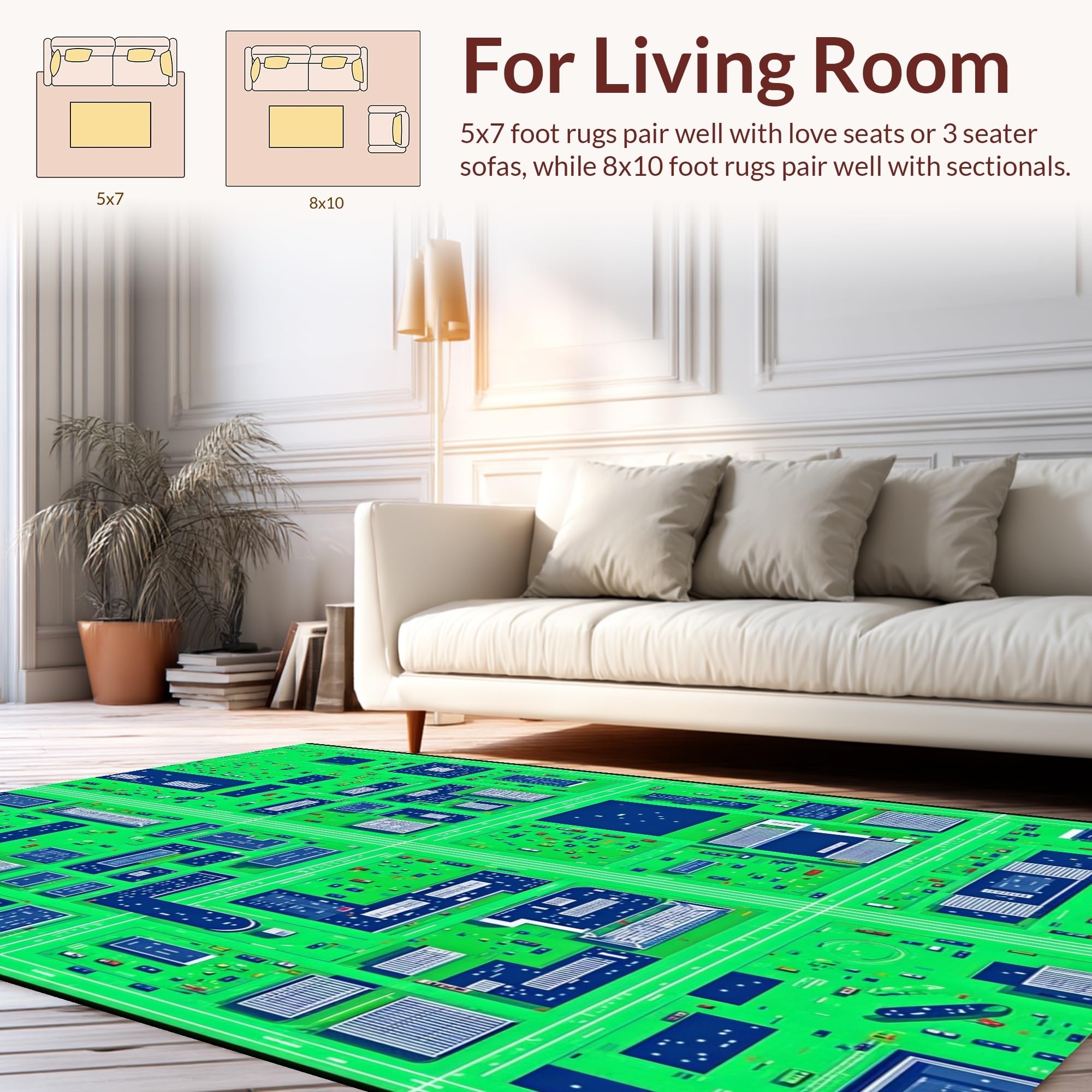 Ultra Soft Area Rug, Non Slip, Stain Resistant, Washable Area Rugs for Living Room, Bedroom, Whimsical Non-Toxic Cityscape Design(Green) Overview: