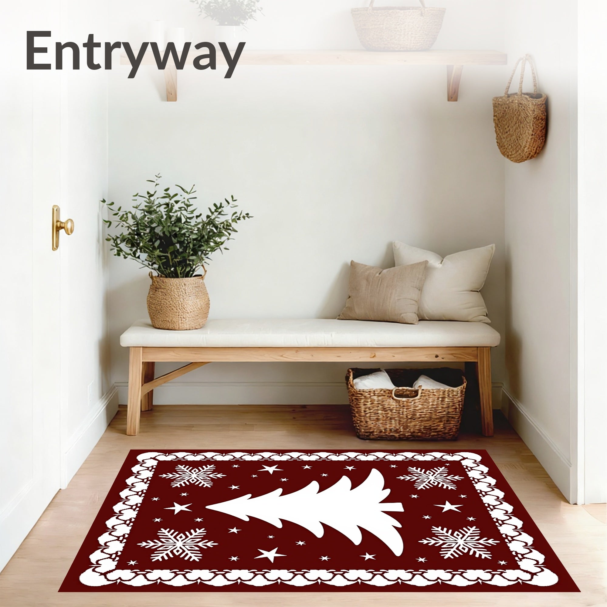 Ultra Soft Area Rug, Non Slip, Stain Resistant, Washable Area Rugs for Living Room, Bedroom, Whimsical North Pole Fantasy Yuletide Decorative Embellishment(Red) Overview: