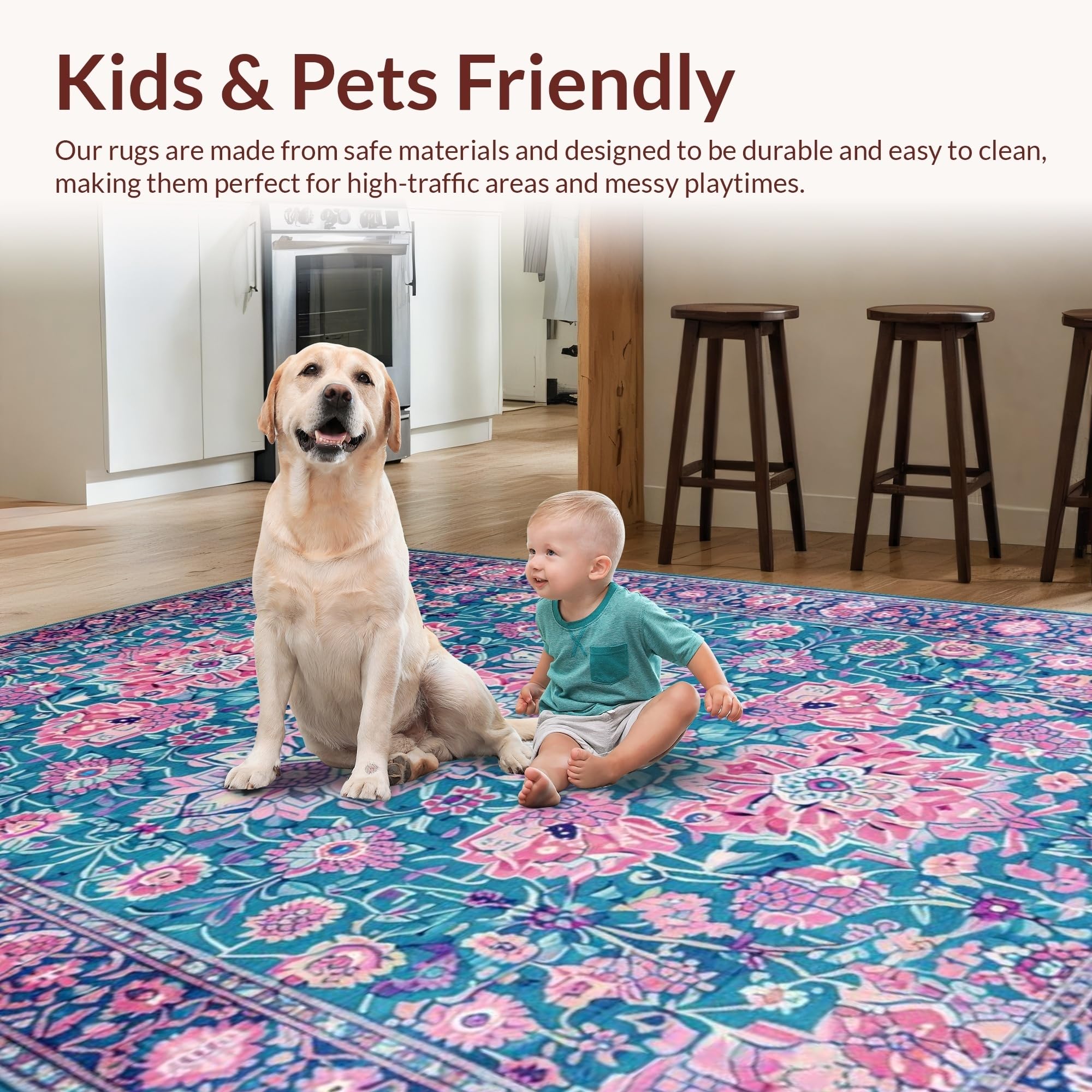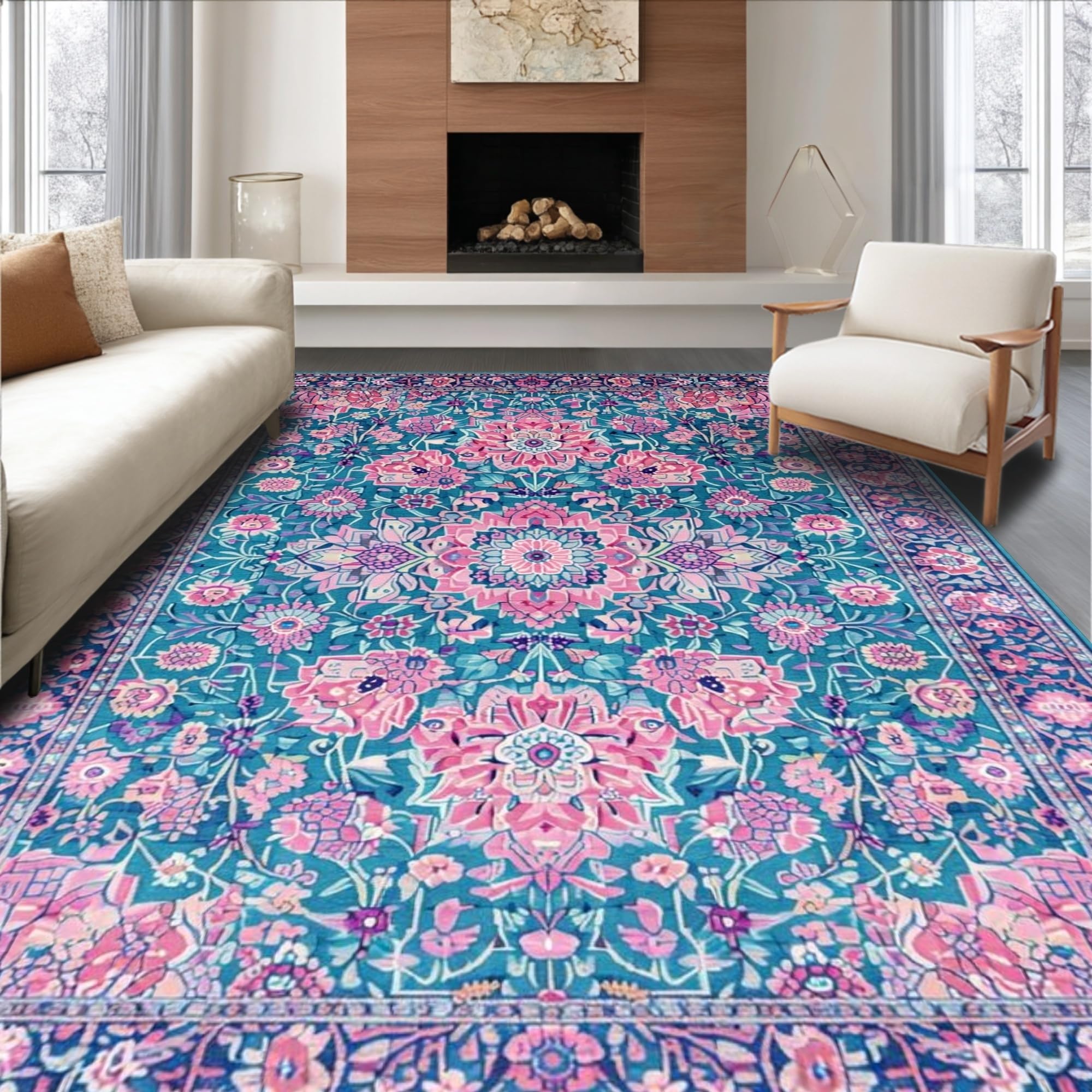 Ultra Soft Area Rug, Non Slip, Stain Resistant, Washable Area Rugs for Living Room, Bedroom, Whimsical Oceanic Color Palette(Blue) Overview: