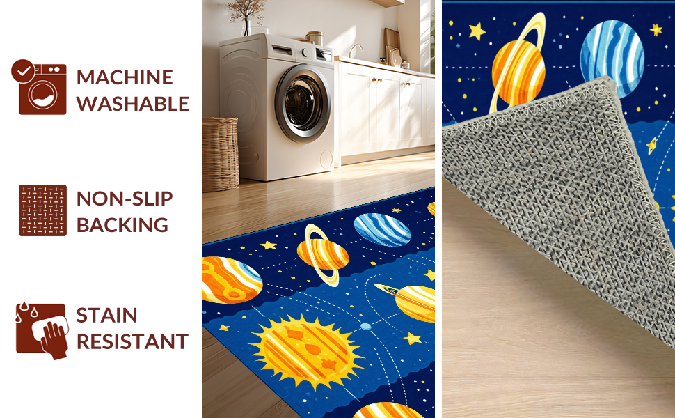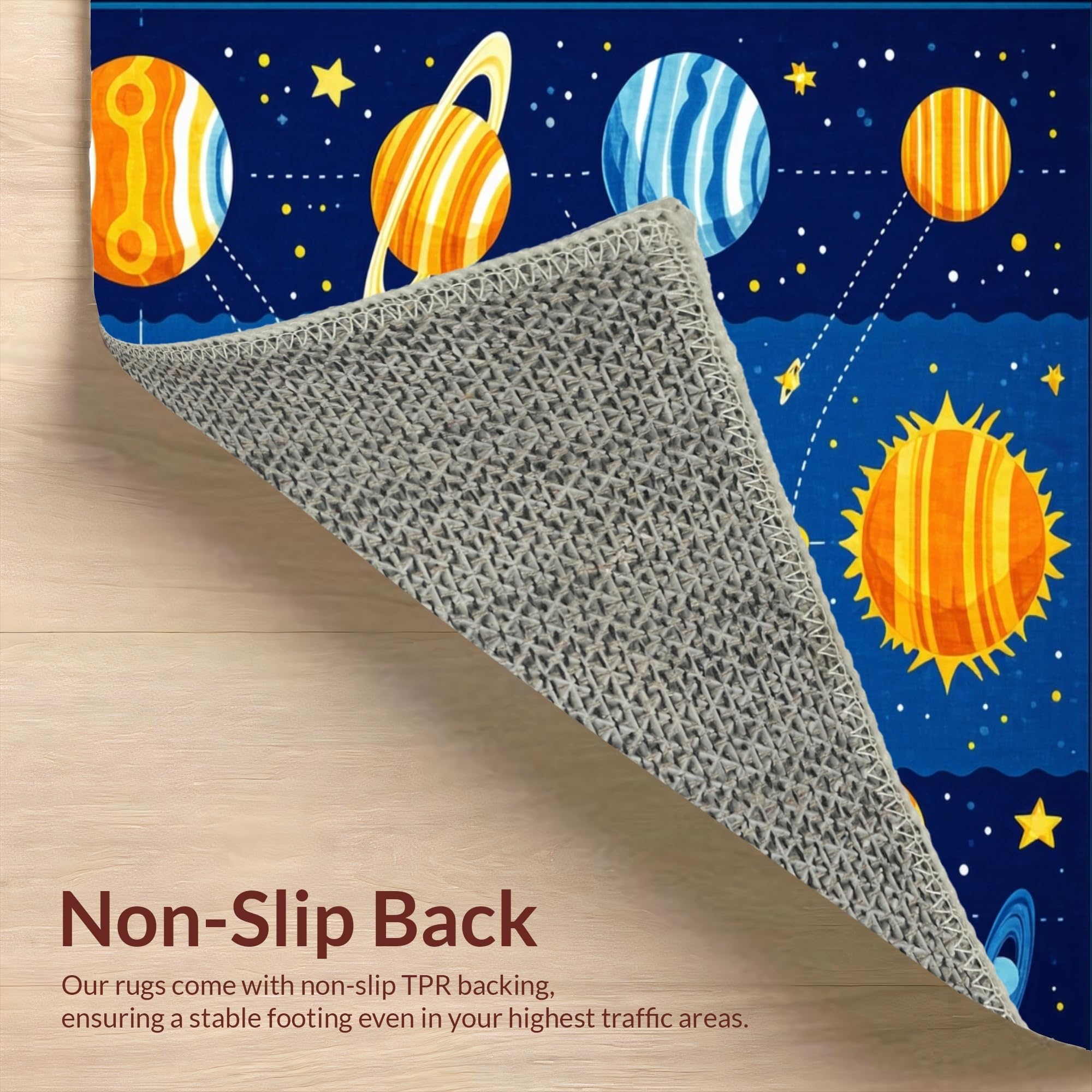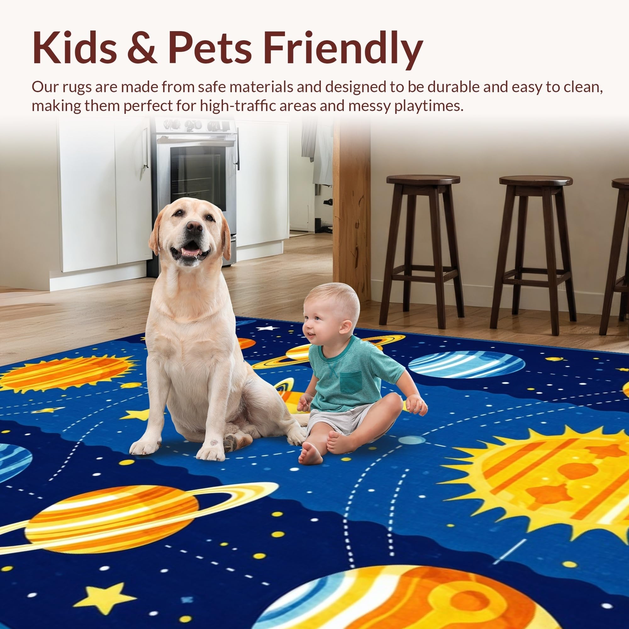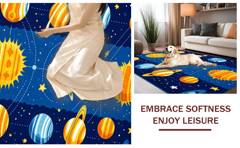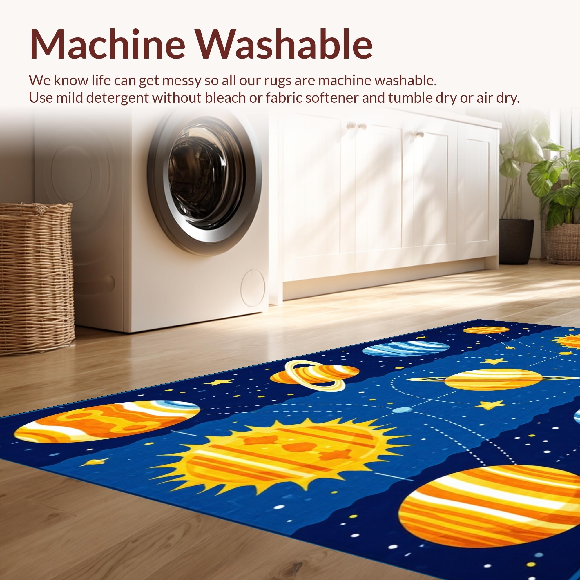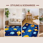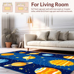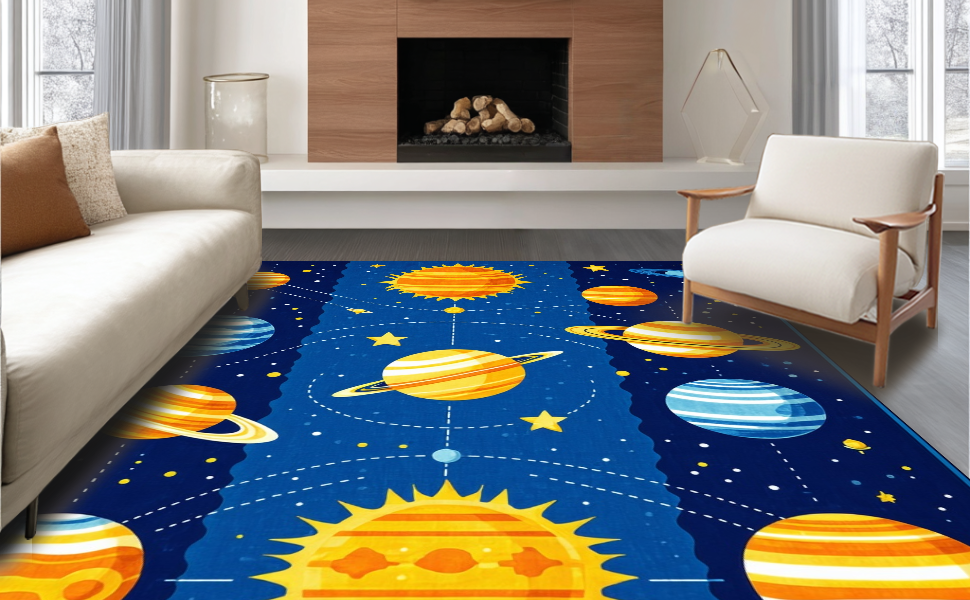 Ultra Soft Area Rug, Non Slip, Stain Resistant, Washable Area Rugs for Living Room, Bedroom, Whimsical Orbiting Universe Aesthetic(Blue) Overview: