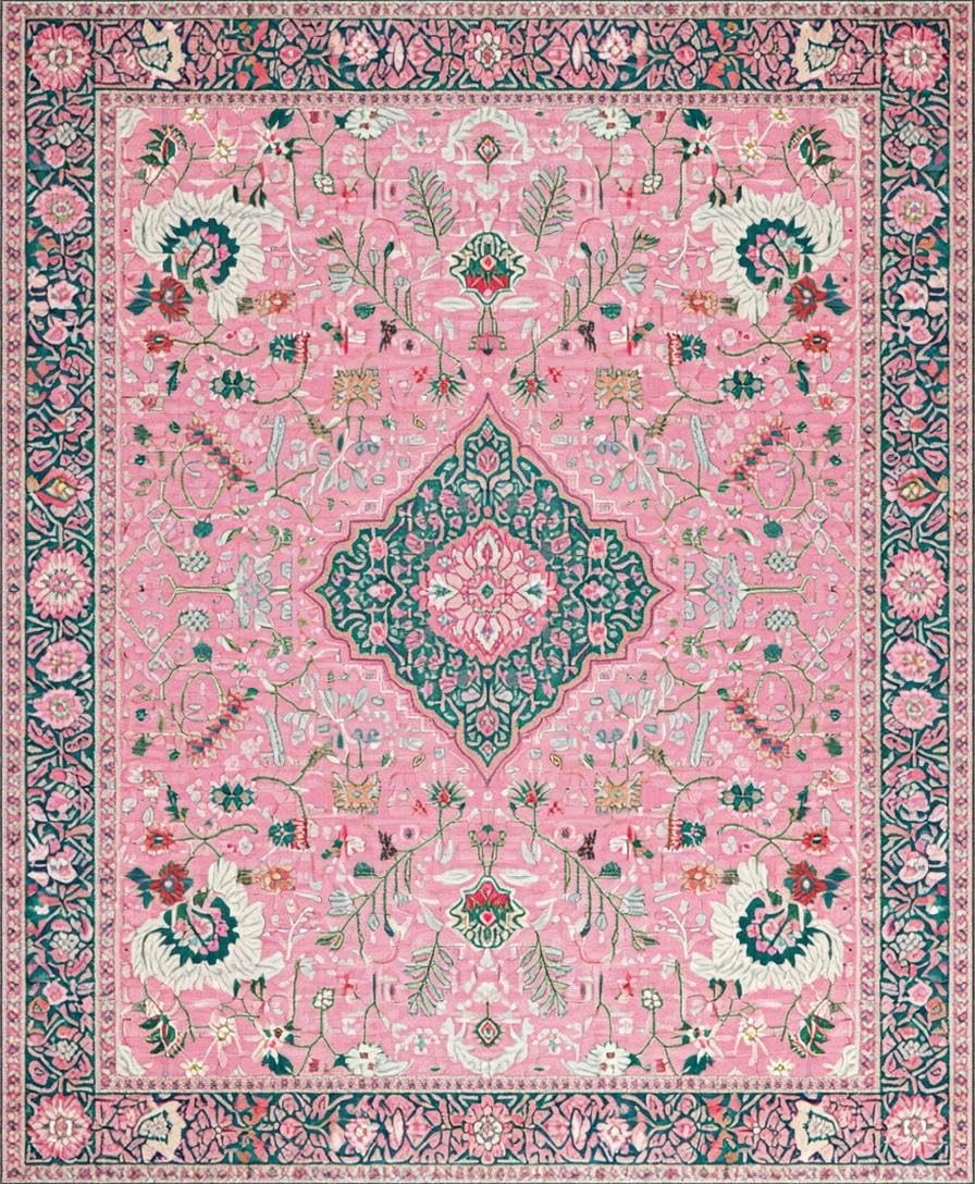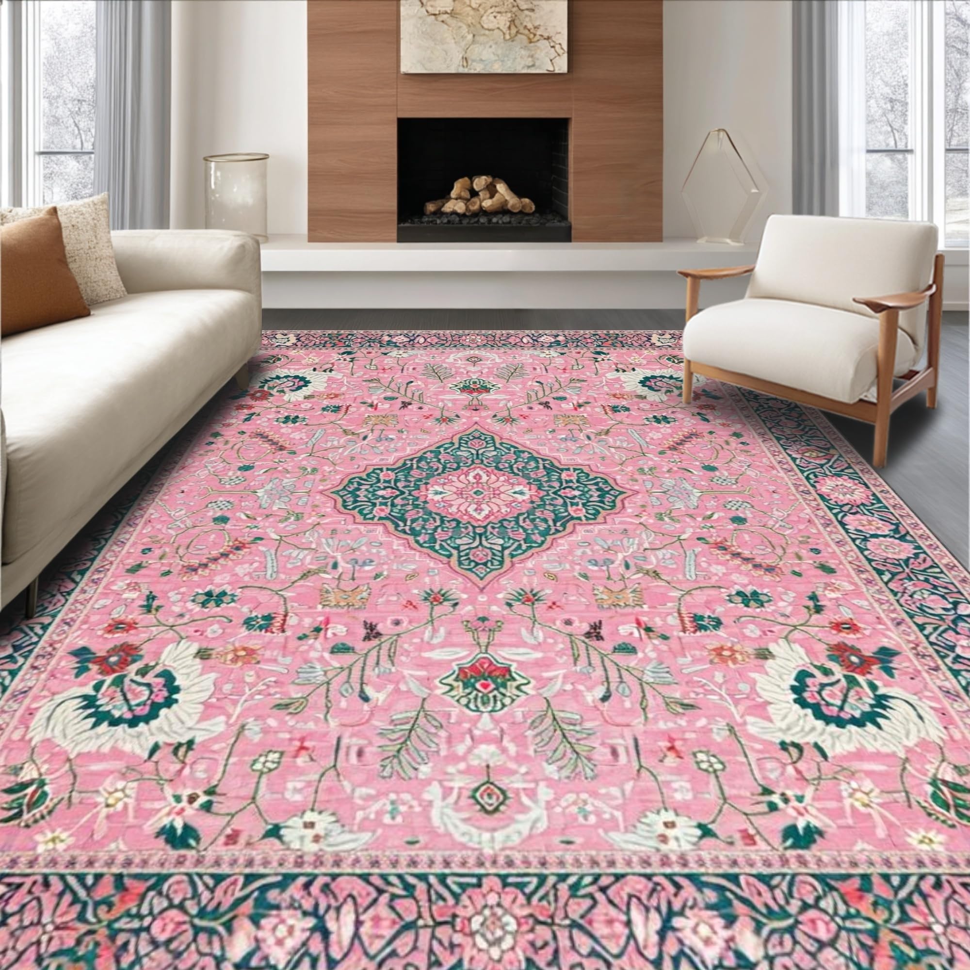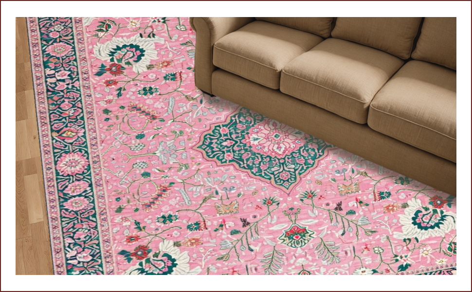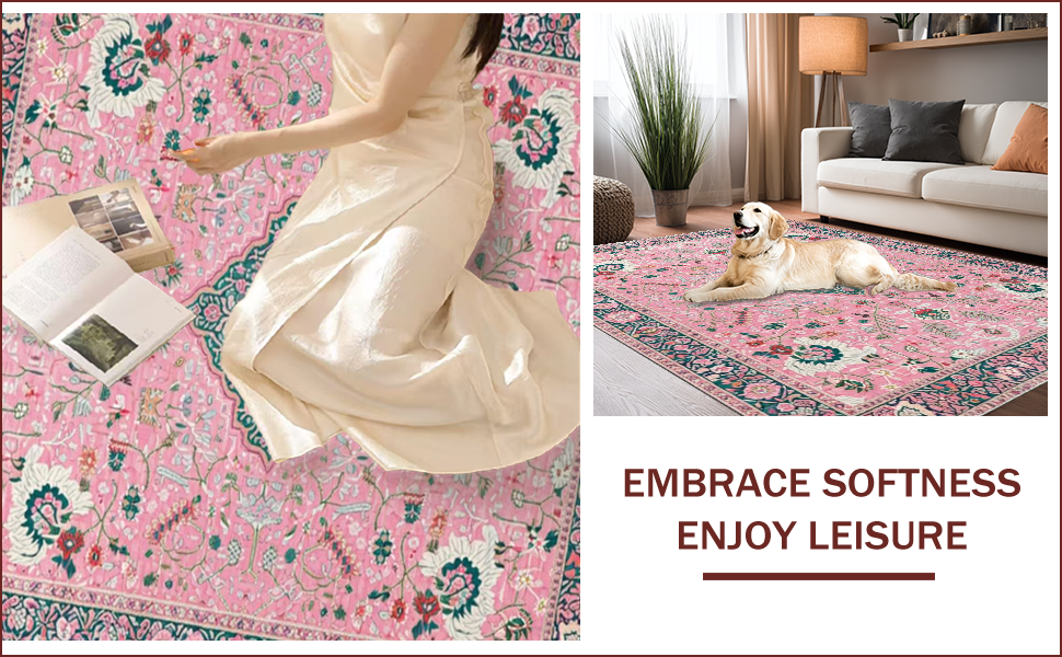 Ultra Soft Area Rug, Non Slip, Stain Resistant, Washable Area Rugs for Living Room, Bedroom, Whimsical Pastel Floral Fantasy(Pink) Overview: