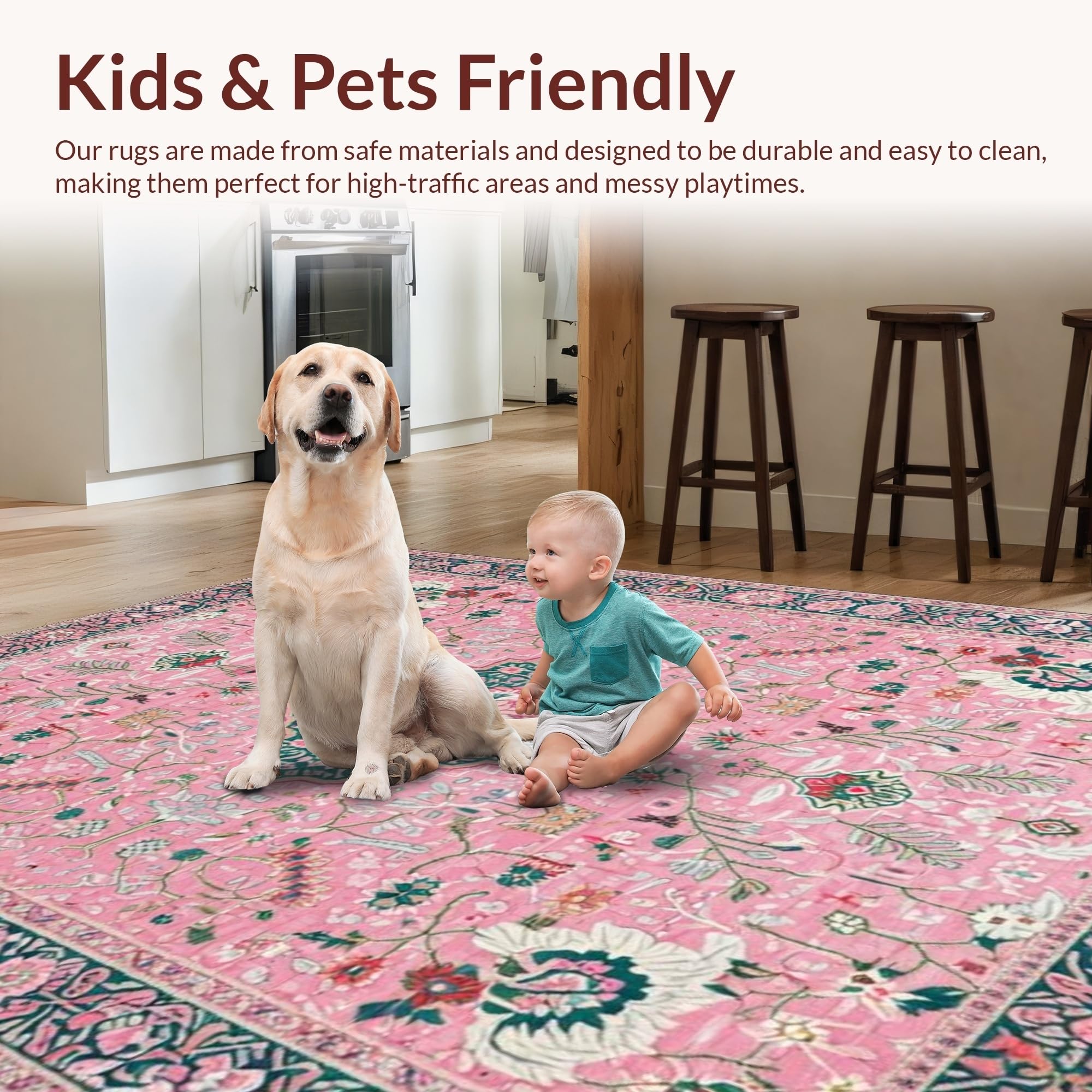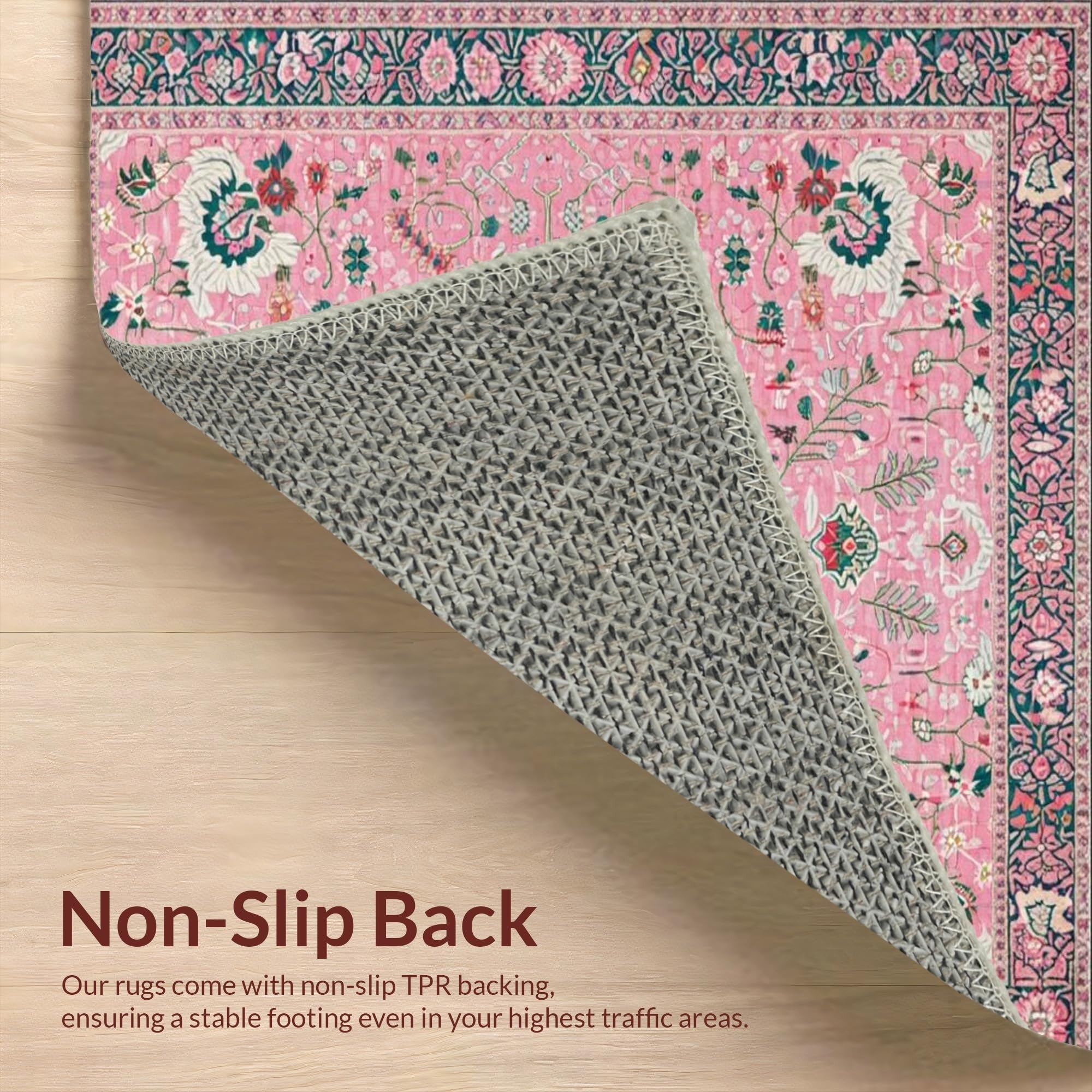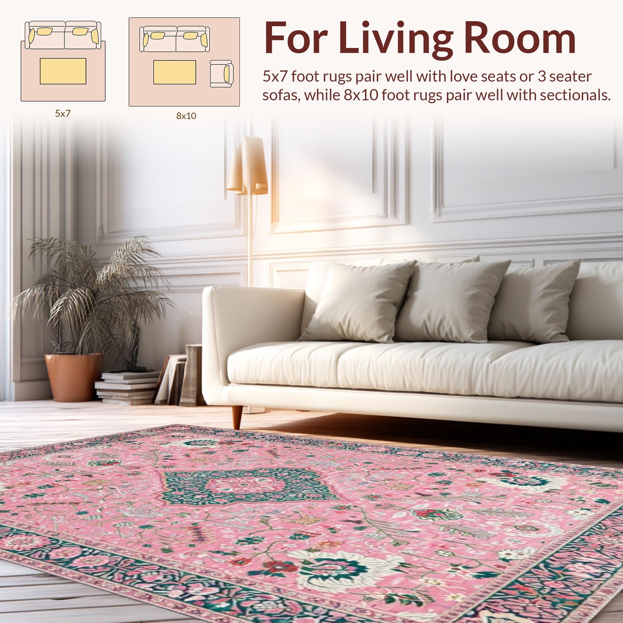 Ultra Soft Area Rug, Non Slip, Stain Resistant, Washable Area Rugs for Living Room, Bedroom, Whimsical Pastel Floral Fantasy(Pink) Overview:
