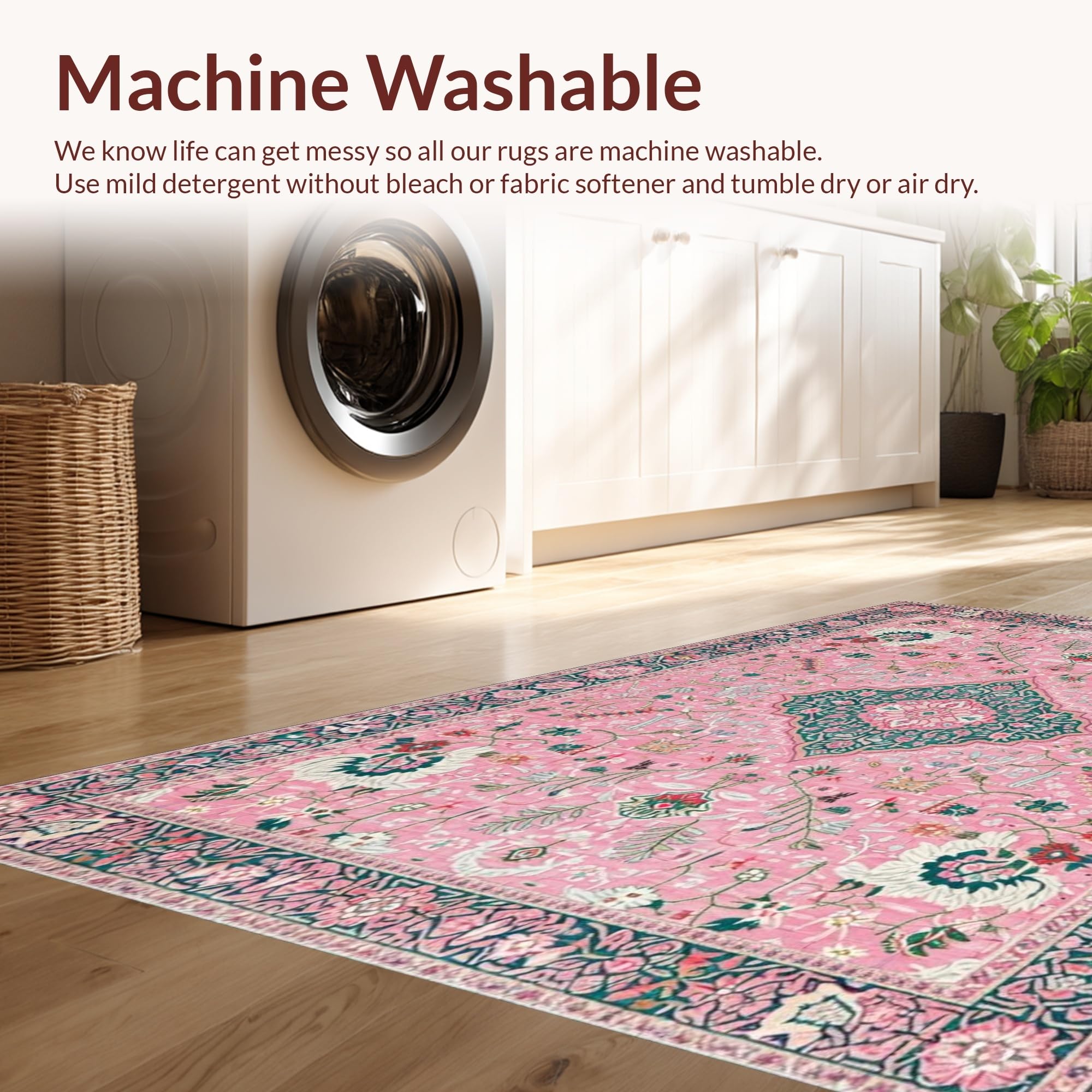 - Machine Washable: Our rugs can be easily thrown in the wash machine.