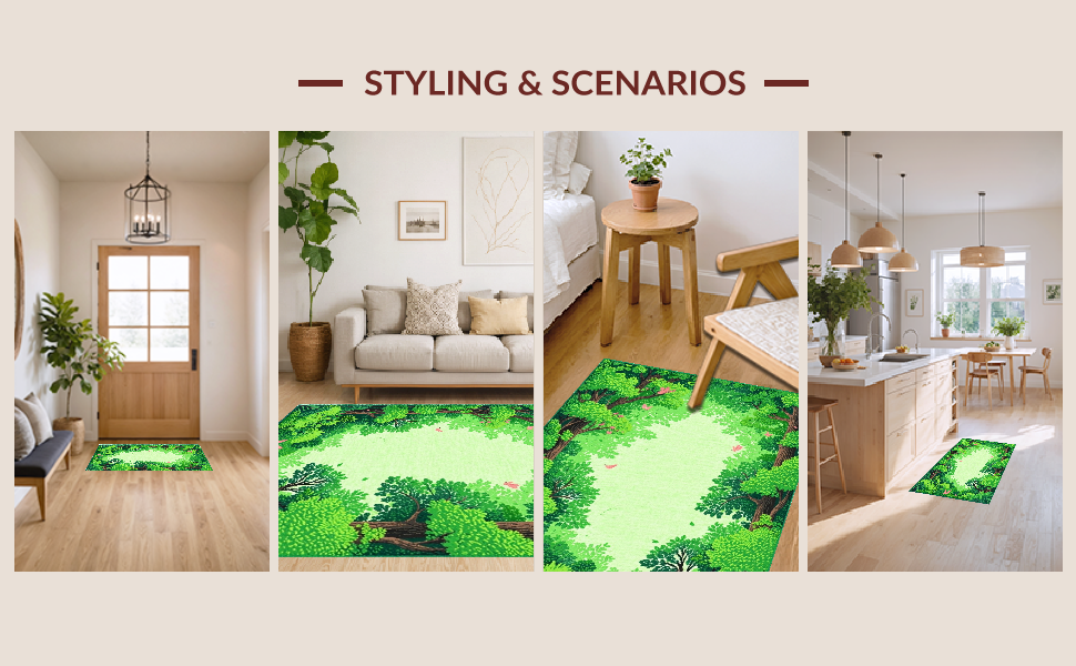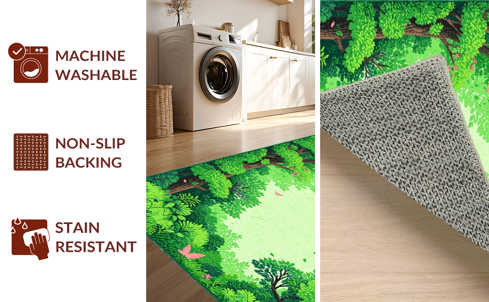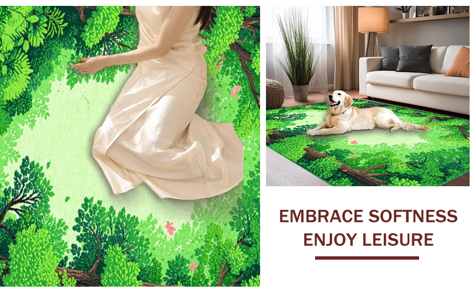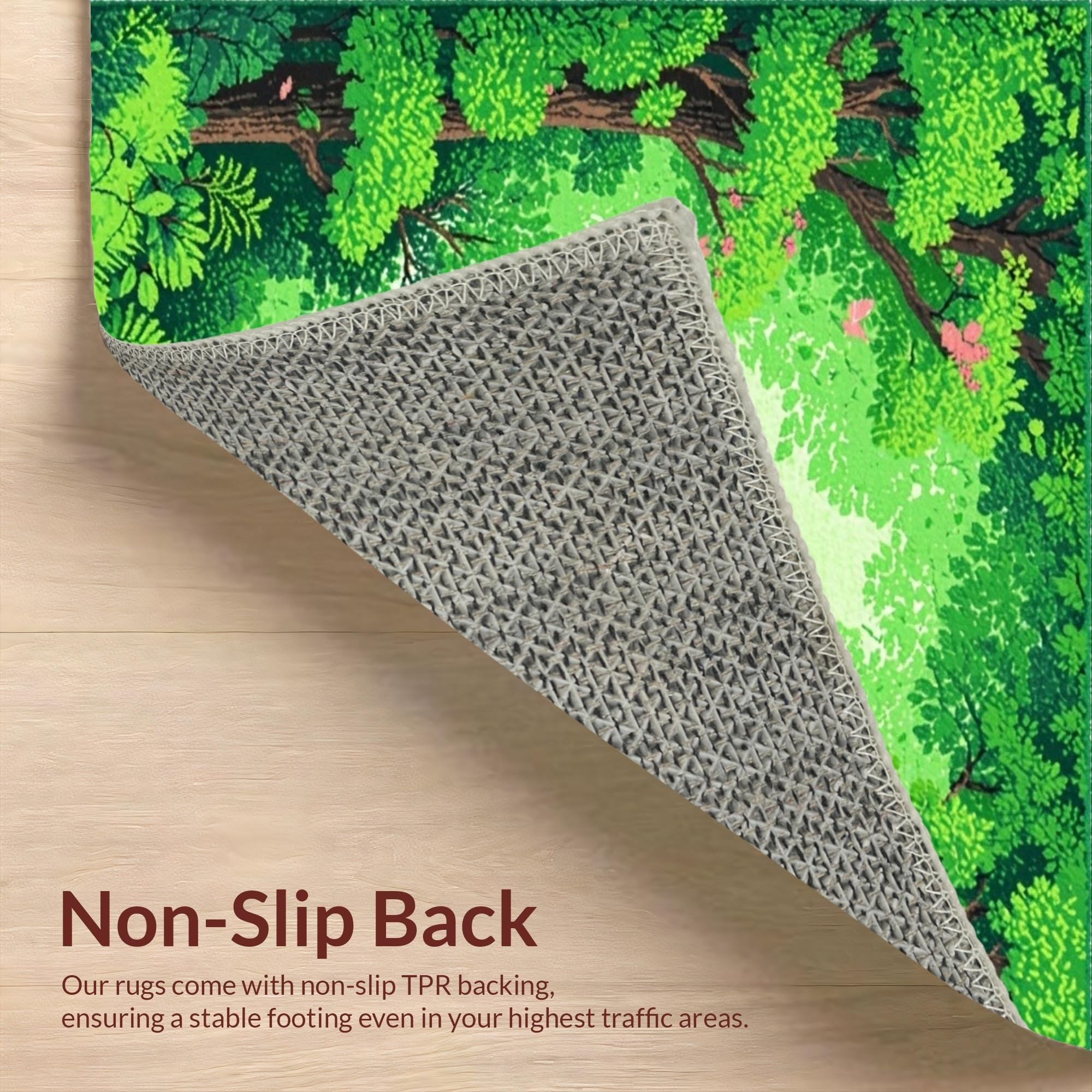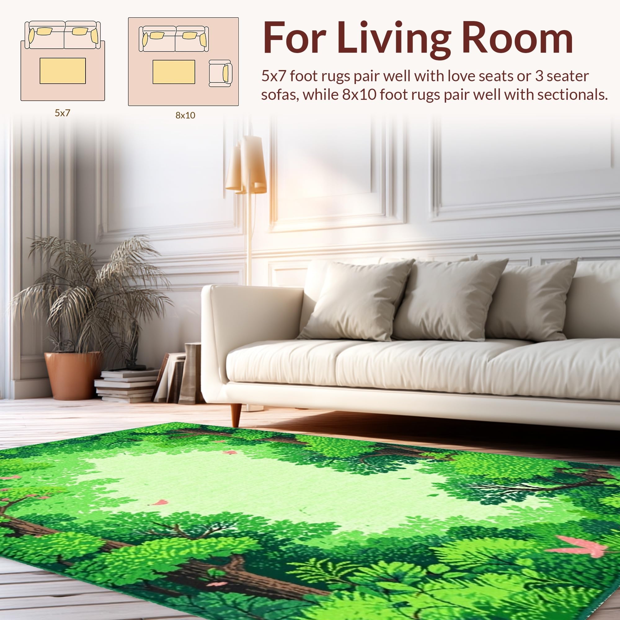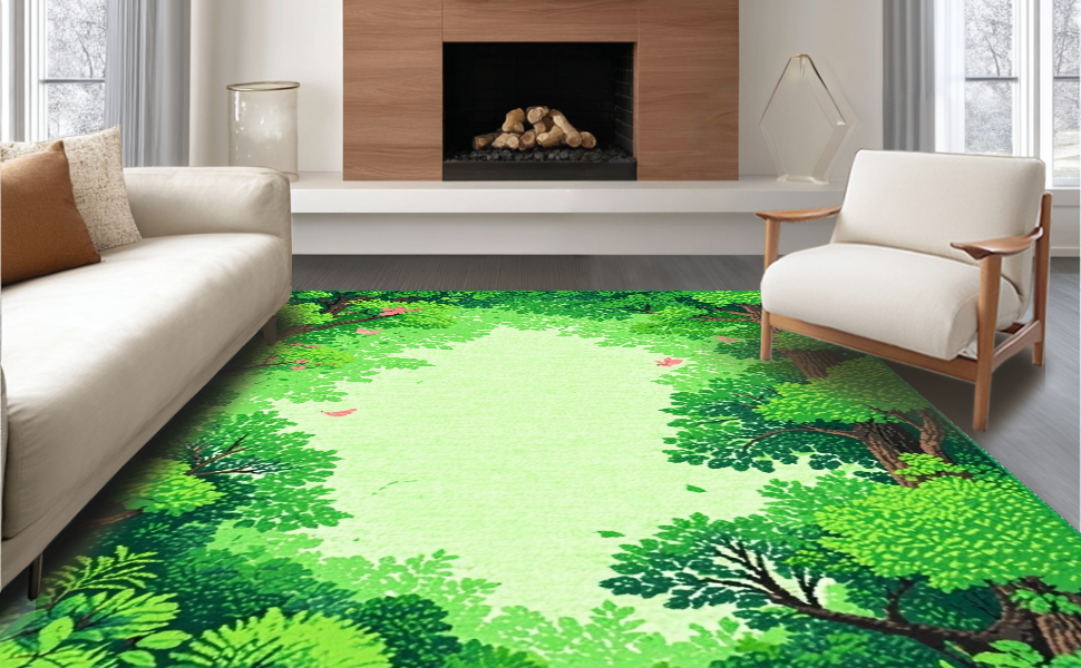 Ultra Soft Area Rug, Non Slip, Stain Resistant, Washable Area Rugs for Living Room, Bedroom, Whimsical Pastel Themed Landscape(Green) Overview: