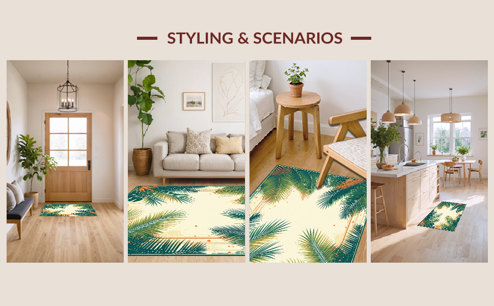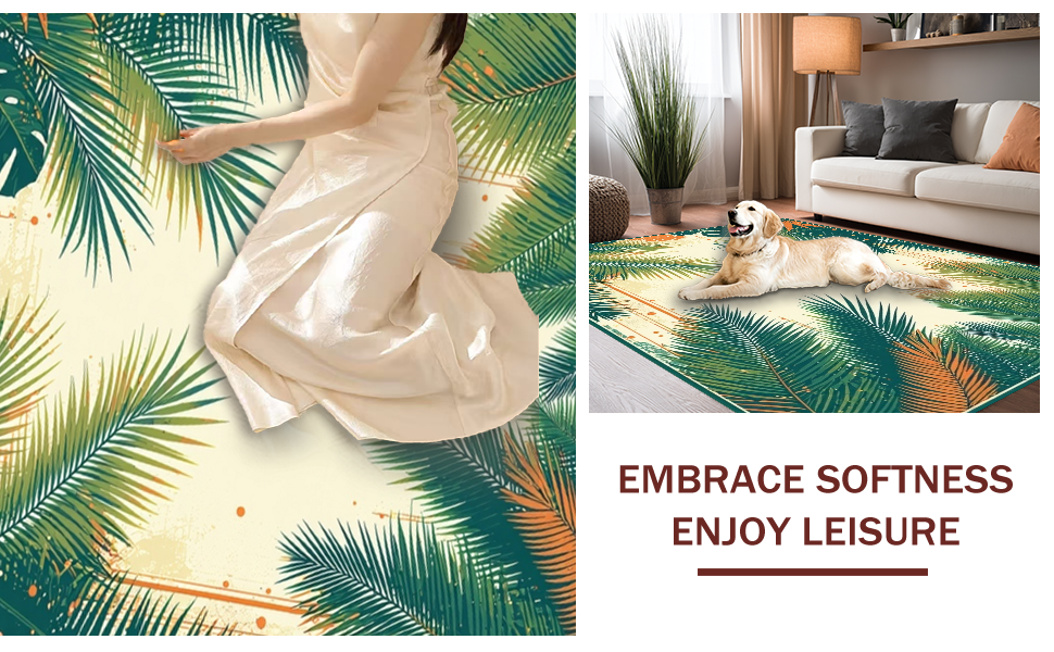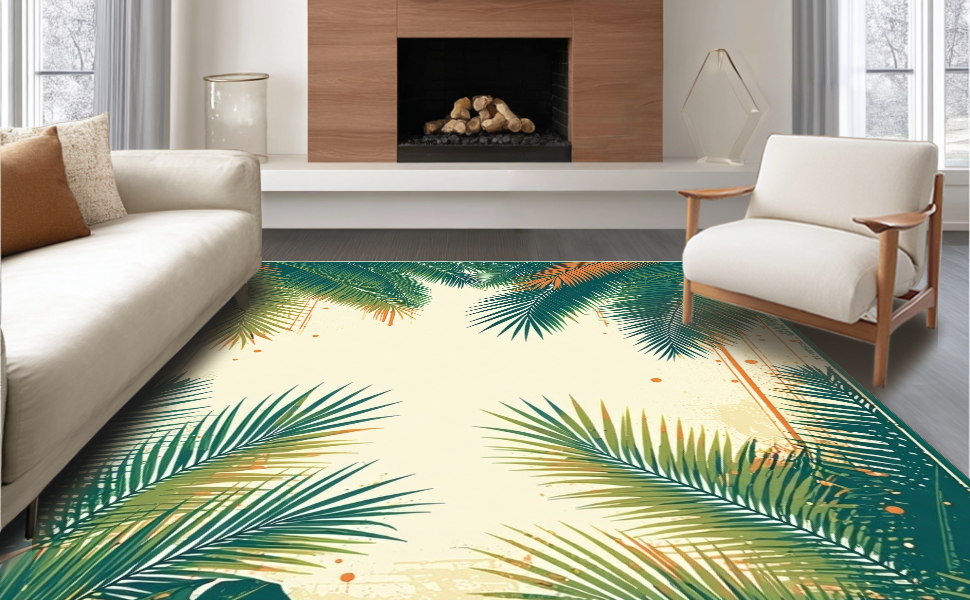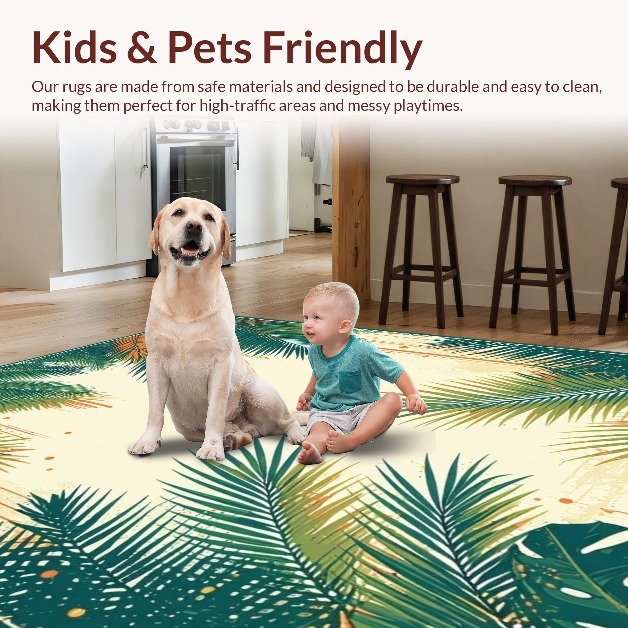 Ultra Soft Area Rug, Non Slip, Stain Resistant, Washable Area Rugs for Living Room, Bedroom, Whimsical Pink and Green Oasis(Green) Overview:
