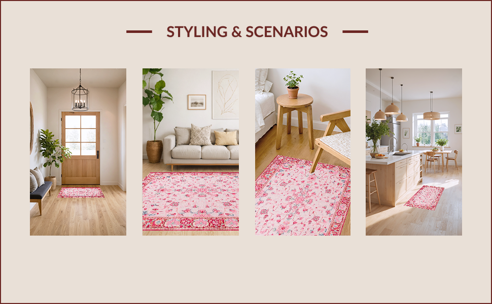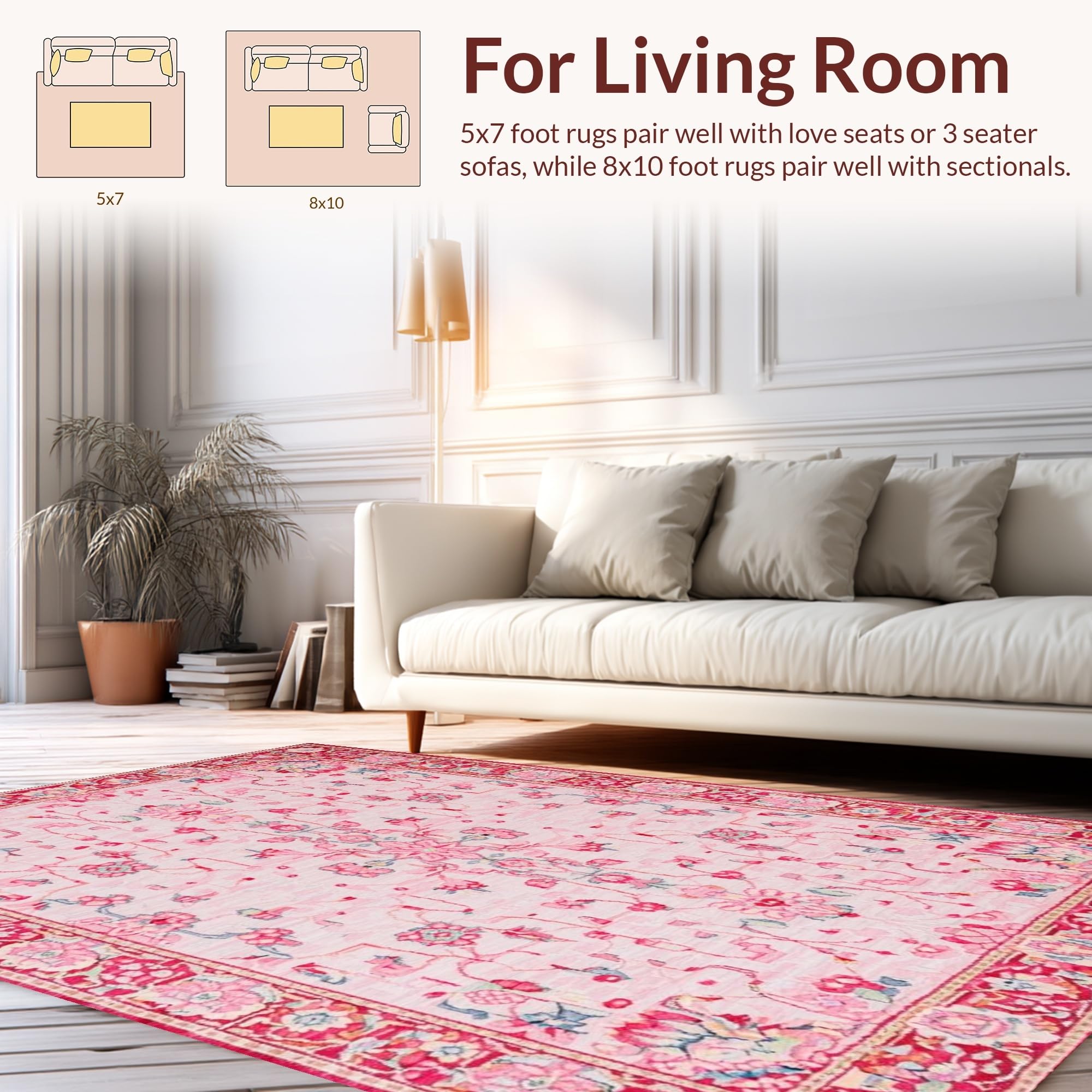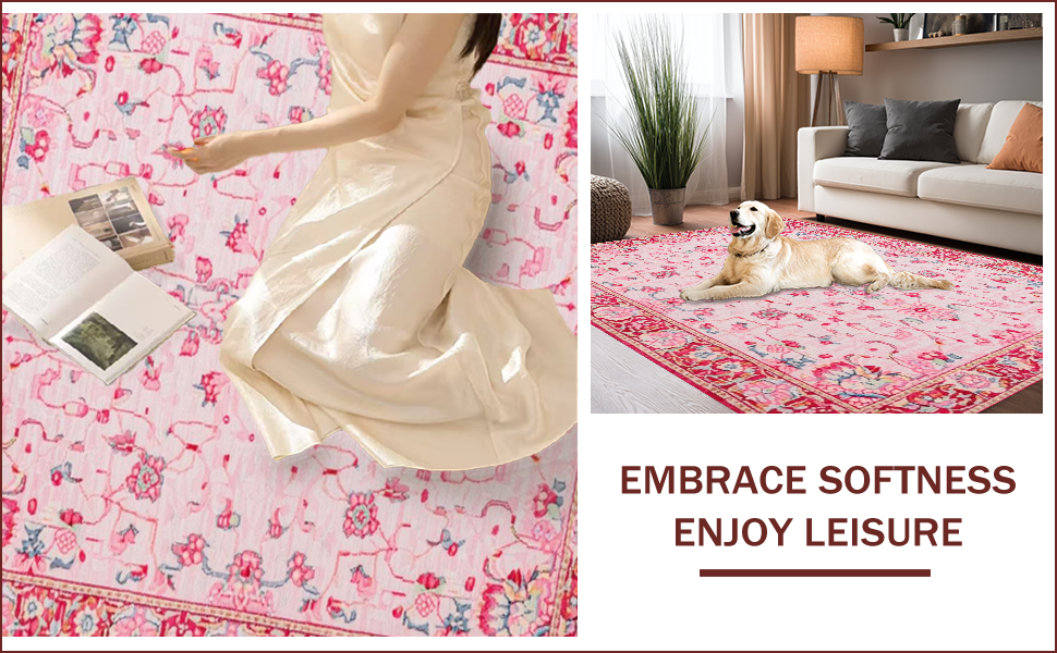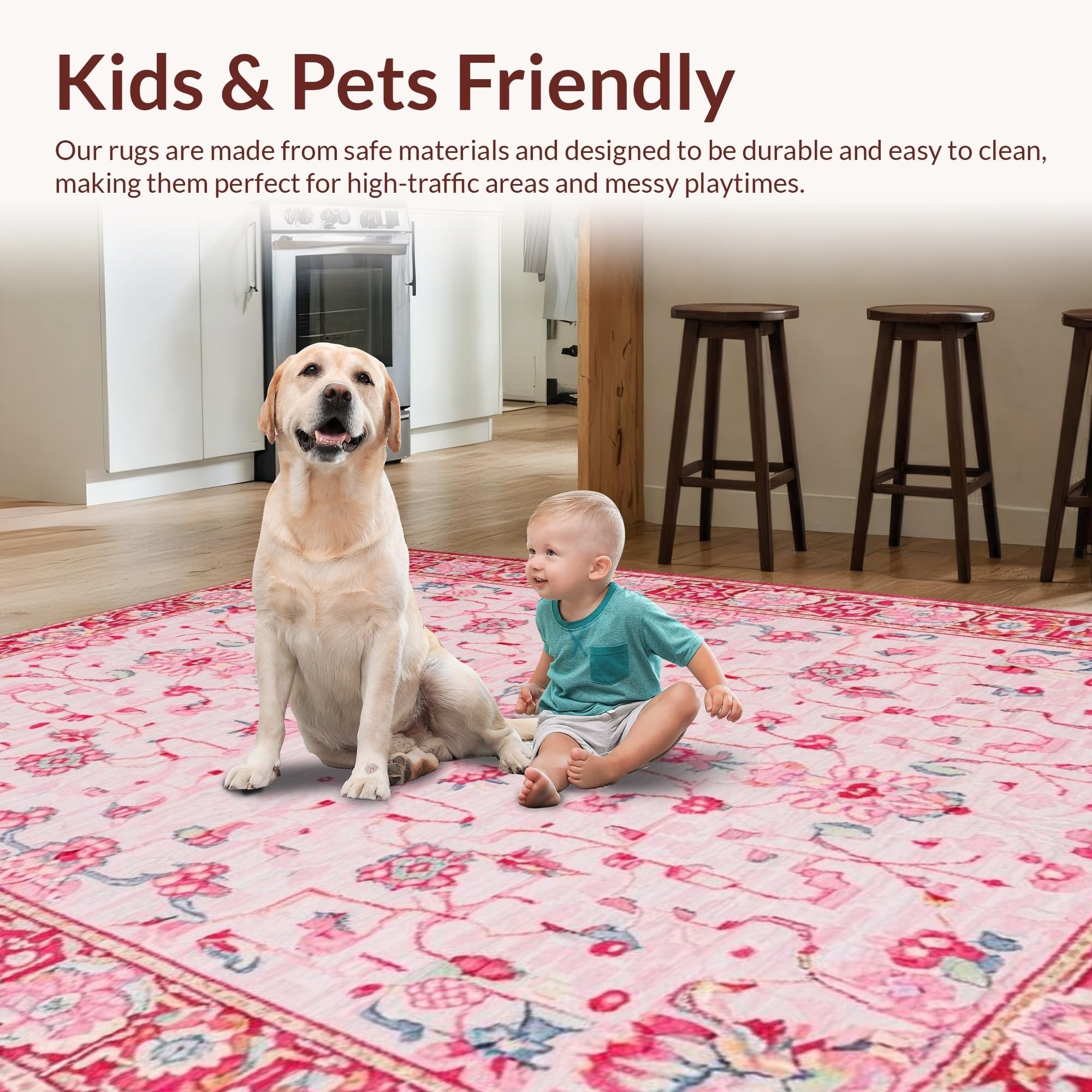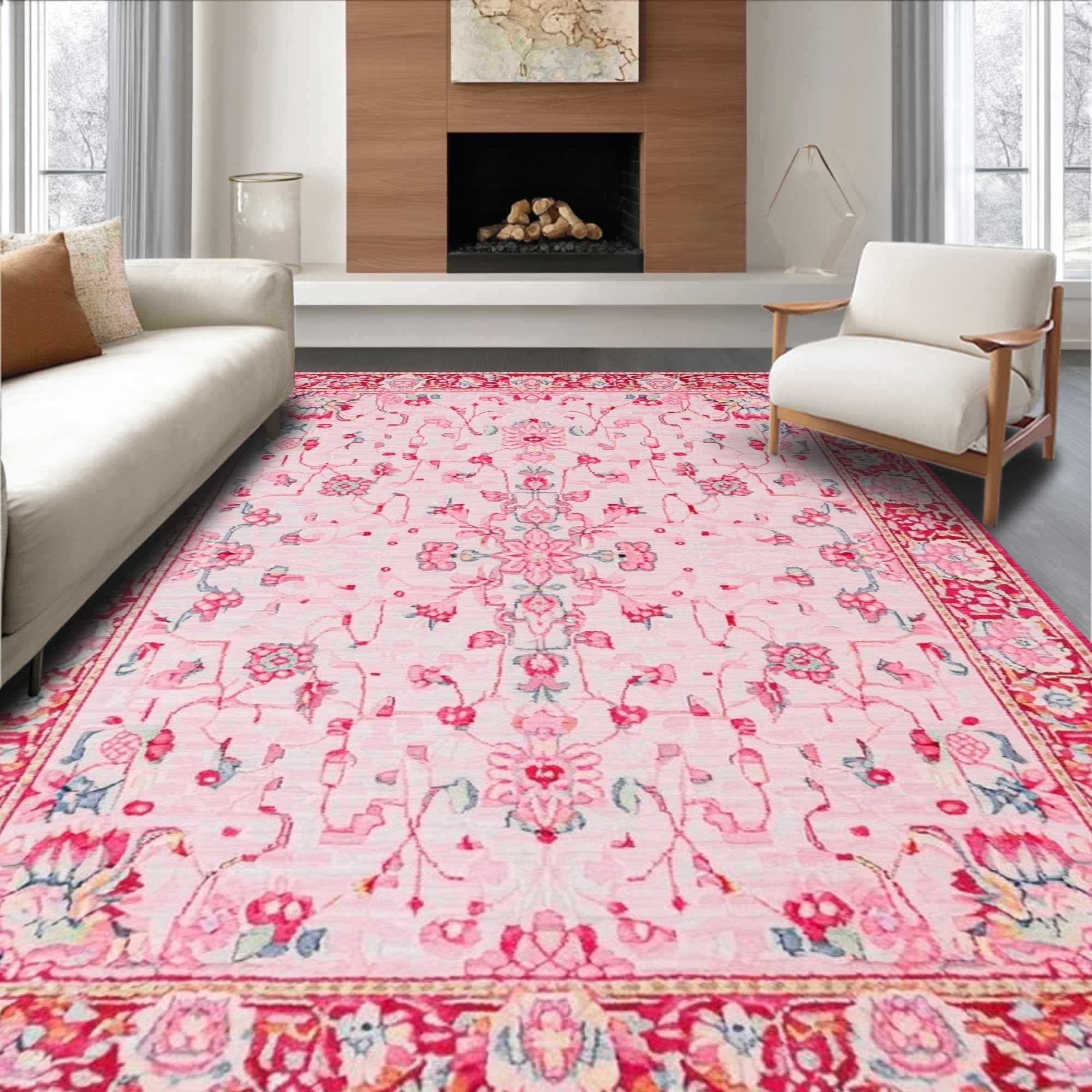 Ultra Soft Area Rug, Non Slip, Stain Resistant, Washable Area Rugs for Living Room, Bedroom, Whimsical Pink Bow Accent(Pink) Overview: