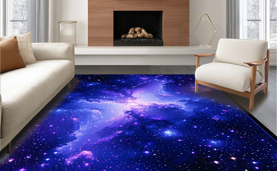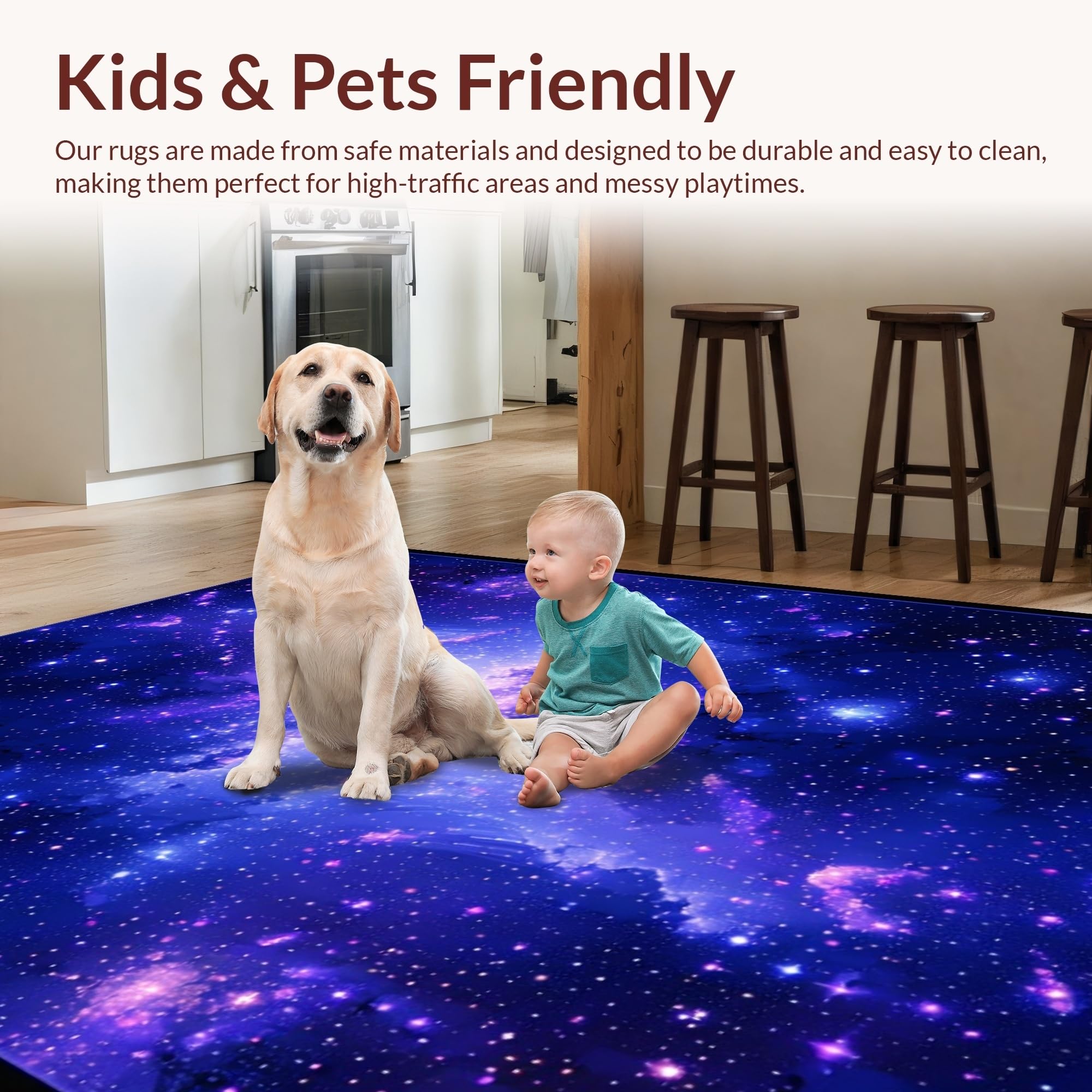 Ultra Soft Area Rug, Non Slip, Stain Resistant, Washable Area Rugs for Living Room, Bedroom, Whimsical Planetary Exploration Pattern(Blue) Overview: