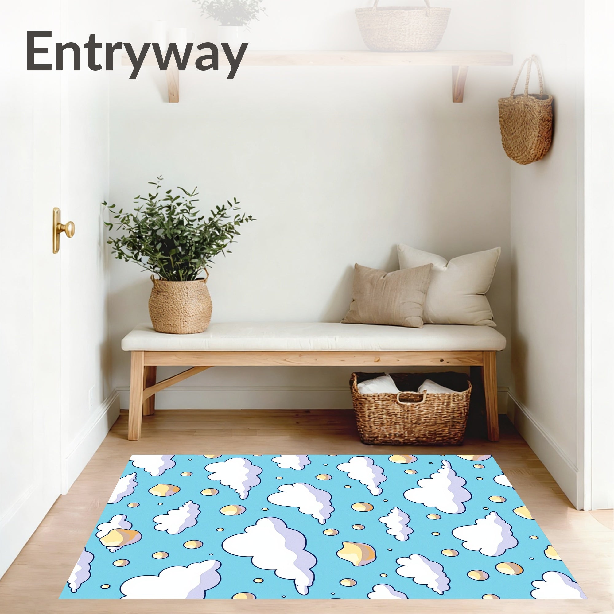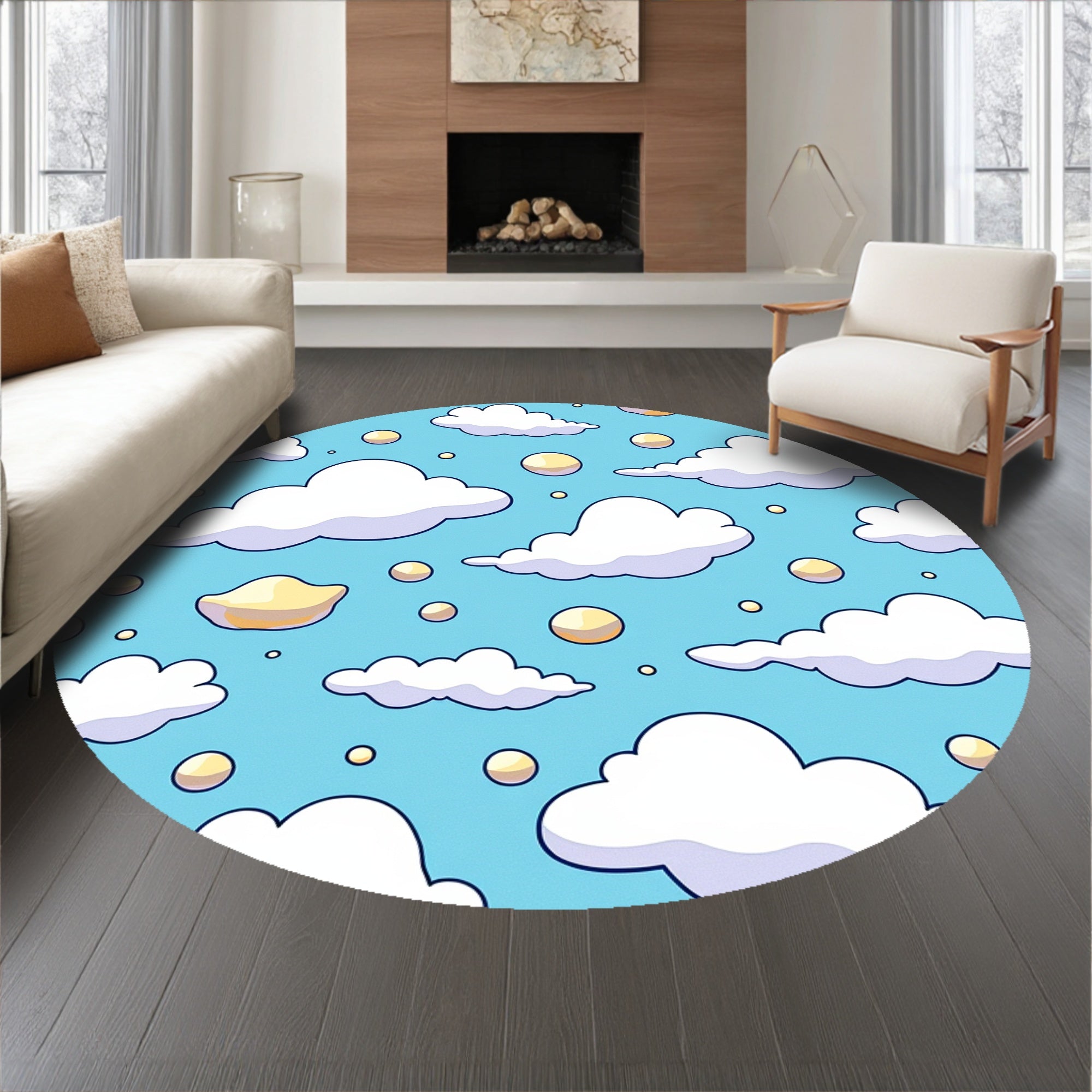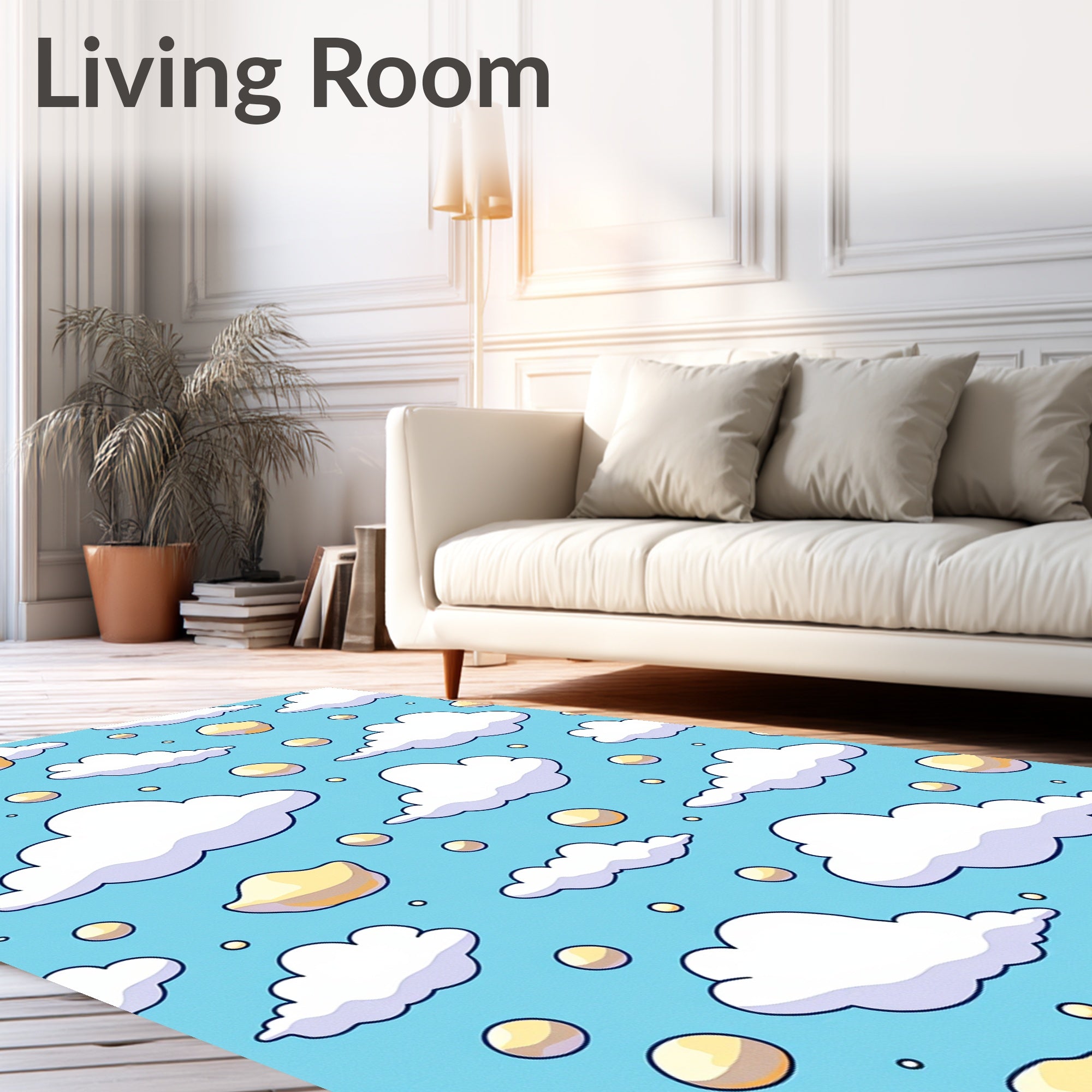 Ultra Soft Area Rug, Non Slip, Stain Resistant, Washable Area Rugs for Living Room, Bedroom, Whimsical Puff Throw with Cottony Sky Formation Graphics(Blue) Overview: