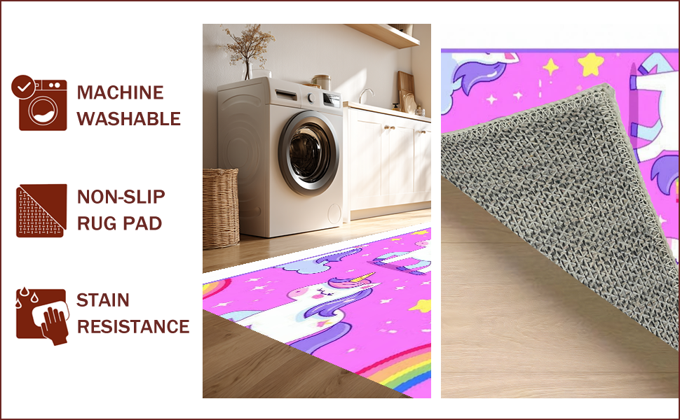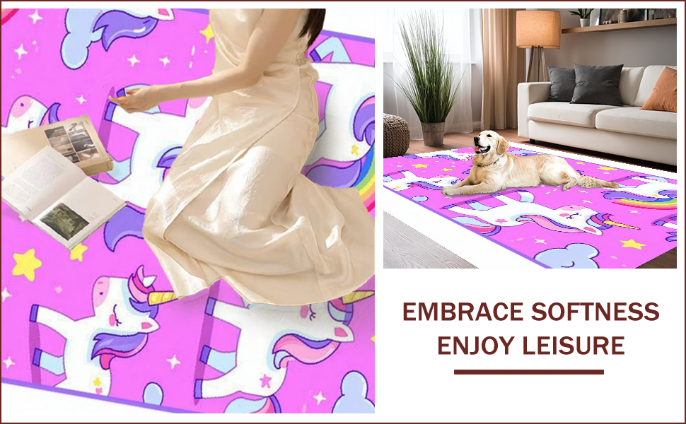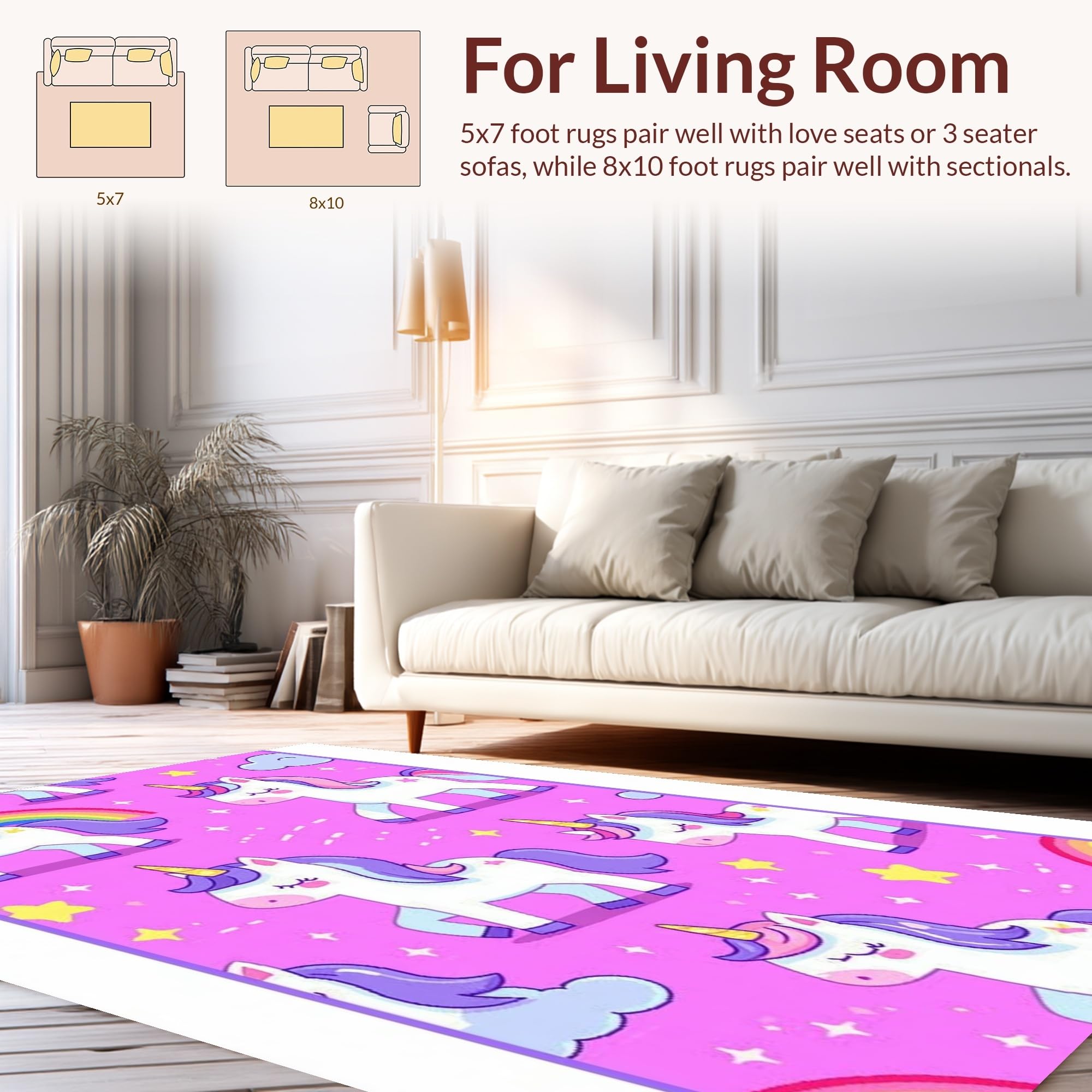 Ultra Soft Area Rug, Non Slip, Stain Resistant, Washable Area Rugs for Living Room, Bedroom, Whimsical Rainbow Soft Texture(Pink) Overview: