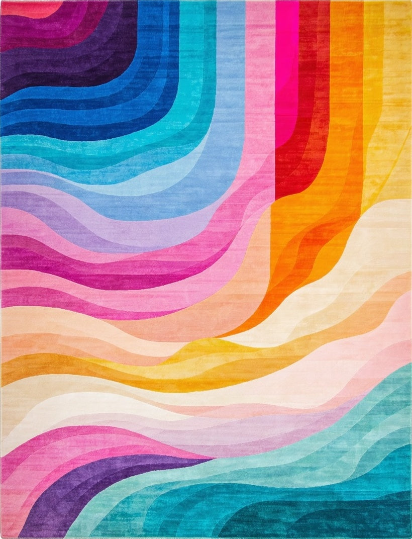 Whimsical Waves Colorful Undulating Design for Playrooms(Blue)