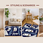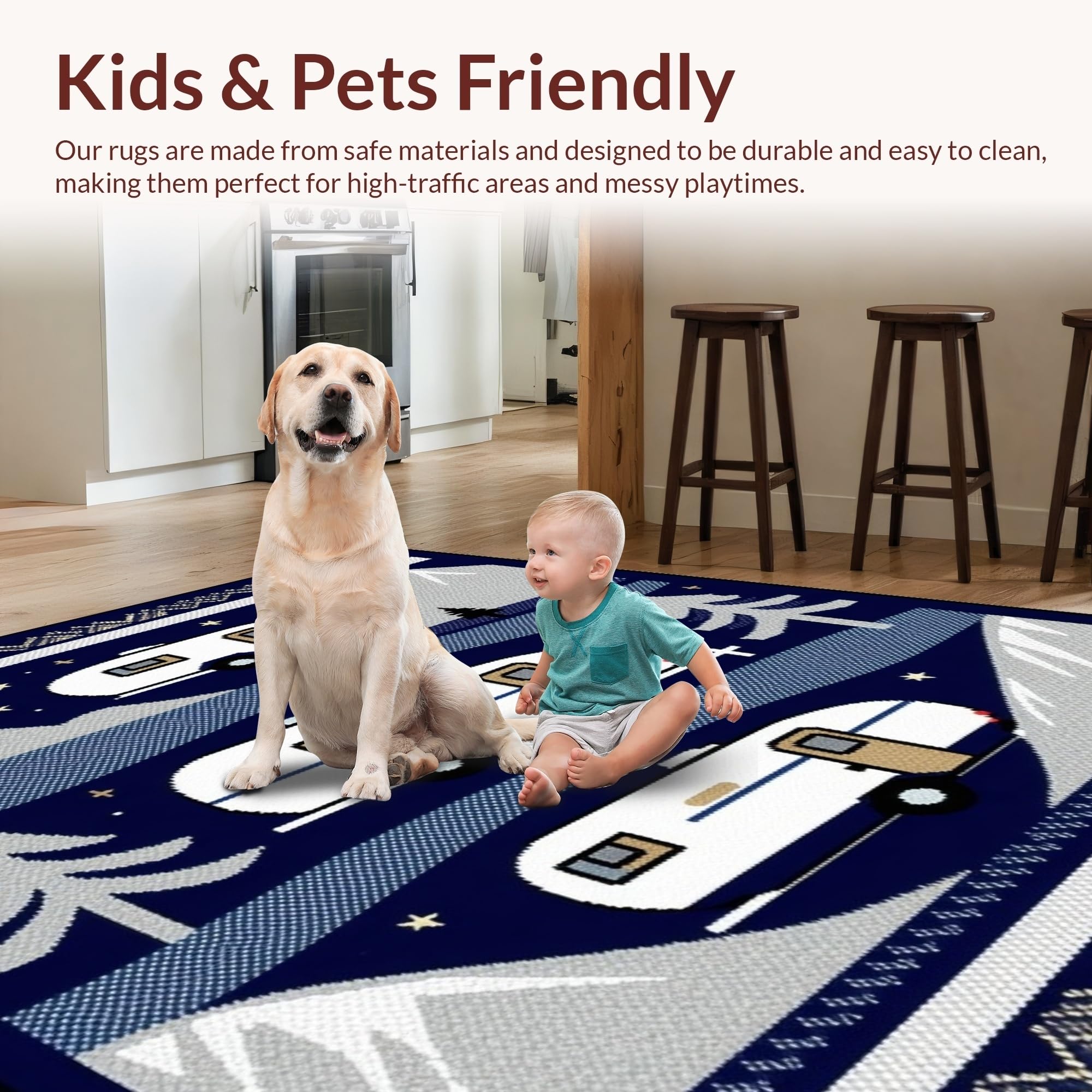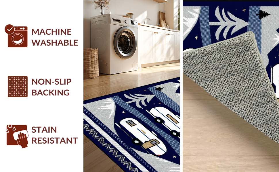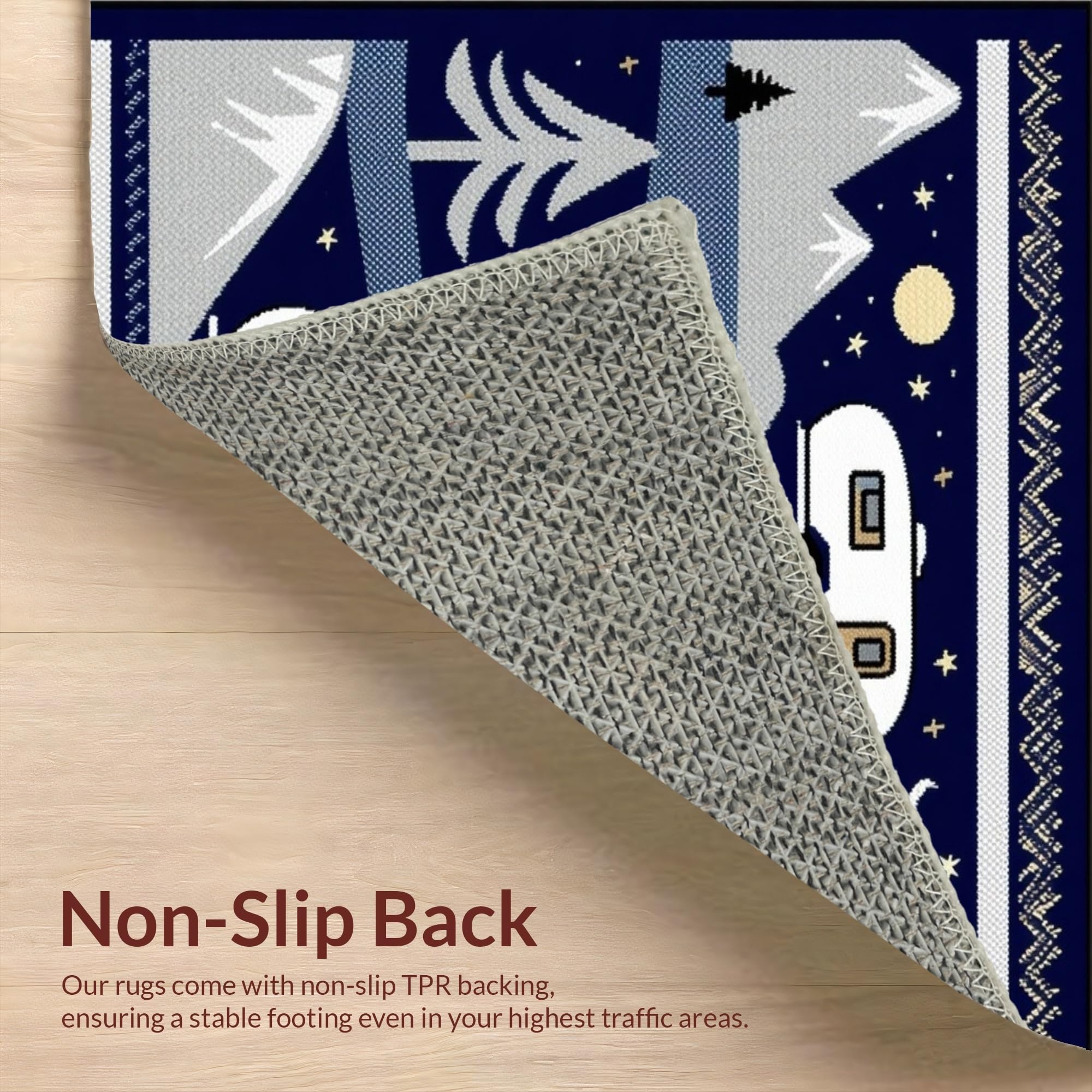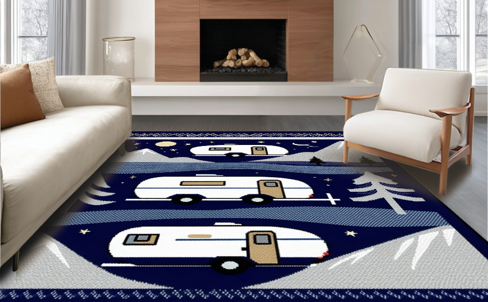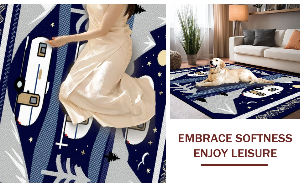 Ultra Soft Area Rug, Non Slip, Stain Resistant, Washable Area Rugs for Living Room, Bedroom, Whimsical Rustic Camping Aesthetic(Blue) Overview:
