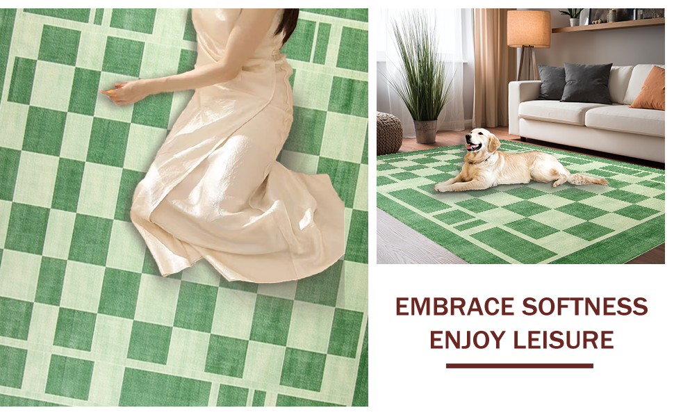Ultra Soft Area Rug, Non Slip, Stain Resistant, Washable Area Rugs for Living Room, Bedroom, Whimsical Sage Green Cozy Texture(Green) Overview: