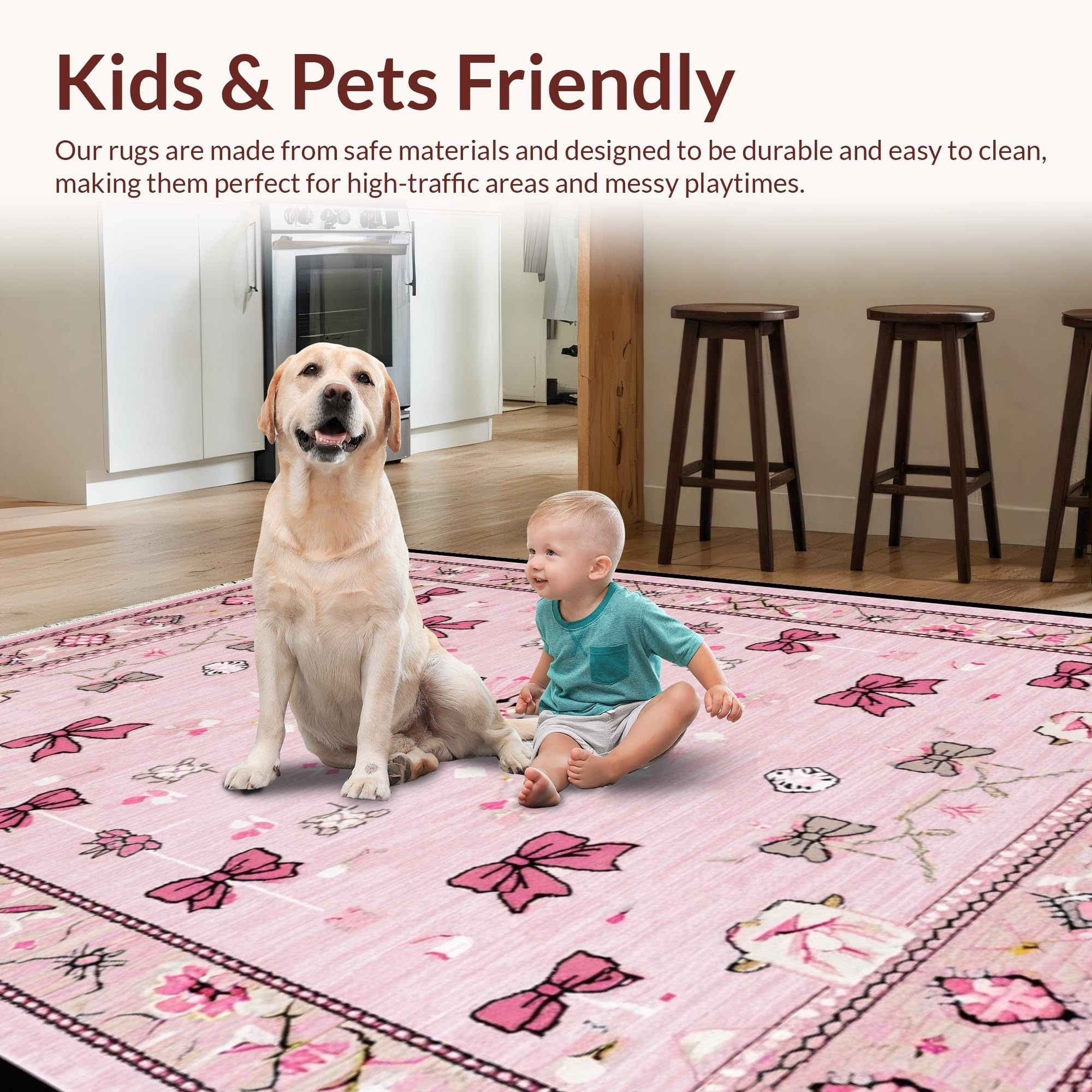 Ultra Soft Area Rug, Non Slip, Stain Resistant, Washable Area Rugs for Living Room, Bedroom, Whimsical Soft Color Palette(Pink) Overview: