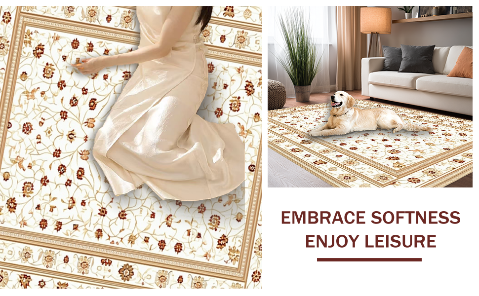 Ultra Soft Area Rug, Non Slip, Stain Resistant, Washable Area Rugs for Living Room, Bedroom, Whimsical Soft Pastel Design(Beige) Overview: