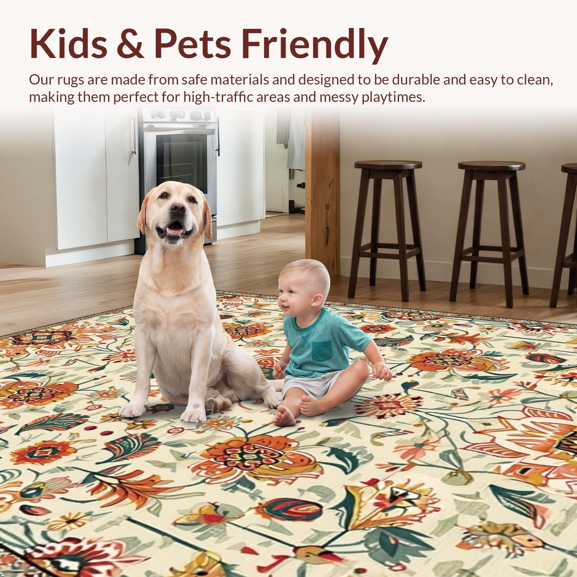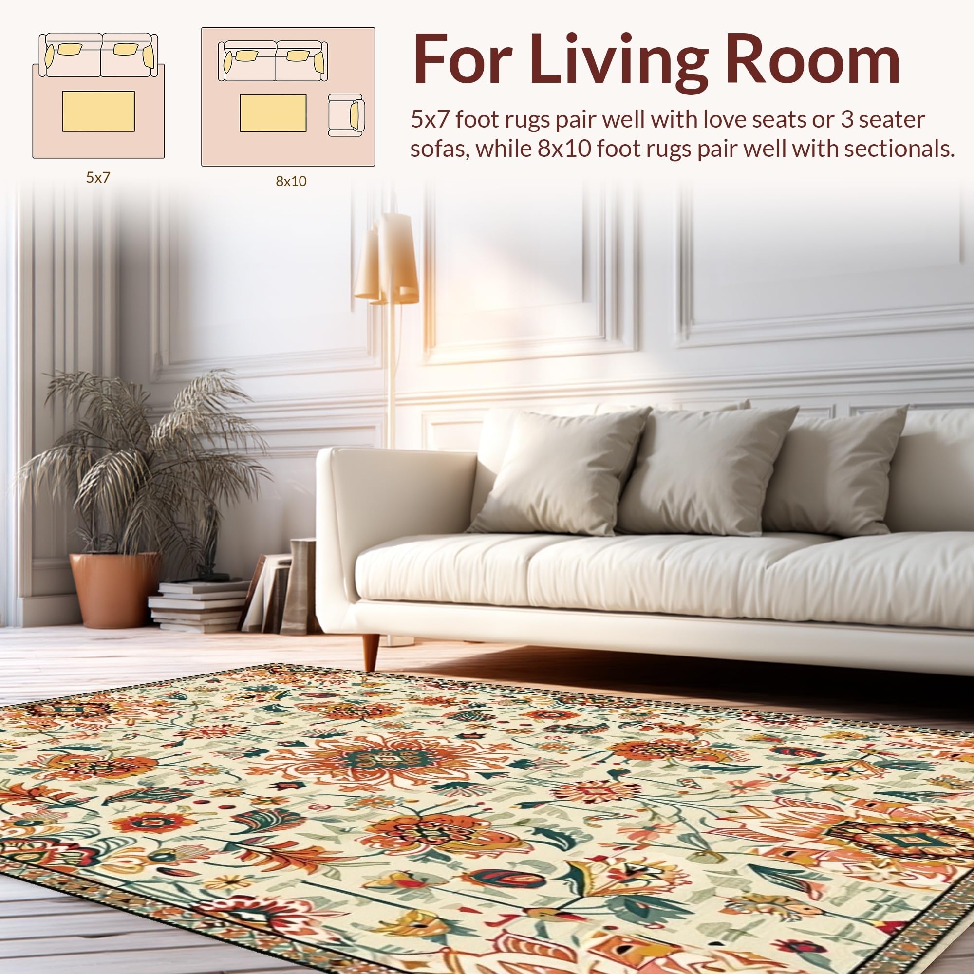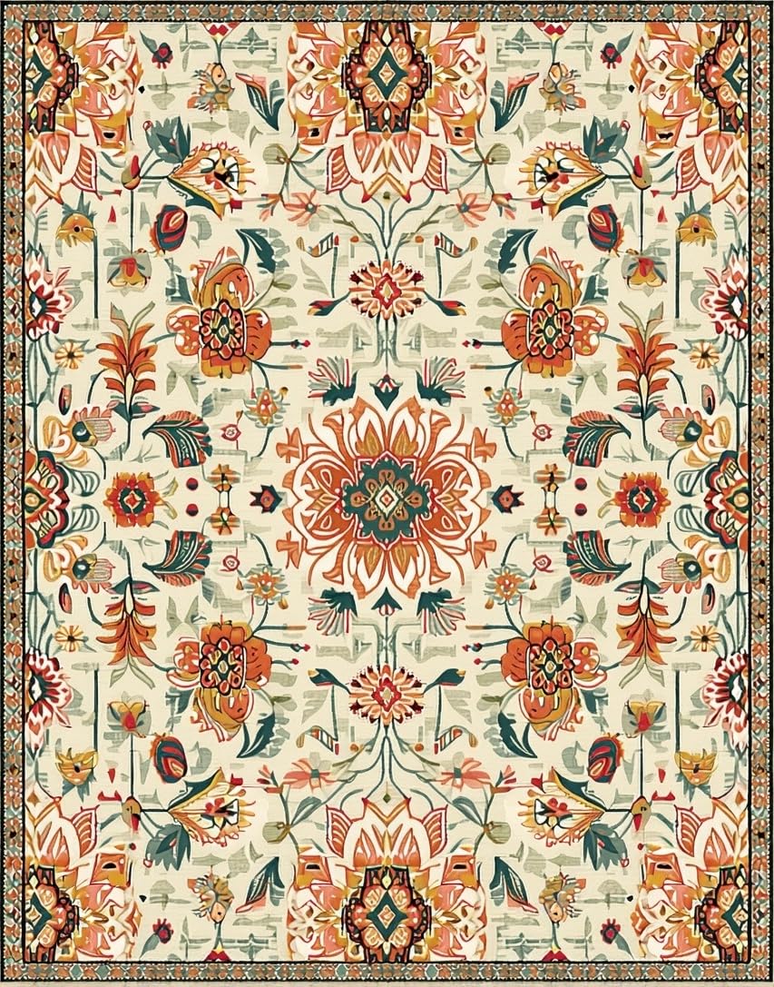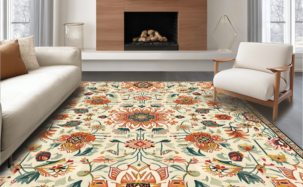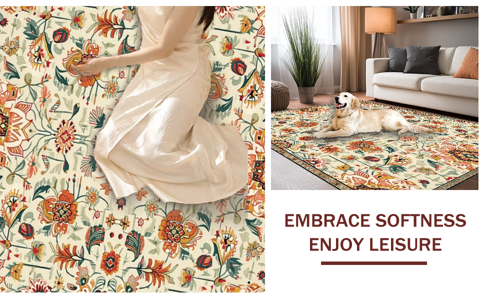 Ultra Soft Area Rug, Non Slip, Stain Resistant, Washable Area Rugs for Living Room, Bedroom, Whimsical Soft Toned Accents(Beige) Overview: