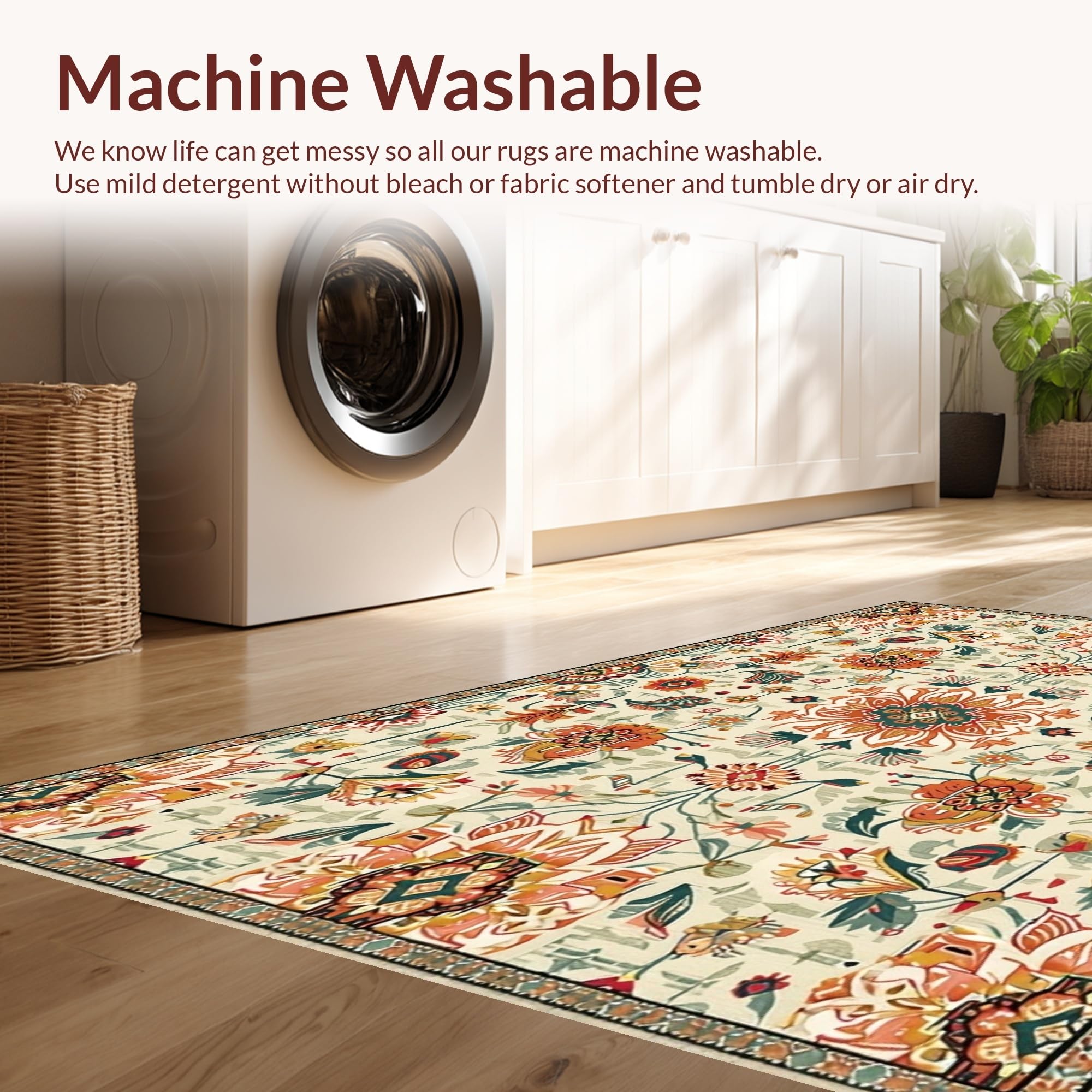 - Machine Washable: Our rugs can be easily thrown in the wash machine.