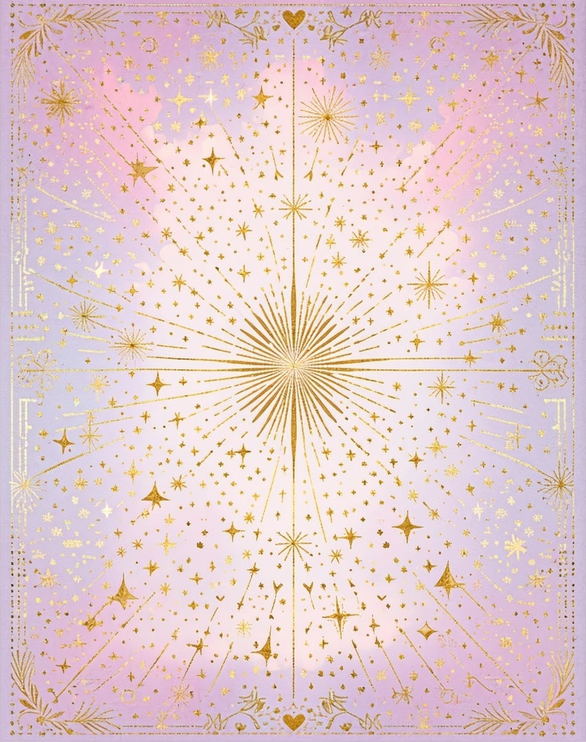 Whimsical Starburst and Motif Design with Radiant Pastel Accents(Pink)